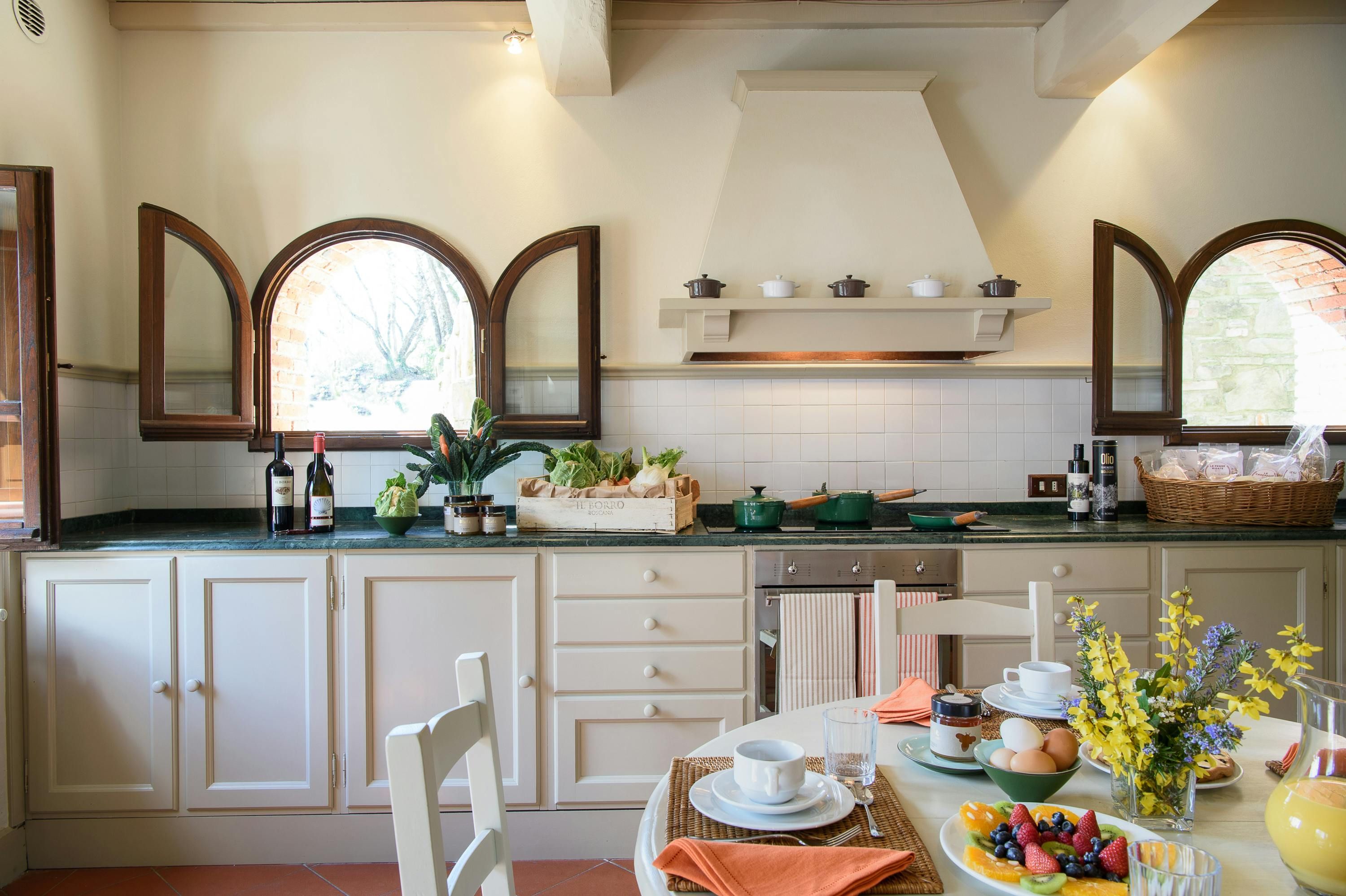 Tucked away in the heart of the Tuscan countryside, this rustic villa is a peaceful escape for families or groups. With several living rooms and dining areas, there’s plenty of space to come together for long Italian dinners – or slip away with a book when you need some quiet. Step outside and unwind to the sound of the nearby river in the garden and terrace. In this medieval village of Borro, you'll find cosy trattorias serving authentic local dishes, along with horse riding and cycling routes to explore. And when you’re ready to roam further, Tuscany’s rolling vineyards and historic cities are just a short drive away.