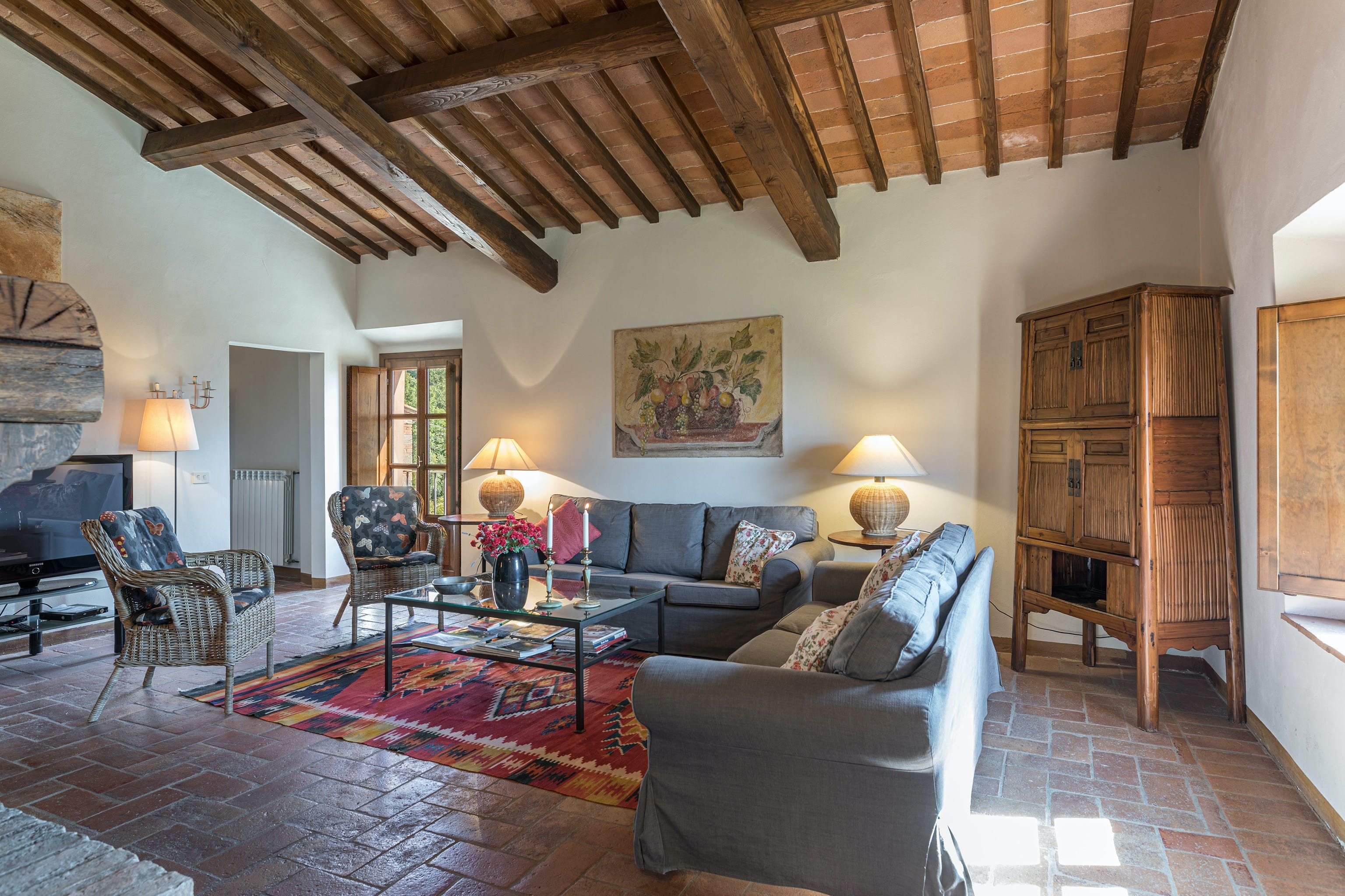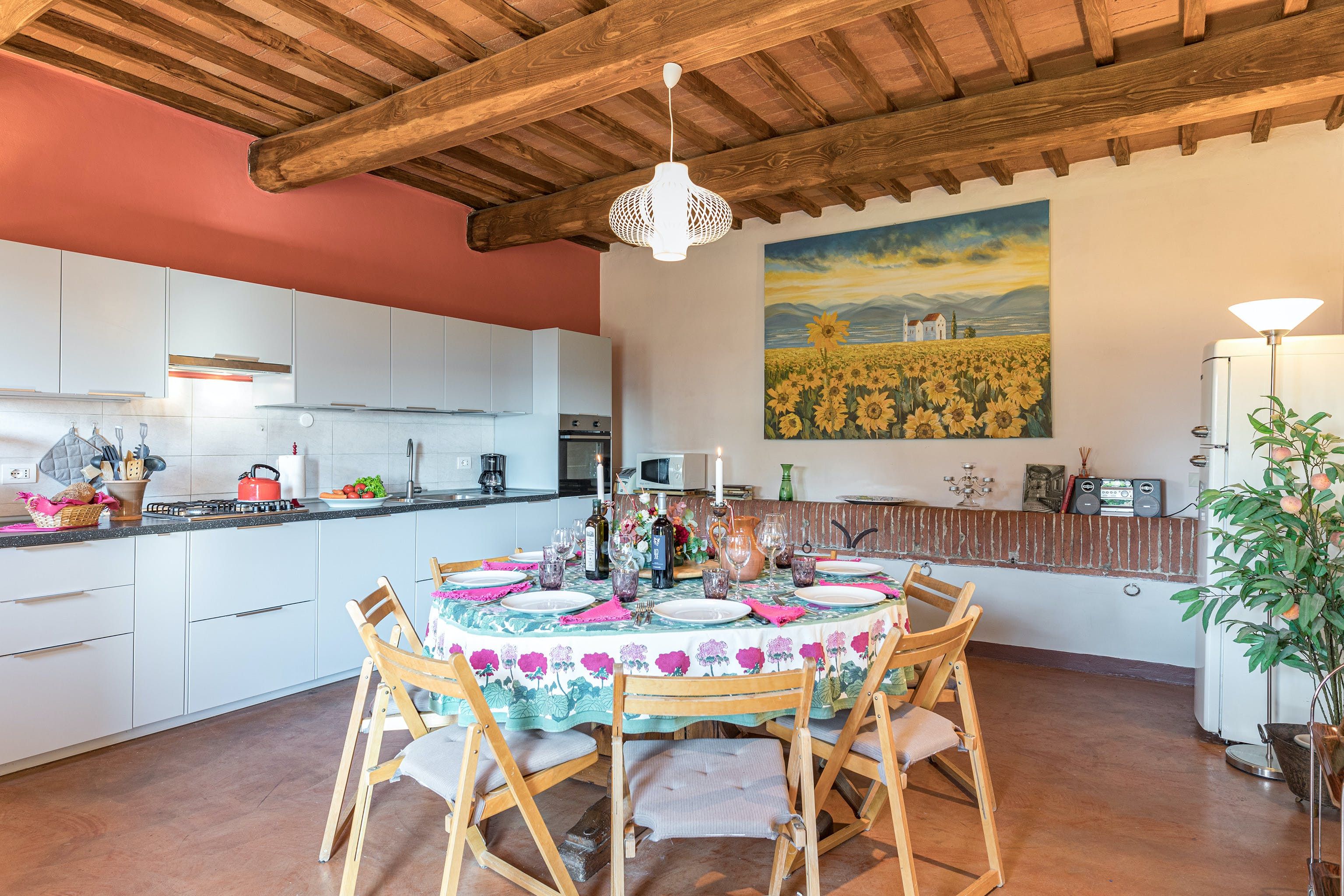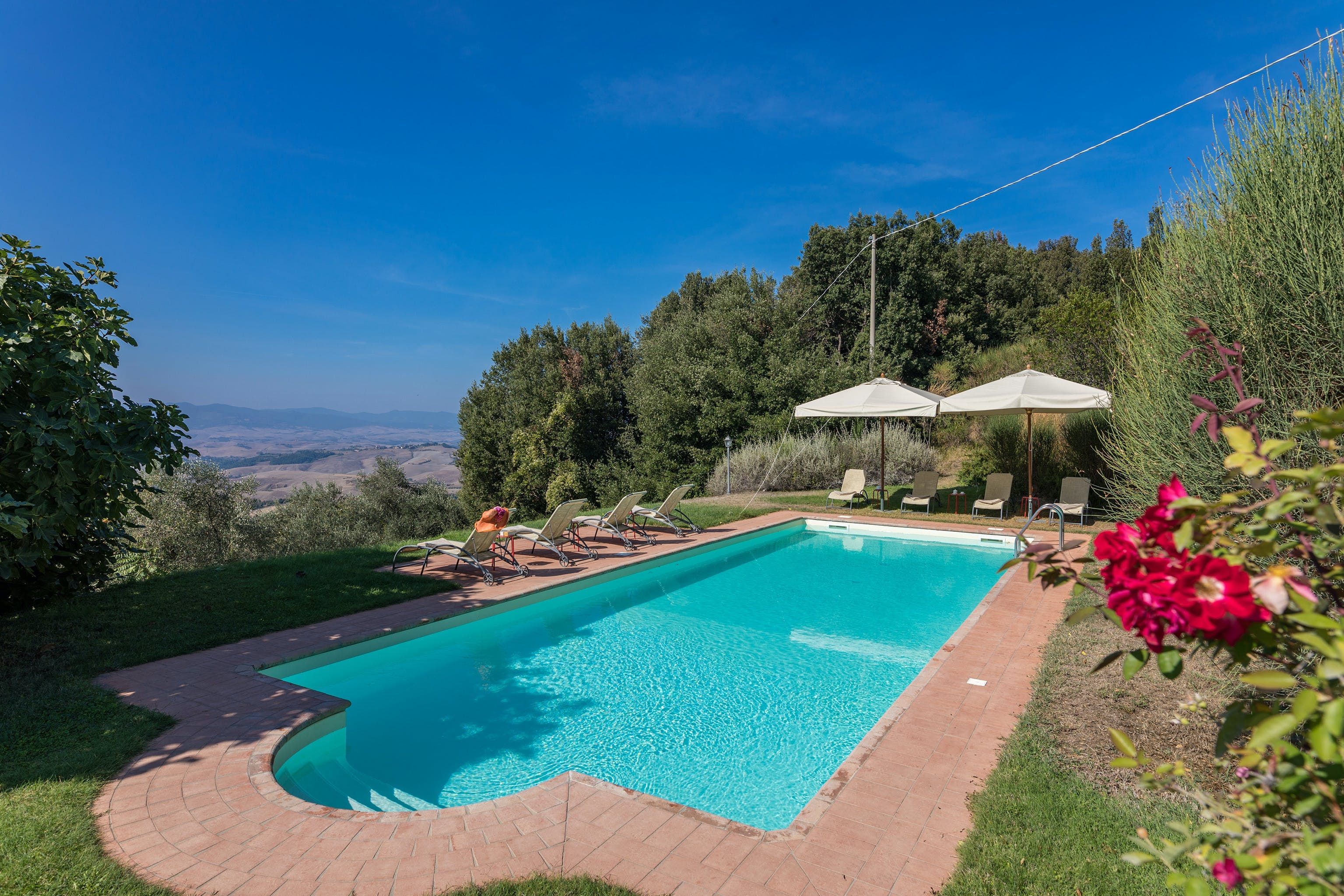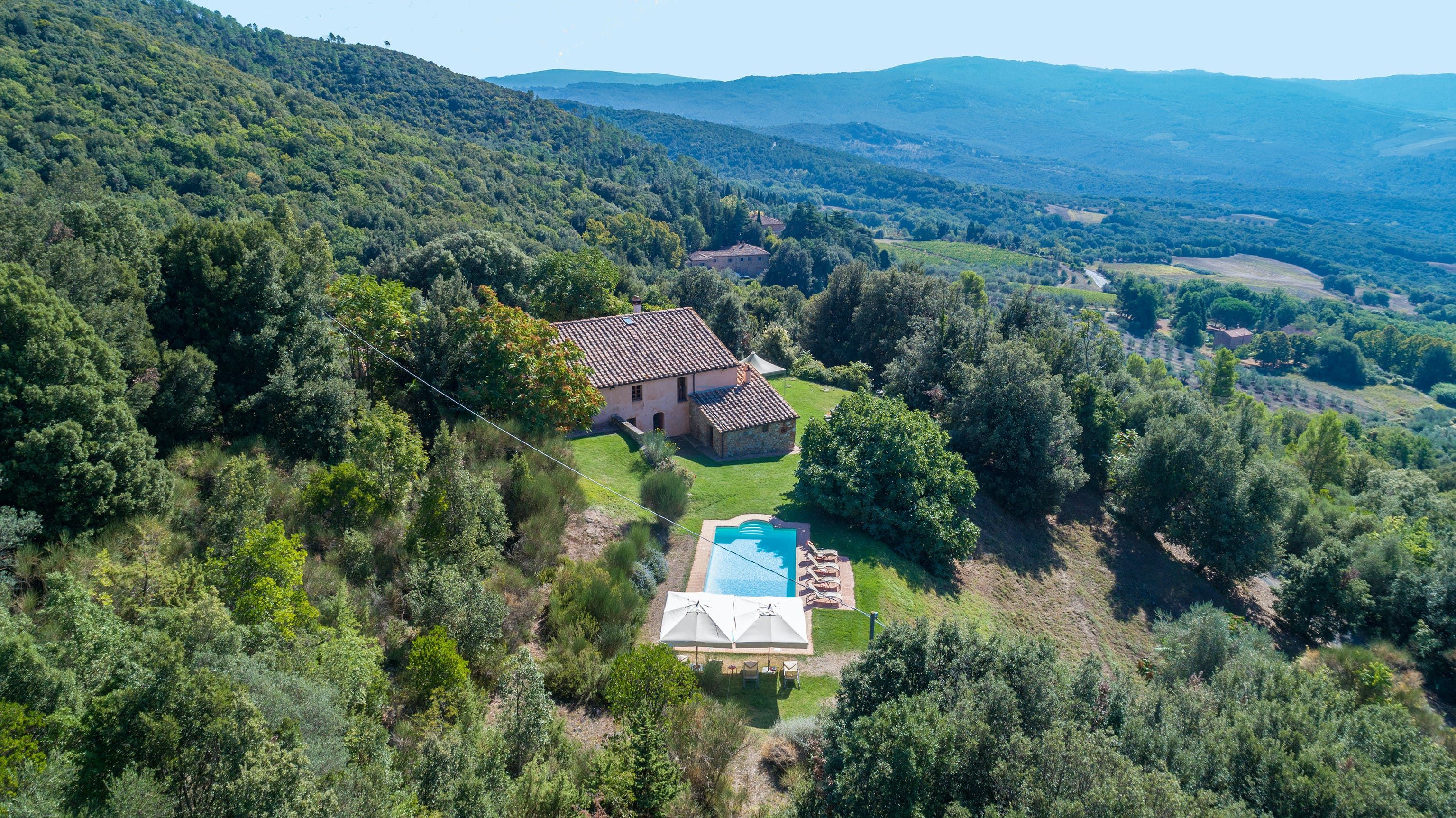 Nestled within an 800-hectare estate of woodlands and fields, this villa caught our eye for its incredible views over the Tuscan countryside. With a barbecue, pizza oven and shaded outdoor table, alfresco dining is easy here. And while the traditional decor inside may not appeal to everyone, the home certainly has lots of character. To make your holiday even more memorable, your host can help arrange a variety of experiences, including wine tastings to sample the local produce. And when you’re ready to explore, the historic town of San Gimignano is just fifteen kilometres away.