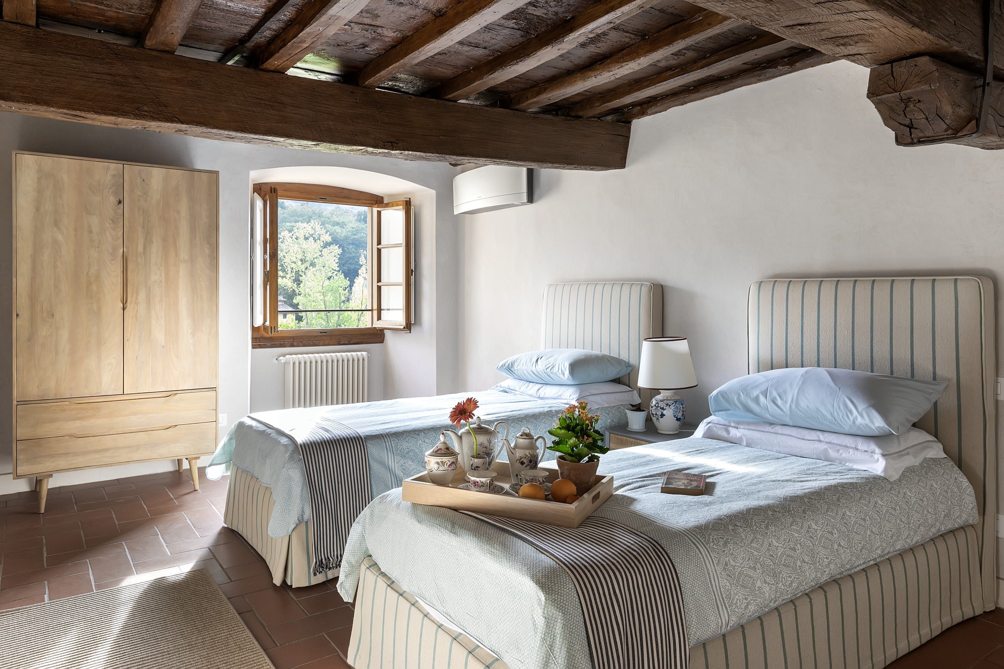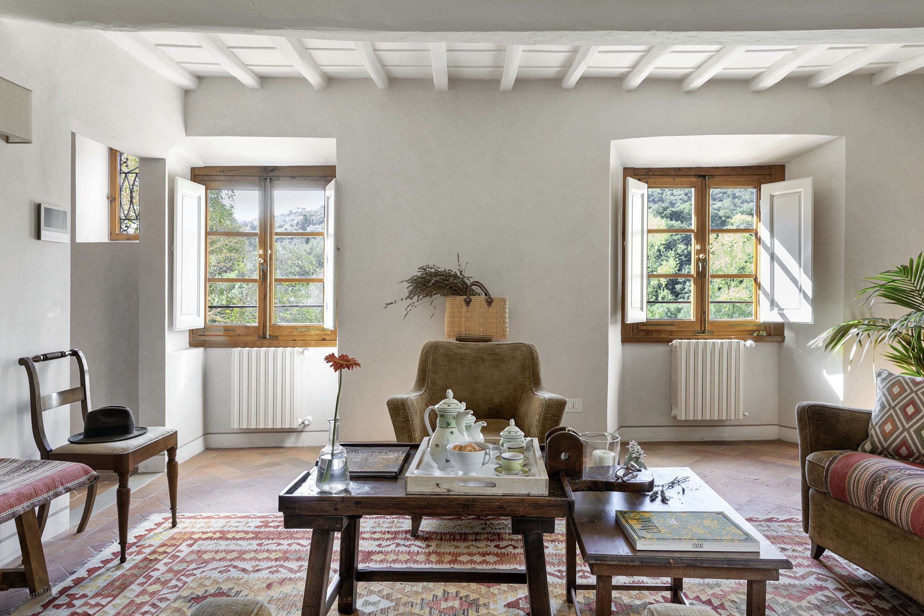 Step inside your apartments, and uncover an enchanting mixture of traditional Tuscan and contemporary touches that blend seamlessly together. Terracotta floors, exposed wood beam ceilings and stunning frescoes sit alongside modern additions, including a stylish farmhouse-style kitchen and monolithic fireplace.