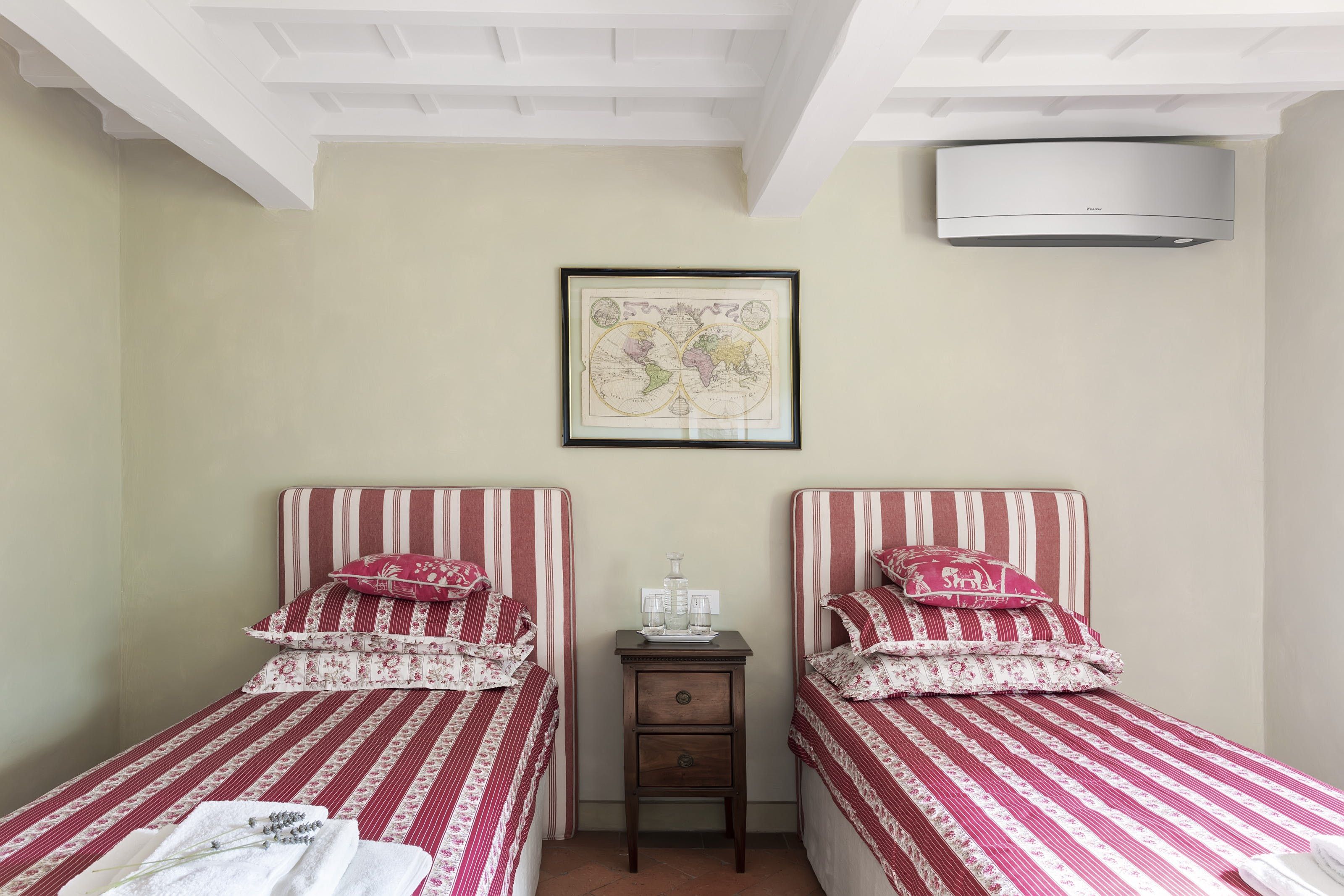 Discover a lush landscape of immaculate terraced gardens, a vine-covered pergola, a tempting pool and breathtaking views over the surrounding countryside. When your hosts are in town (in the mostly vacant third unit), they've made a ritual of visiting Forno La Chiocciola, where they stock up on fresh schiaccata, a Florentine speciality, and we'd suggest you do the same. Spend your days laid out by the pool, interrupted your sunbathing sessions only for refreshing dips and trips to the kitchen to rip off a chunk of that delicious bread.