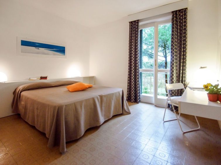 "Golfo della Lacona", 2-room apartment 40 m2, on the upper ground floor. Practical furnishings: living/sleeping room with 1 double sofabed, dining table and TV. Exit to the garden. 1 double bedroom. Exit to the balcony. Small kitchenette (2 induction hot plates). 2 baths or showers/WC.