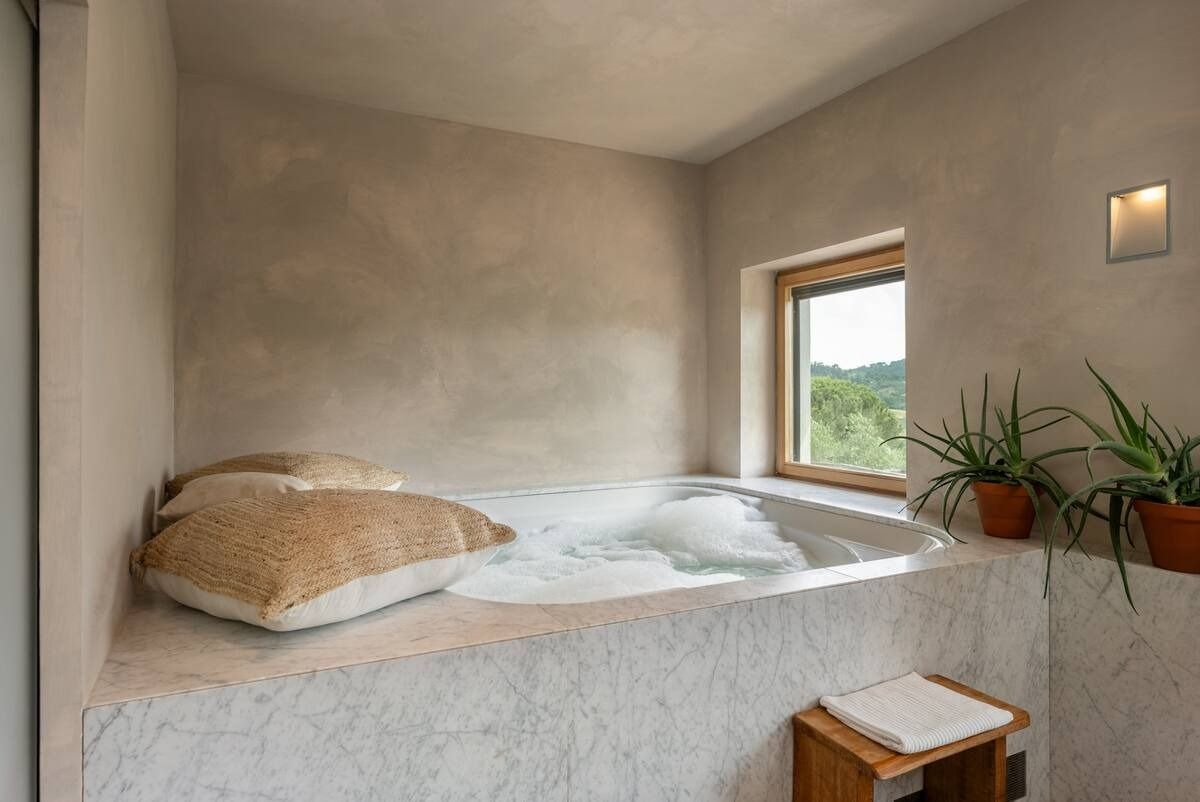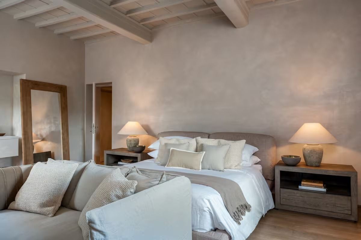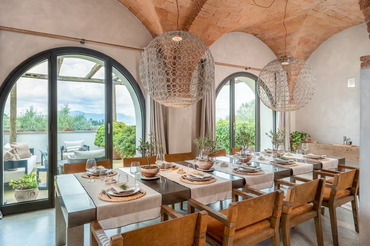 This home’s sensational location combines the best of boat worlds – tucked away in the Tuscan countryside while still being just thirty minutes away from Florence. It’s a place to slow down – wake to soft hilltop views, linger over long lunches under the olive trees, and unwind in the heated cave bath or by the firepit at sunset. Inside, curated design mixes with traditional Tuscan architecture, while outside days can be spent swimming, practicing yoga or exploring the charming rural surroundings.