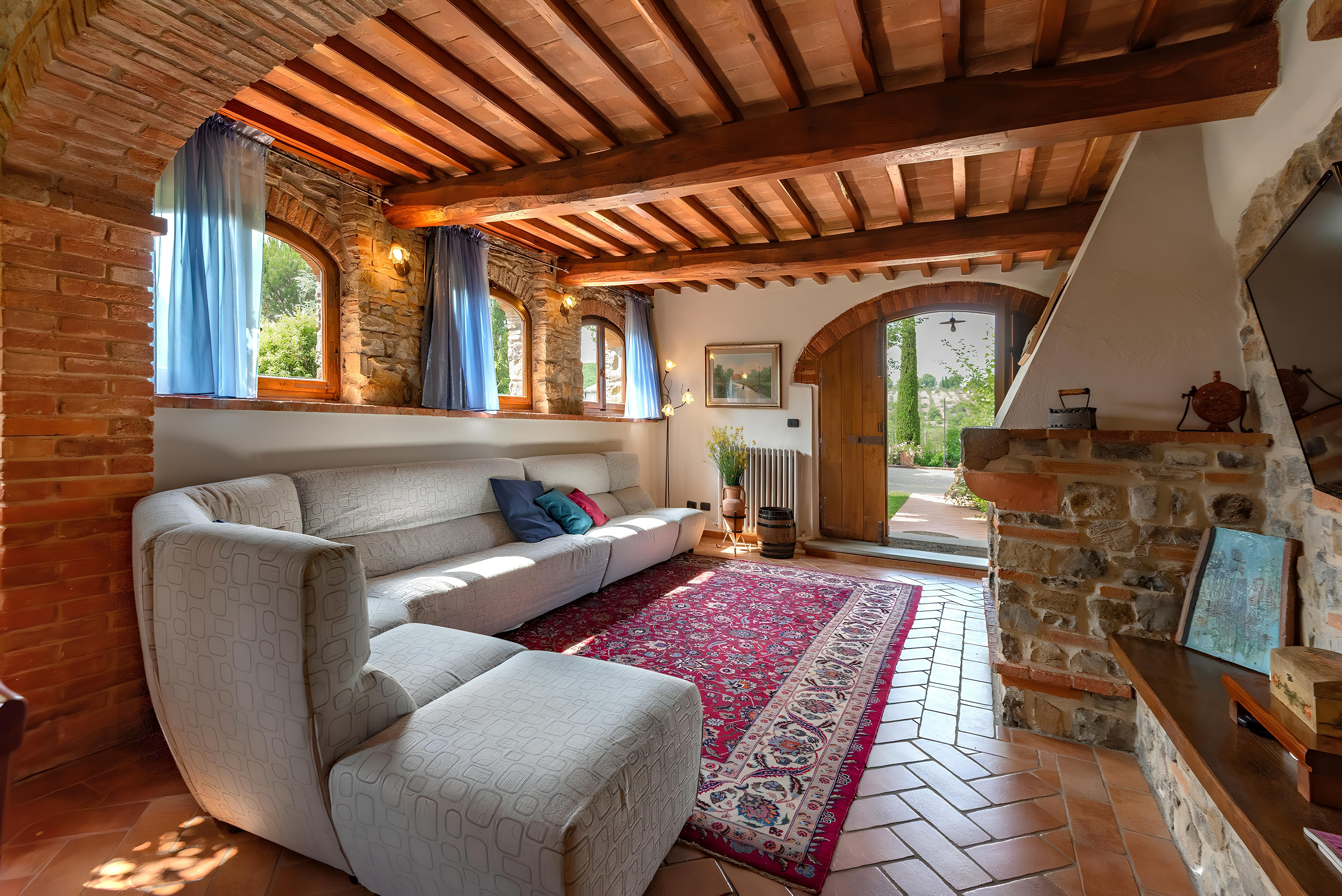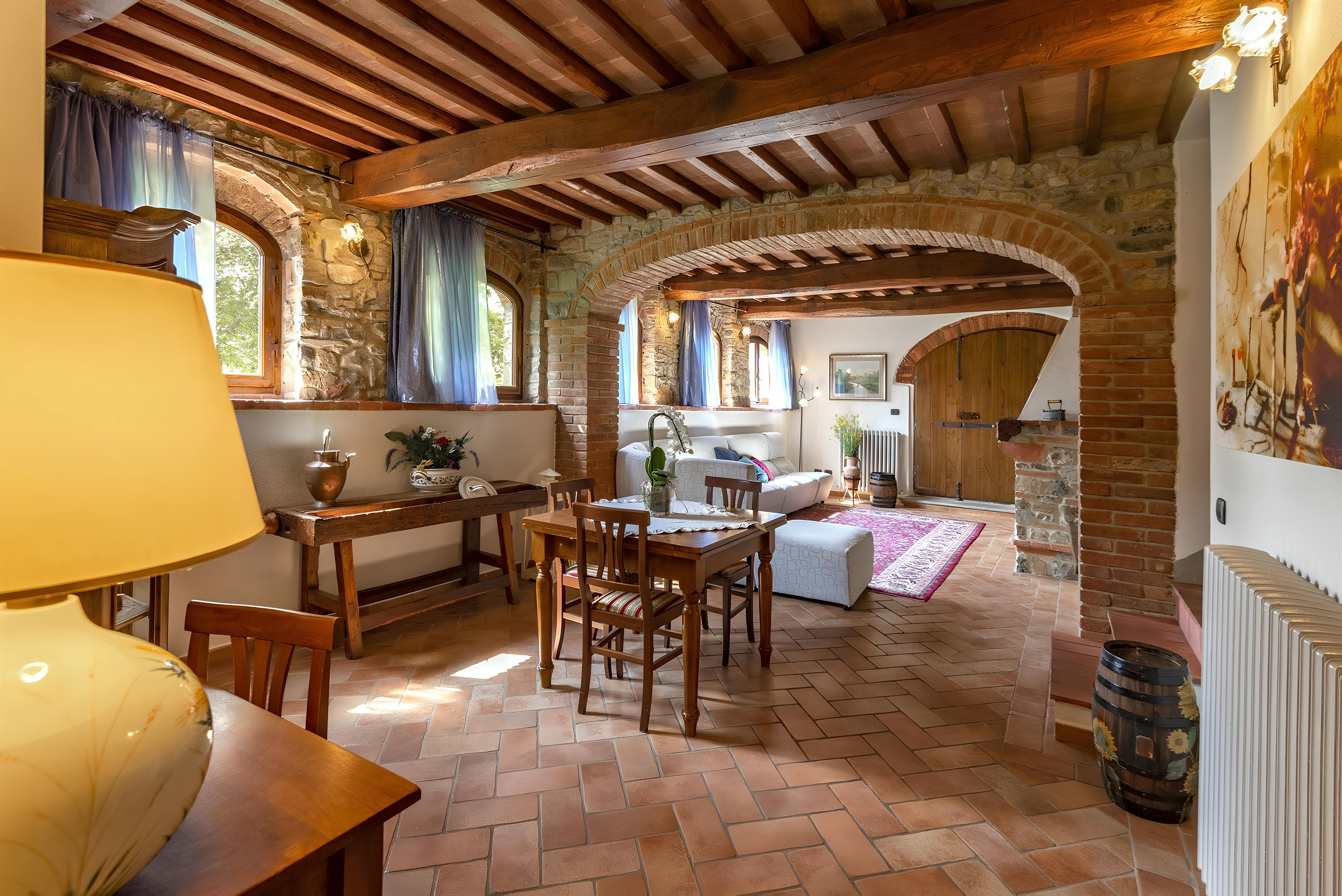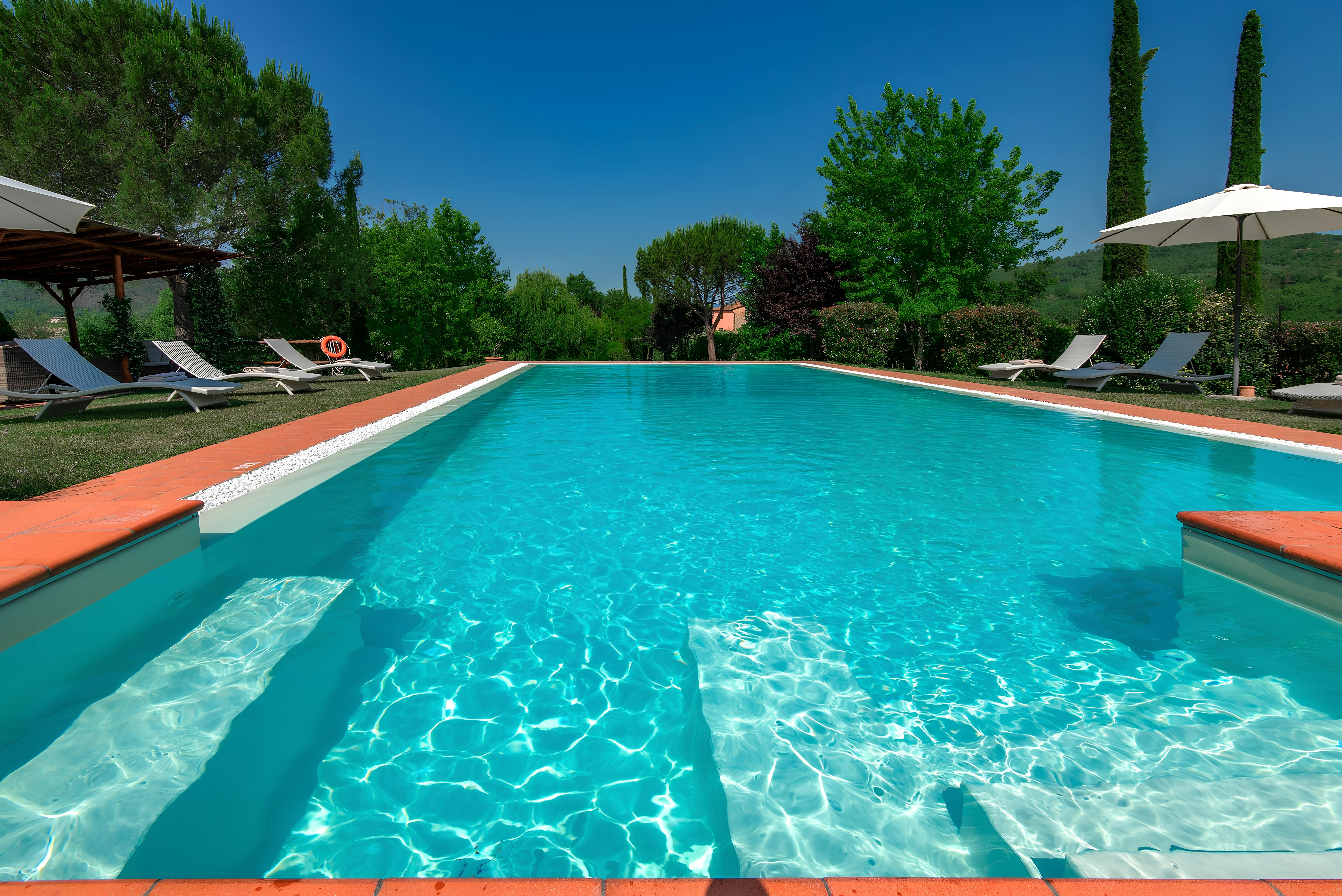 This elegant Tuscan villa features a separate cottage with a double bedroom, perfect for guests seeking extra privacy. The main home emanates charm, with traditional features and plenty of space for a large family or a group of friends to kick back and relax. The outside boasts a private pool area, along with a lush garden and a covered alfresco dining area, perfect for those Italian feasts. There are also mountain bikes available here, so you can explore the picturesque countryside, while kids will love the outdoor play area.