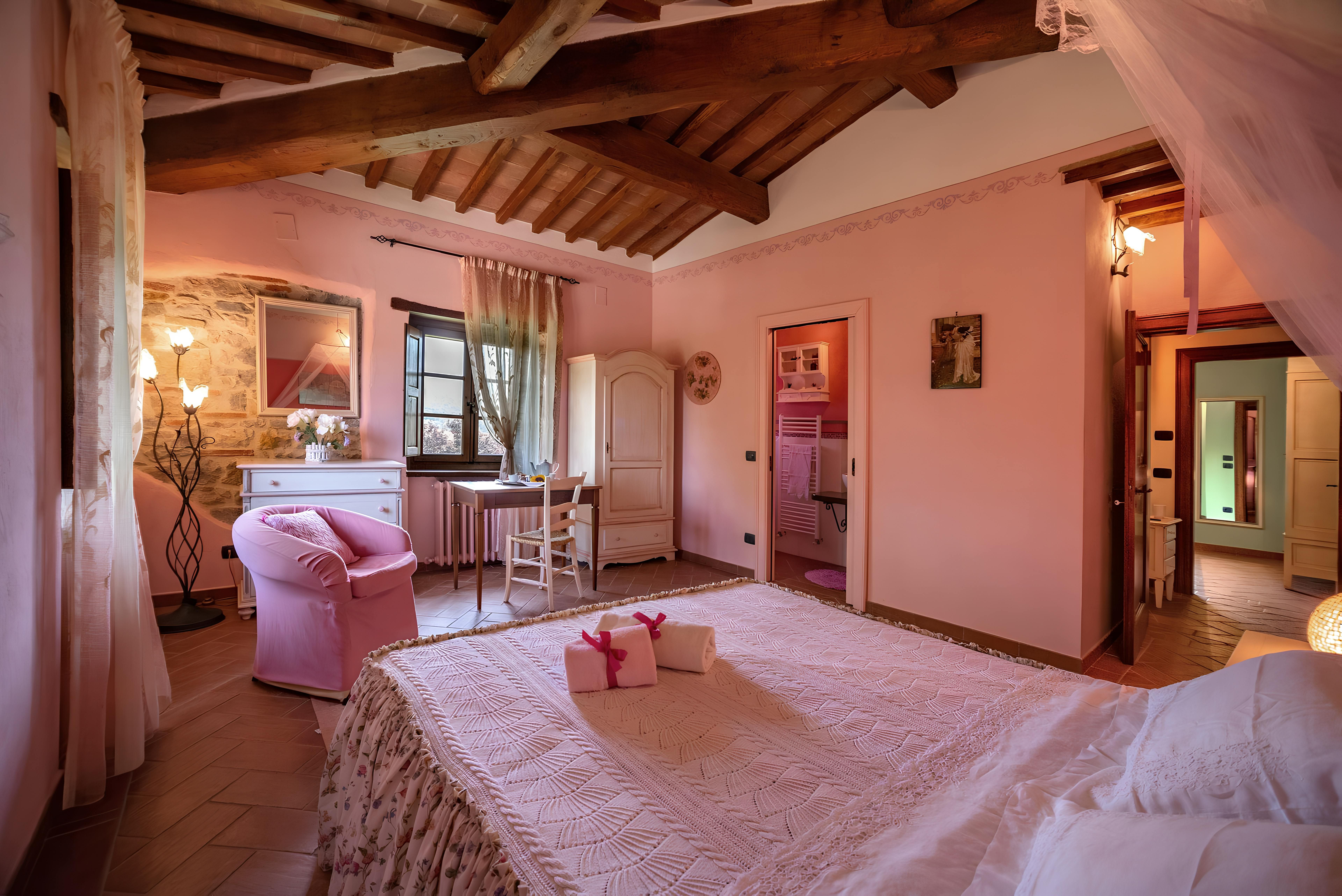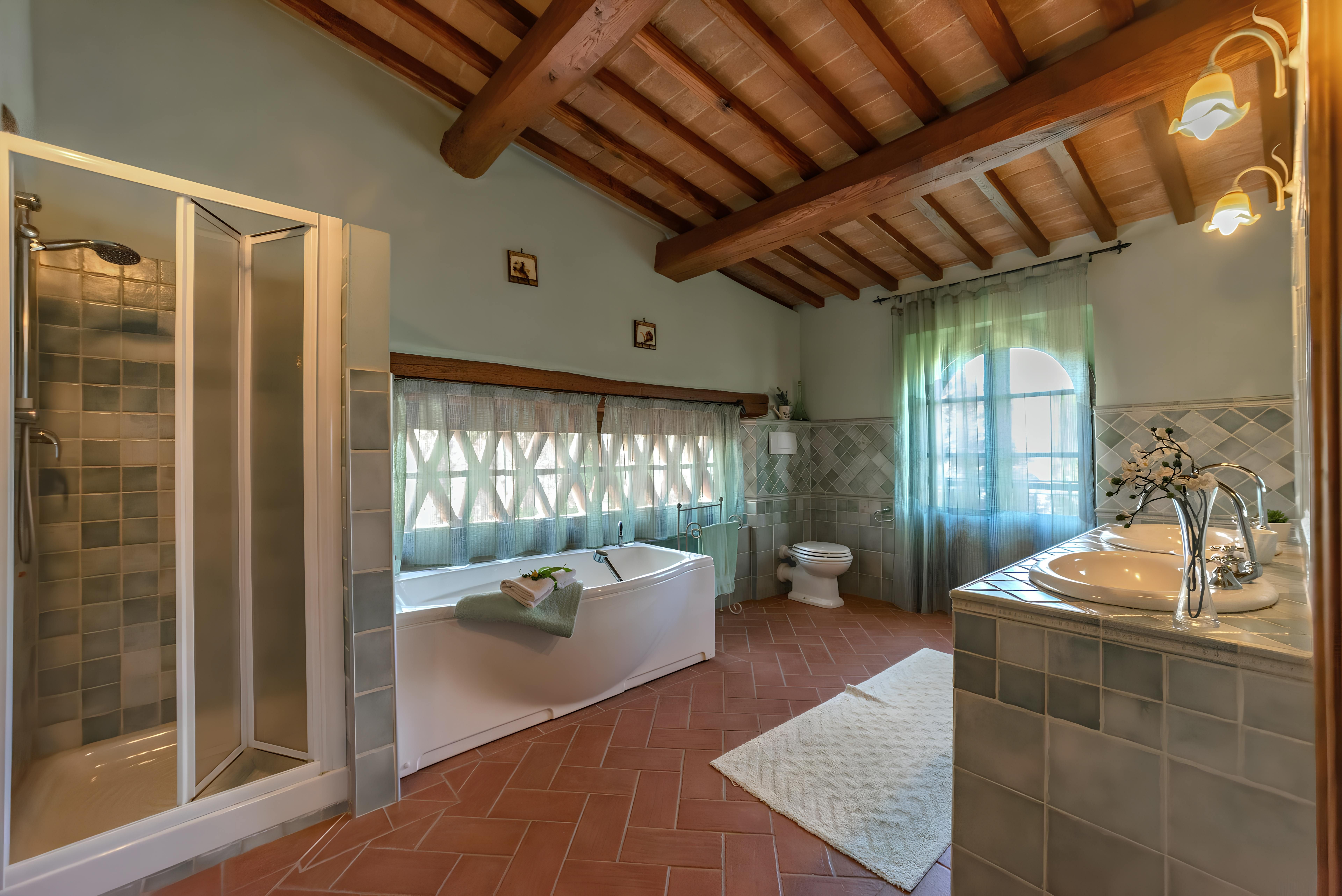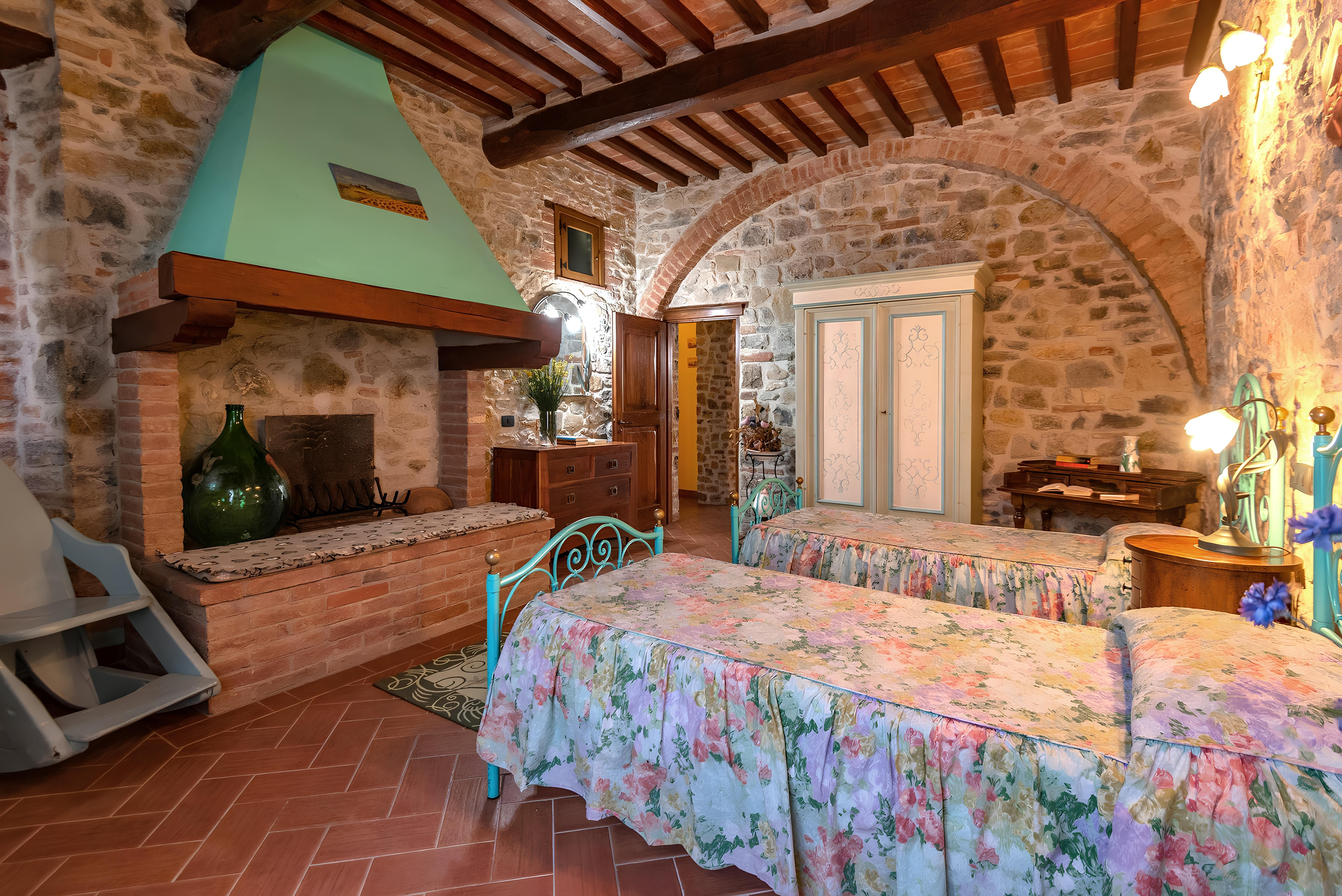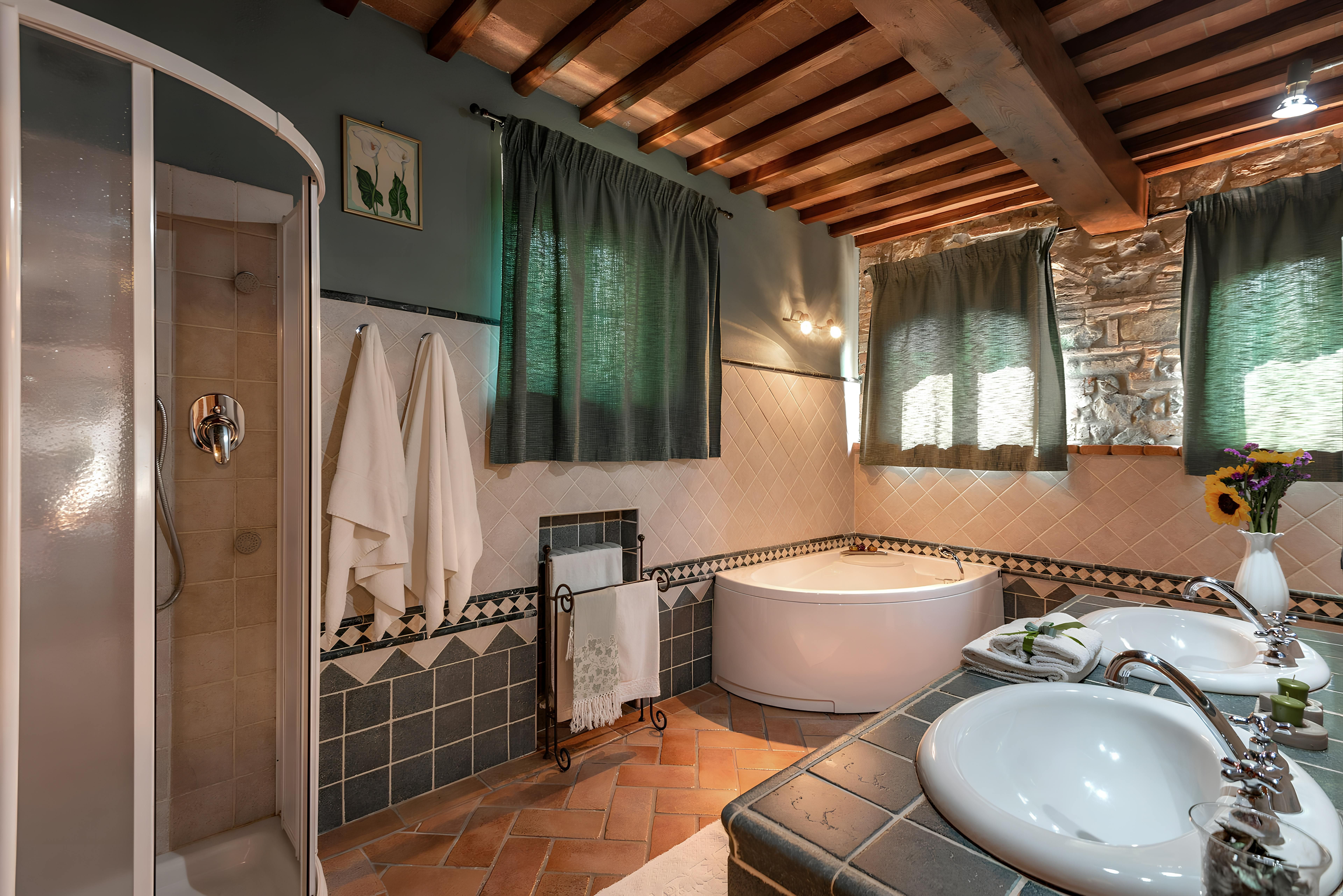 This elegant Tuscan villa features a separate cottage with a double bedroom, perfect for guests seeking extra privacy. The main home emanates charm, with traditional features and plenty of space for a large family or a group of friends to kick back and relax. The outside boasts a private pool area, along with a lush garden and a covered alfresco dining area, perfect for those Italian feasts. There are also mountain bikes available here, so you can explore the picturesque countryside, while kids will love the outdoor play area.