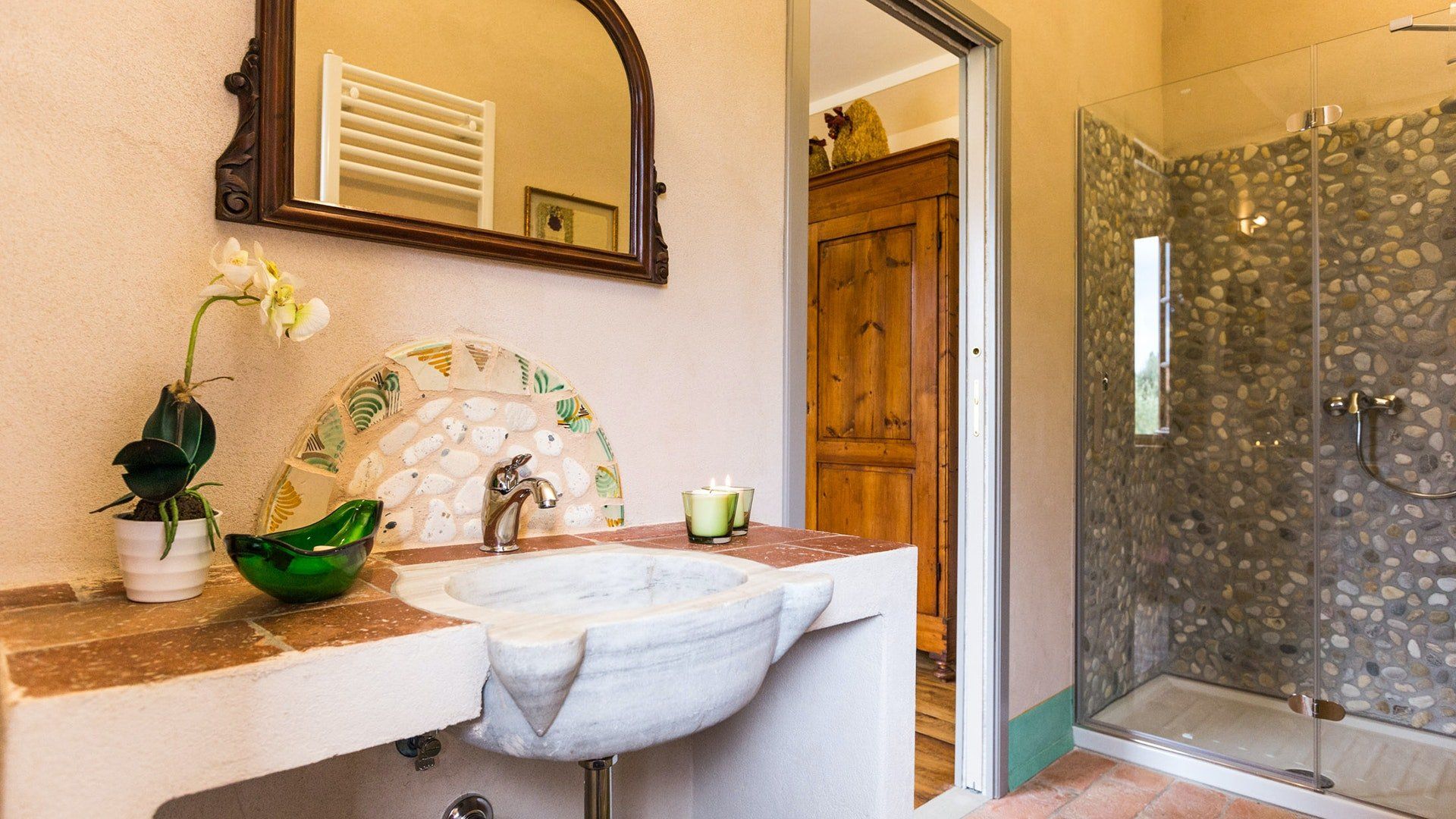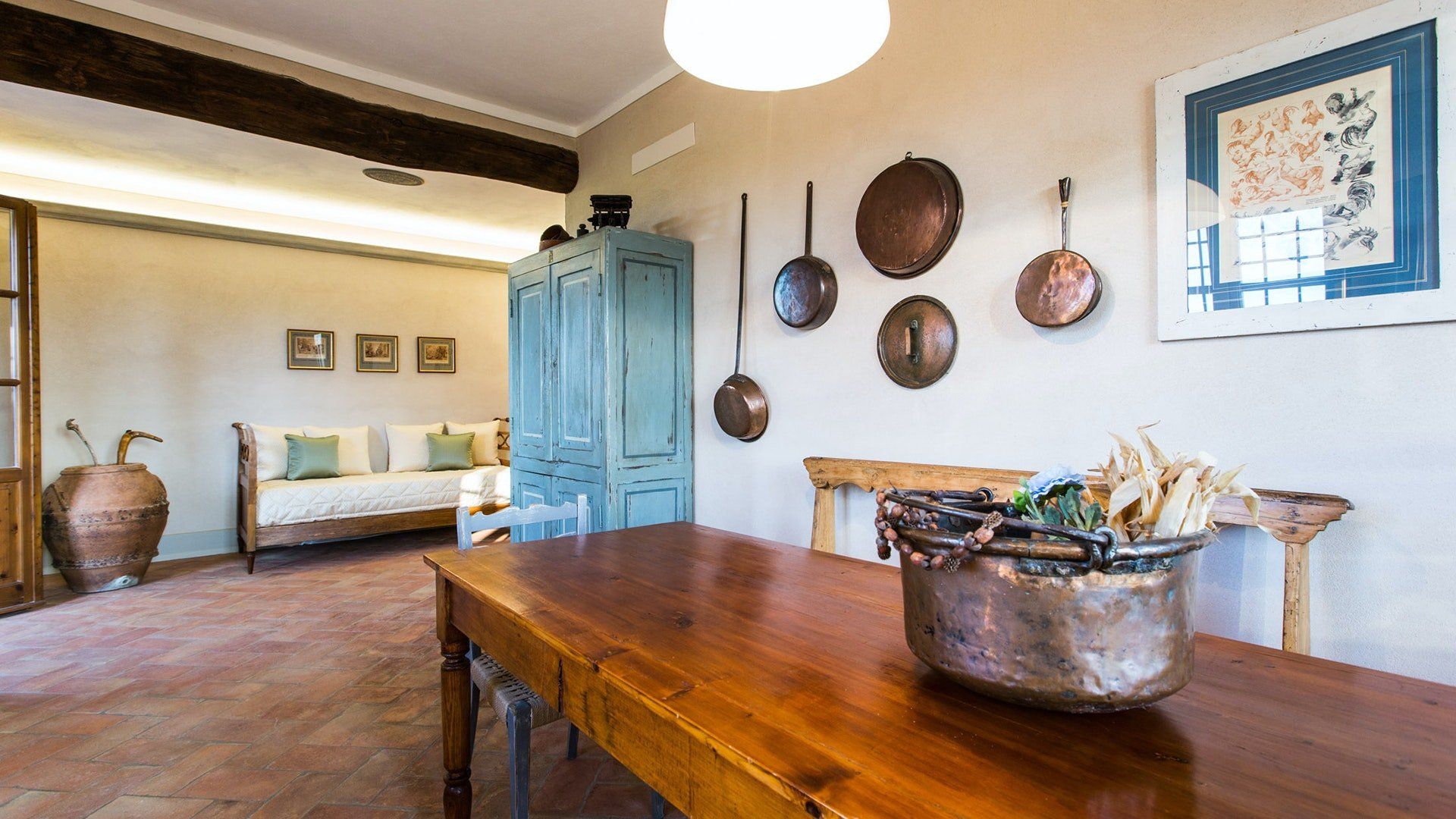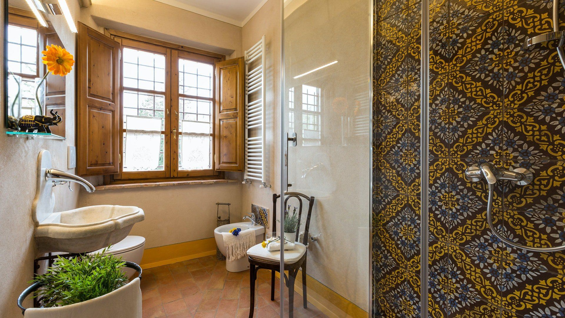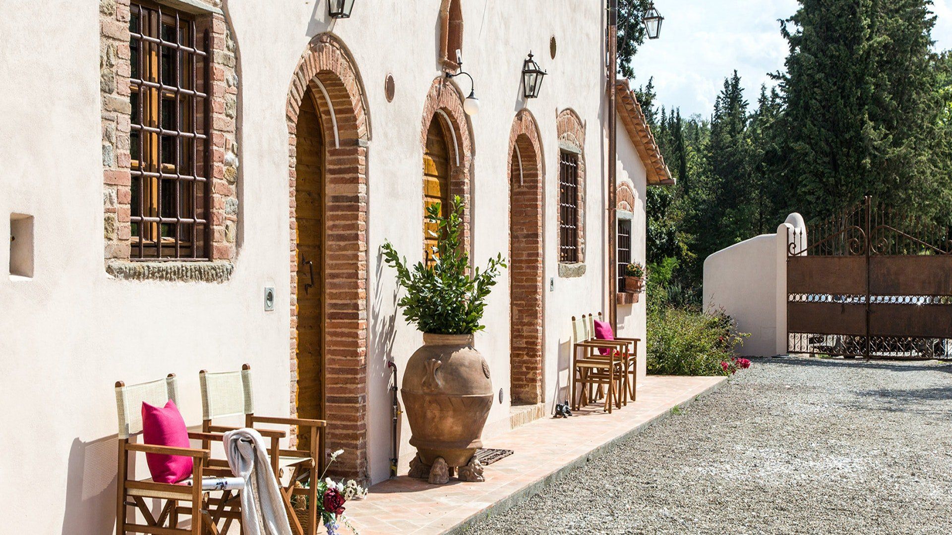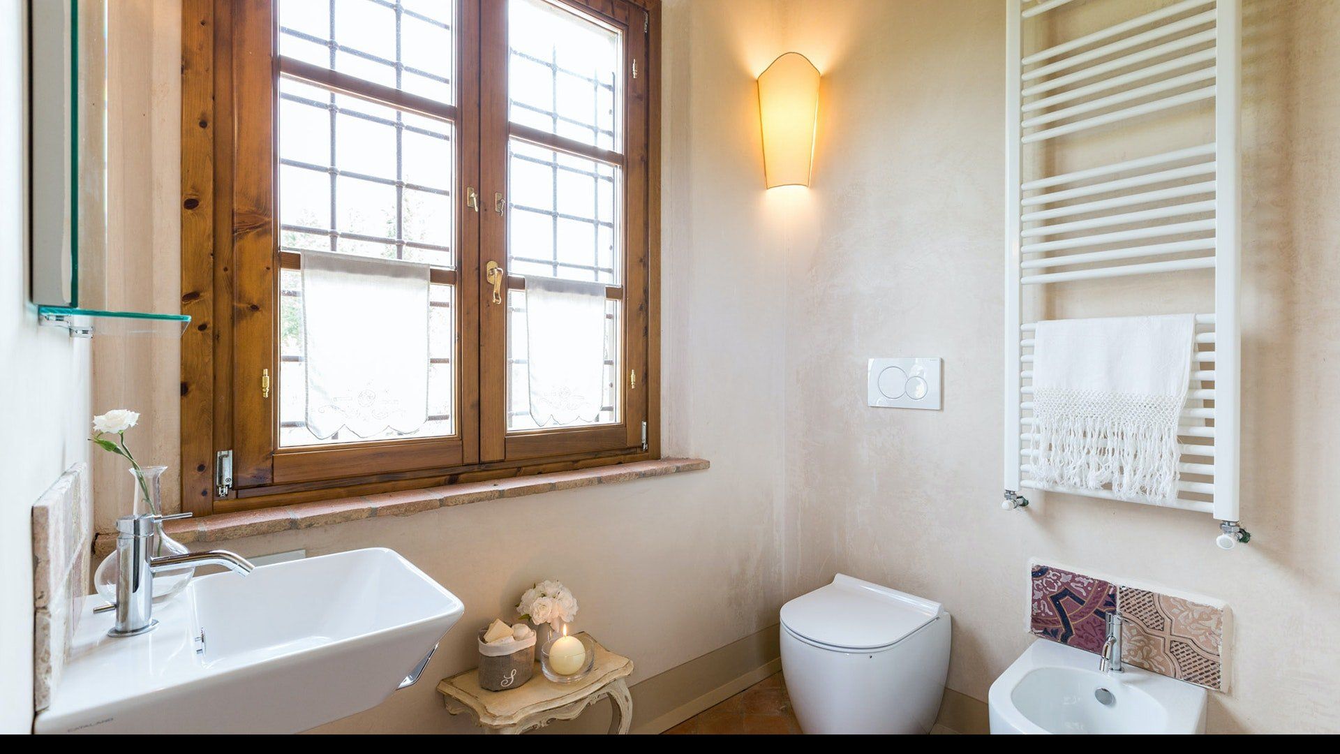 Sitting proudly amongst the Tuscan hills, this fine villa looks out across olive groves and vineyards, as well as an ancient hilltop fort. Equidistant between the provinces of Florence and Pisa, there is a wealth of cultural gems to explore, including the nearby town Vinci (of Leonardo fame). The grounds and gardens are extensive and beautiful, interspersed with olive trees and sweet-scented Mediterranean herbs. The immaculate swimming pool is set over three levels, with the Jacuzzi cascading down into the infinity pool and then on into a shallower children’s pool. Inside the handsome villa, with its classic shuttered windows and scalloped terracotta roof tiles, you’ll find a cool and calm retreat from the Tuscan sun. Exposed brickwork and natural tones of sand and honeyed stone create a calming atmosphere, and there is lovely antique furniture throughout.