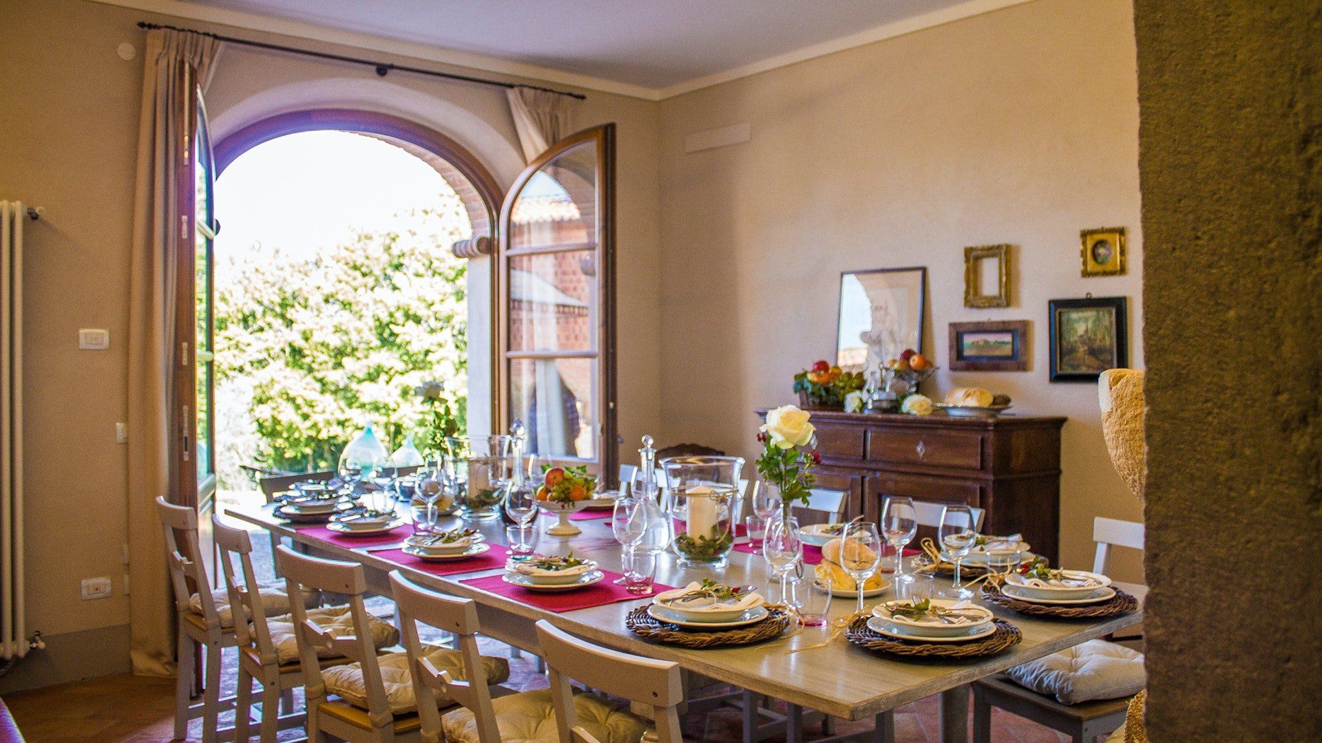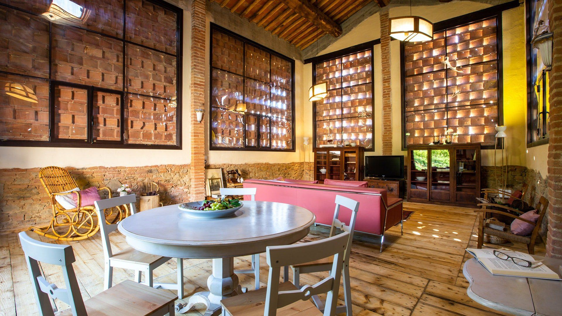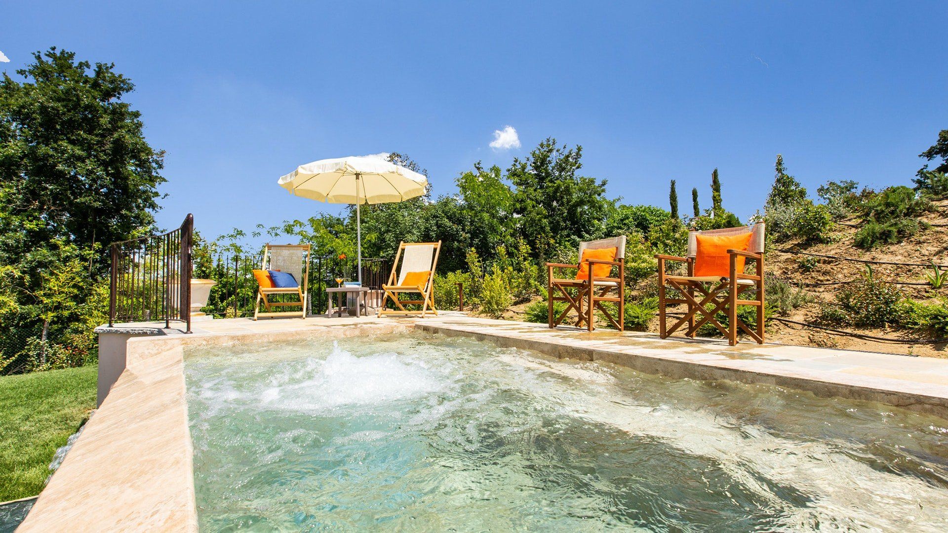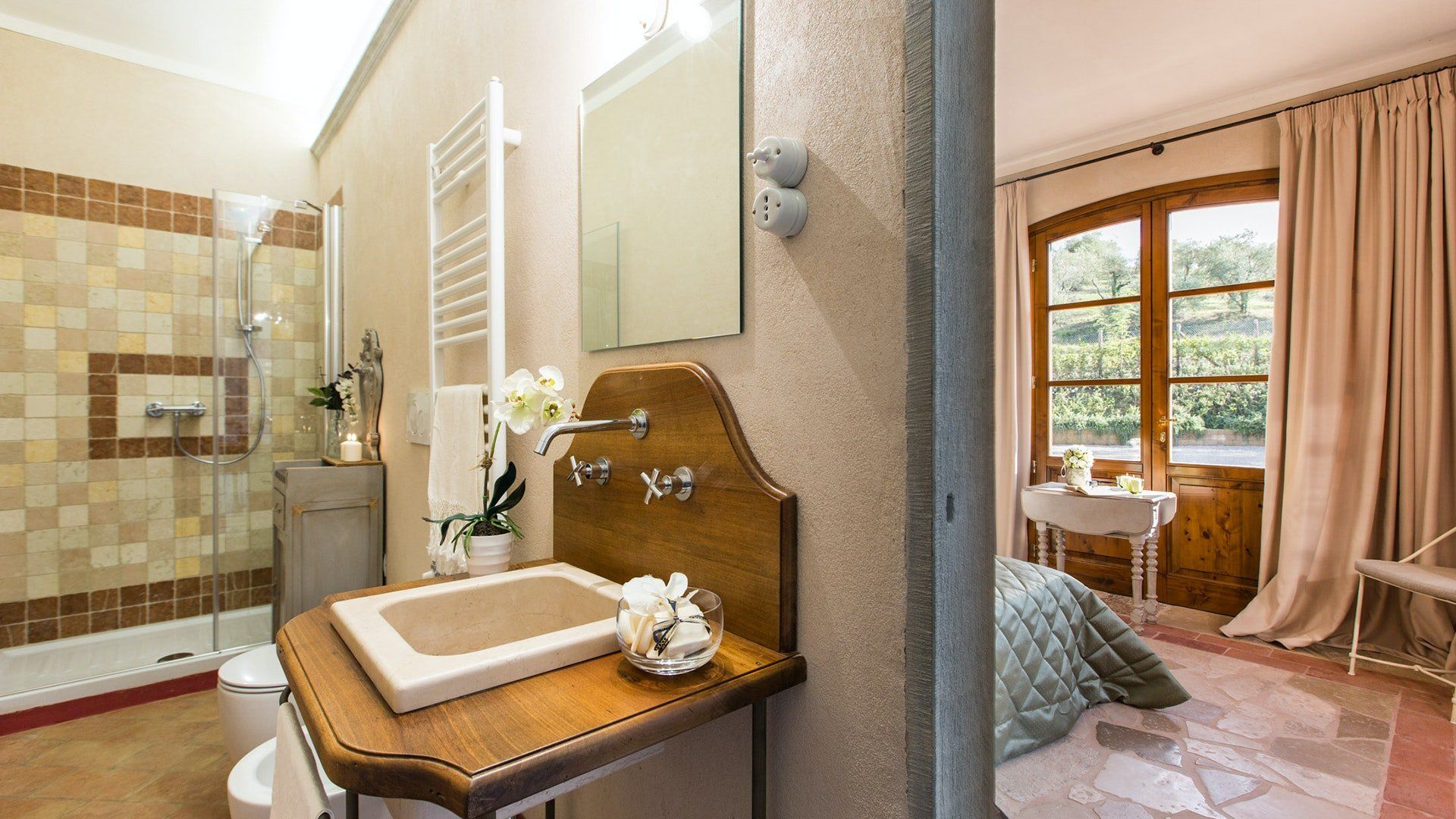 Sitting proudly amongst the Tuscan hills, this fine villa looks out across olive groves and vineyards, as well as an ancient hilltop fort. Equidistant between the provinces of Florence and Pisa, there is a wealth of cultural gems to explore, including the nearby town Vinci (of Leonardo fame). The grounds and gardens are extensive and beautiful, interspersed with olive trees and sweet-scented Mediterranean herbs. The immaculate swimming pool is set over three levels, with the Jacuzzi cascading down into the infinity pool and then on into a shallower children’s pool. Inside the handsome villa, with its classic shuttered windows and scalloped terracotta roof tiles, you’ll find a cool and calm retreat from the Tuscan sun. Exposed brickwork and natural tones of sand and honeyed stone create a calming atmosphere, and there is lovely antique furniture throughout.