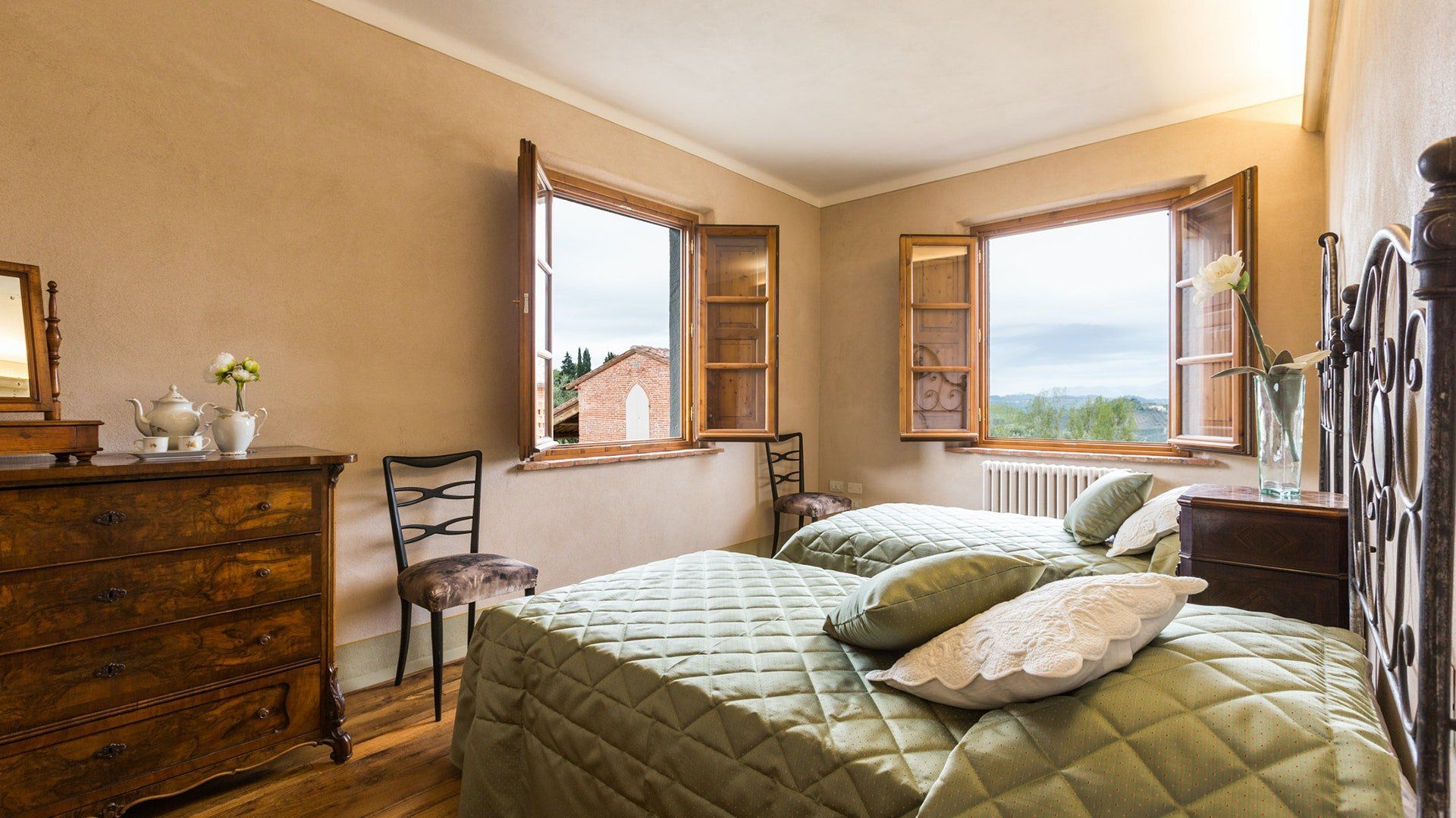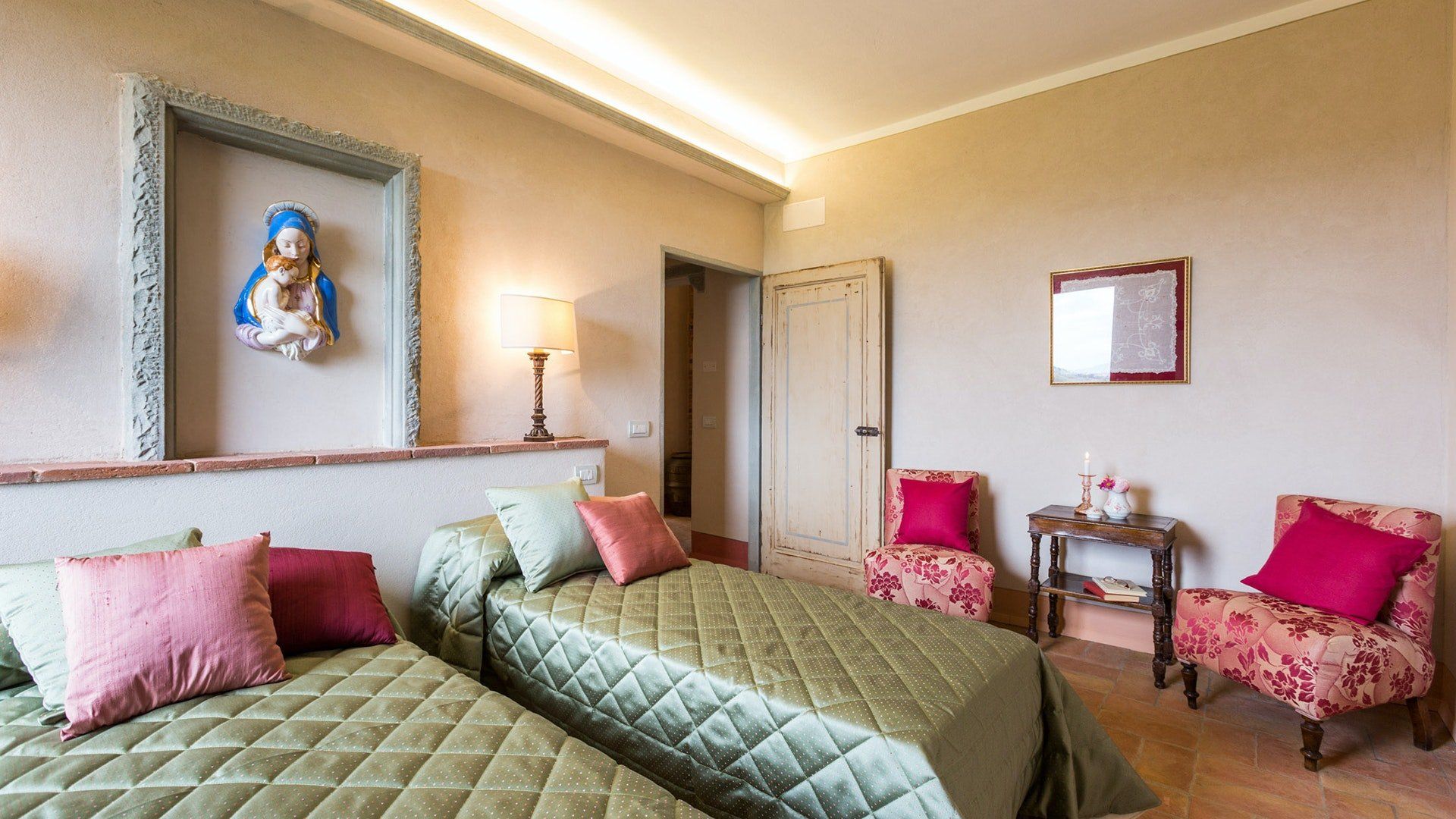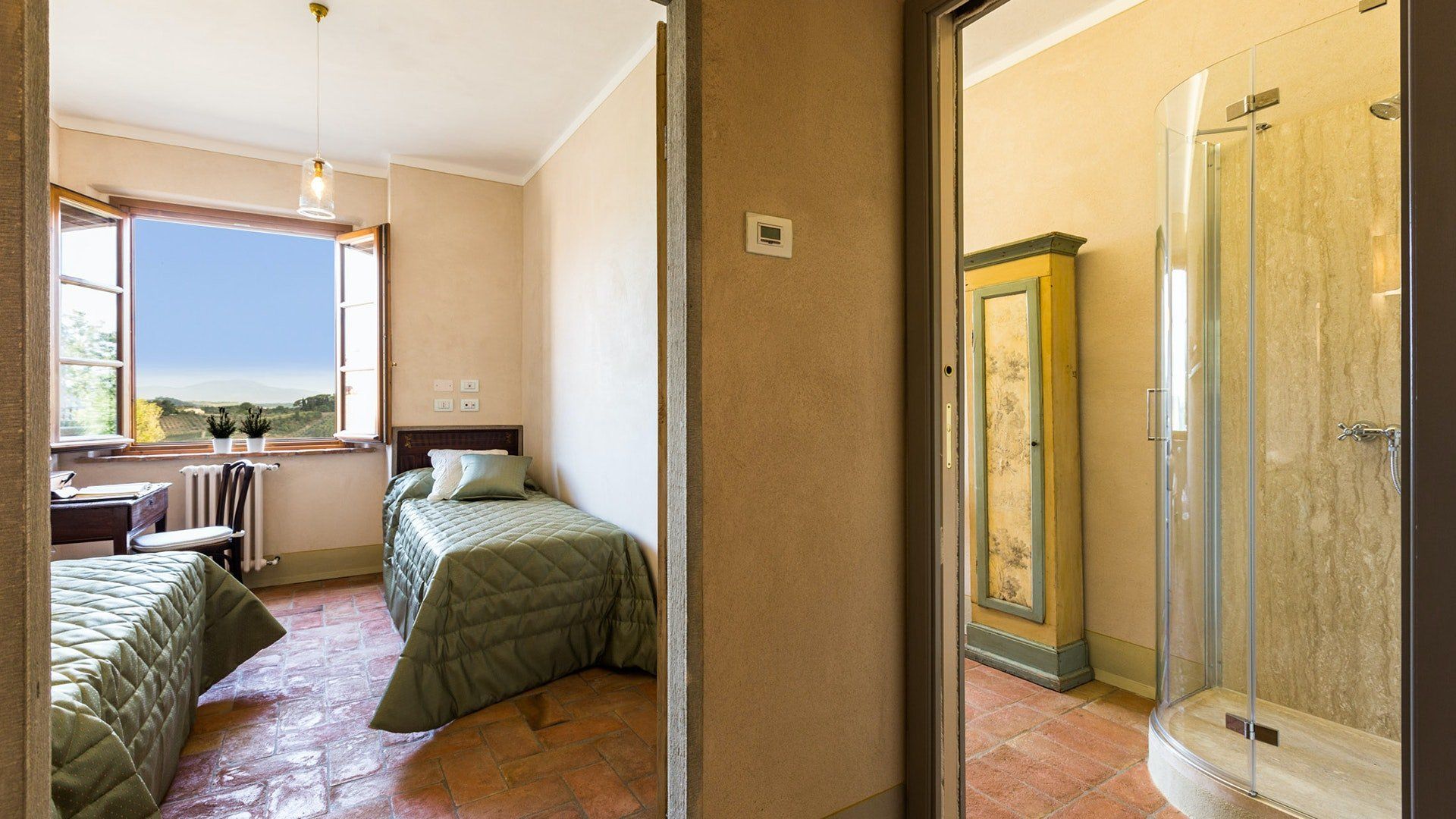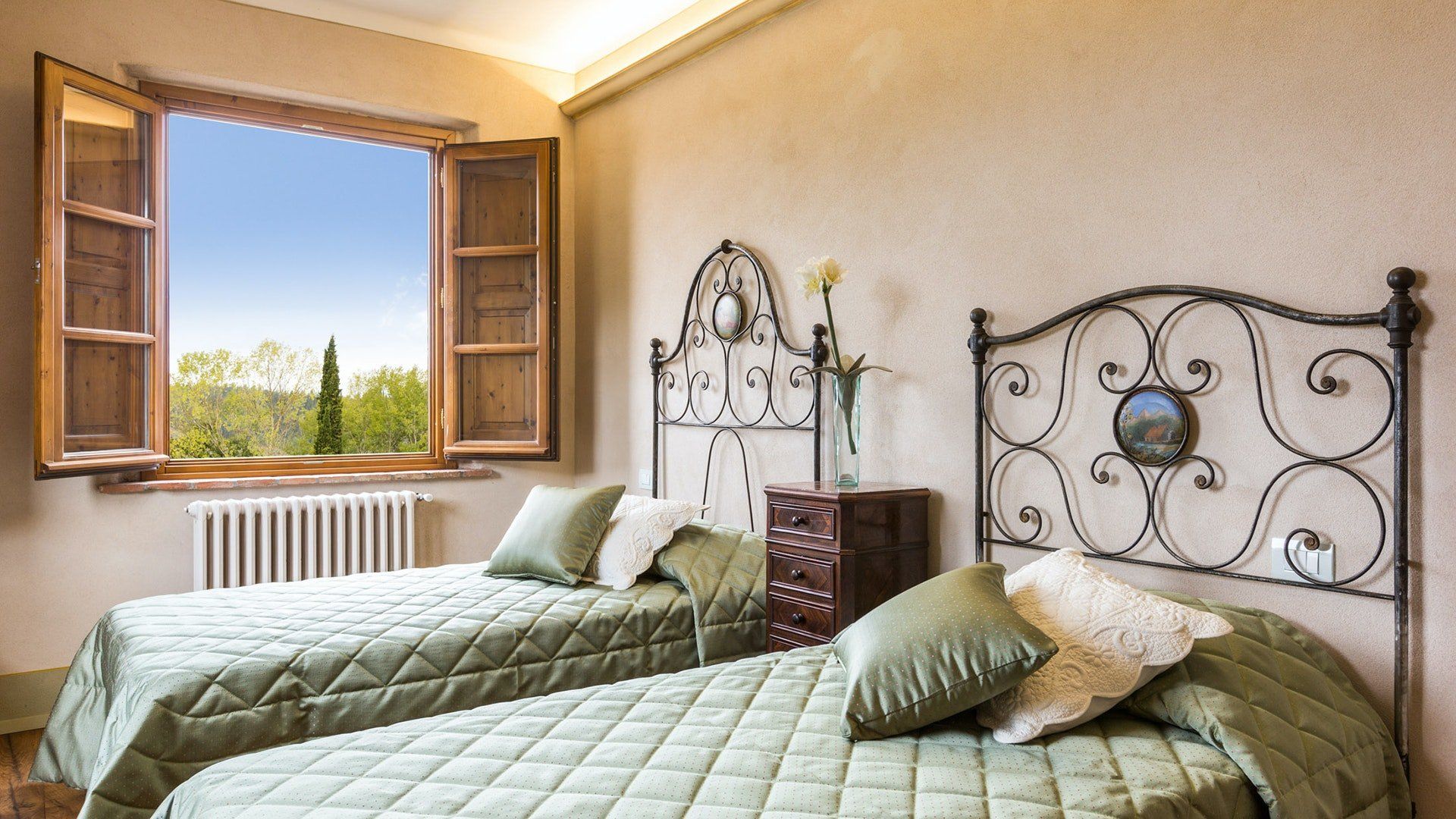 Sitting proudly amongst the Tuscan hills, this fine villa looks out across olive groves and vineyards, as well as an ancient hilltop fort. Equidistant between the provinces of Florence and Pisa, there is a wealth of cultural gems to explore, including the nearby town Vinci (of Leonardo fame). The grounds and gardens are extensive and beautiful, interspersed with olive trees and sweet-scented Mediterranean herbs. The immaculate swimming pool is set over three levels, with the Jacuzzi cascading down into the infinity pool and then on into a shallower children’s pool. Inside the handsome villa, with its classic shuttered windows and scalloped terracotta roof tiles, you’ll find a cool and calm retreat from the Tuscan sun. Exposed brickwork and natural tones of sand and honeyed stone create a calming atmosphere, and there is lovely antique furniture throughout.