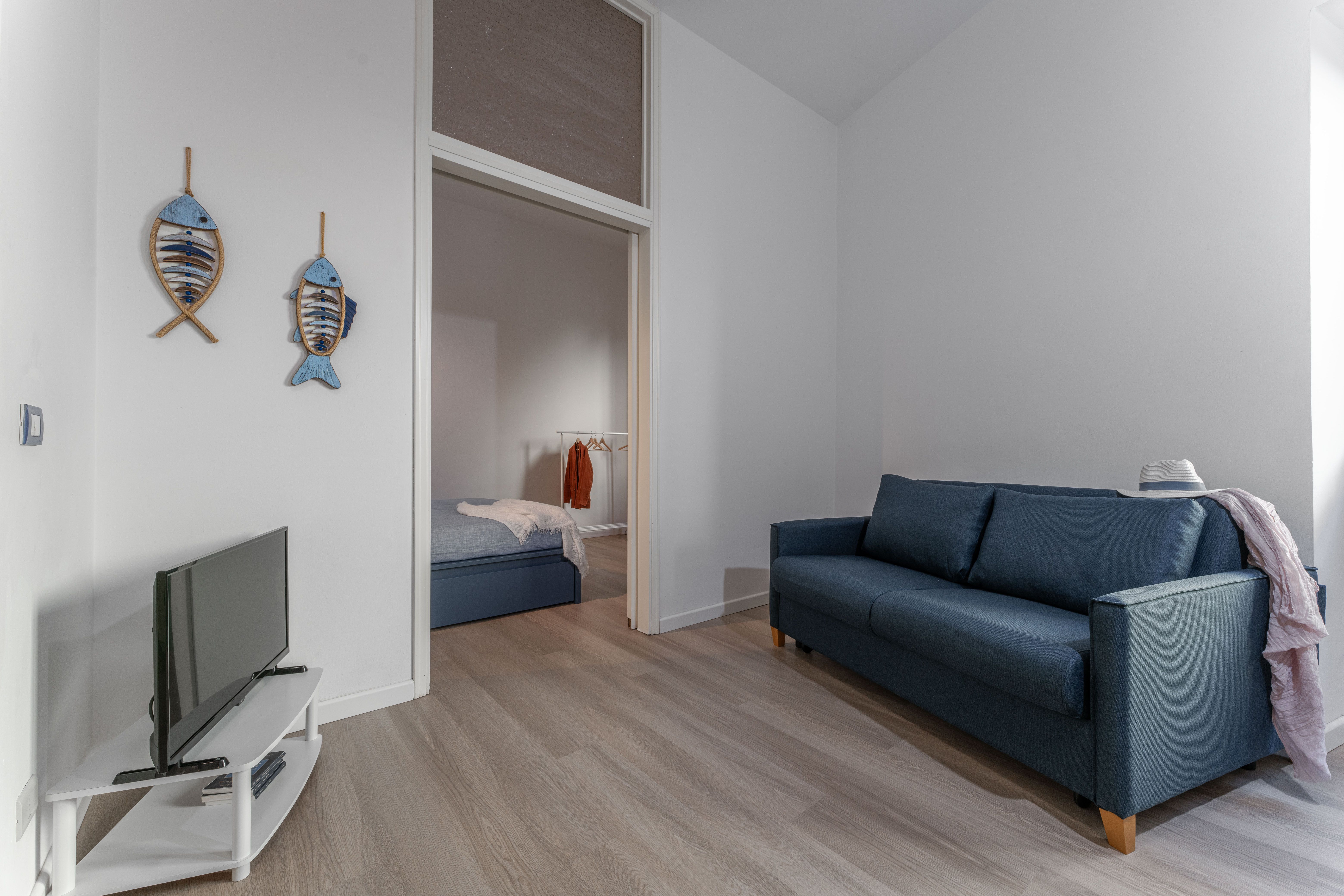 Tucked away in Livorno’s historic New Venice district, this apartment brings you right into the heart of local life. It’s a simple, cheerful space with everything you need for a laid-back city break. The bedroom feels calm and understated, while the open-plan living area – complete with a sofa bed and compact kitchen – is ideal for casual meals and relaxed evenings. Outside, canals weave between buildings and the sea is just a short stroll away. Whether you're wandering the nearby markets or heading to the seafront for sunset, this is an easy base for soaking up Livorno’s maritime charm.