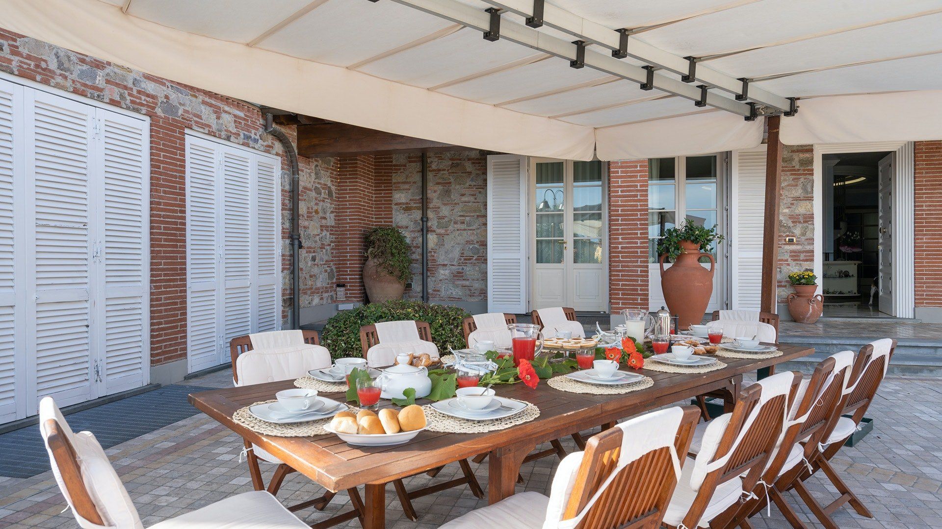 Set on the rolling hills of Montecarlo and surrounded by vineyards and olive groves, you'll find yourself in awe of the countryside views when you stay at this traditional villa. From the moment you arrive and enter the gated driveway, you'll realise this is somewhere special. Completely fenced and bordered with hedges, fragrant flowers and antique terracotta pots, the 5,000sqm garden here feels more like a park. Kids will enjoy the outdoor ping pong table, while the adults enjoy sipping sundowners and sharing nibbles in the alfresco dining space, surrounded by the scents of the surrounding vineyards. And let's not forget the Roman-style pool, lined in beautiful blue mosaic tiles with hydromassage jets that invite you to lean back and relax. Inside, this home is just as impressive, with beautiful artwork and elegant antique furniture everywhere you look. We particularly love the green marble spiral staircase, which adds an air of opulence to the space. We're sure you'll be more than content here, but if you want to venture out, the ancient Montecarlo Fortress is close by.