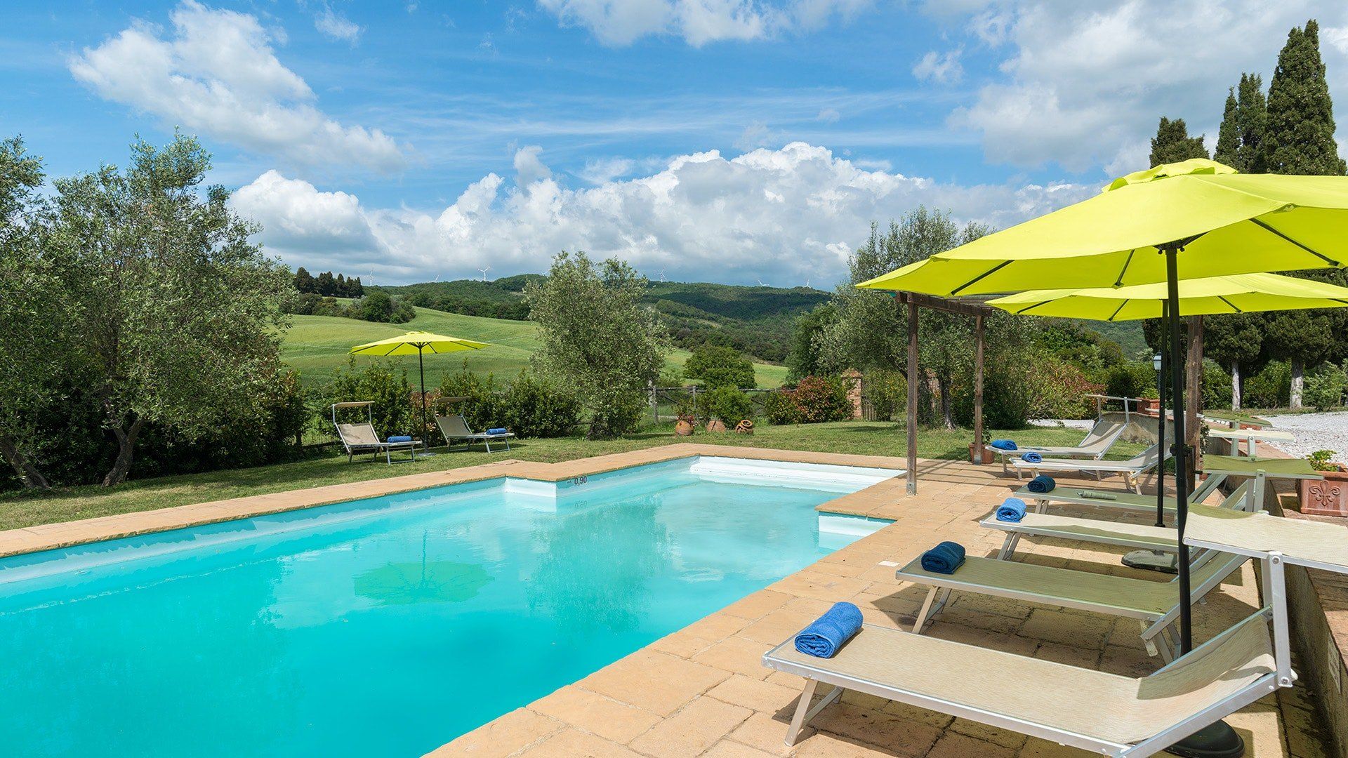 Don’t be thrown by the neon pool umbrellas – everything else about this villa is pure class. Set in two square kilometres of gardens, with manicured lawns, fragrant herbs and towering cypress trees, it’s an imposing Tuscan country home, with two wings and a separate annexe. Found in Casino di Terra in Pisa province, its style could be described as “typically Tuscan”, with its whitewashed walls and terracotta tiles, bare stonework and exposed beams, making for a relaxing, traditional vibe. The two wing set-up makes it great for two families to share, especially as there’s a good mixture of double and single beds (including three rooms where you can choose to zip them together or separate them to suit). Throw in the pool area, with its outdoor shower and nighttime illumination, stone barbecue and a poolside portico for outdoor dining in all weathers, and you’ve got the makings of a seriously nice Italian holiday.