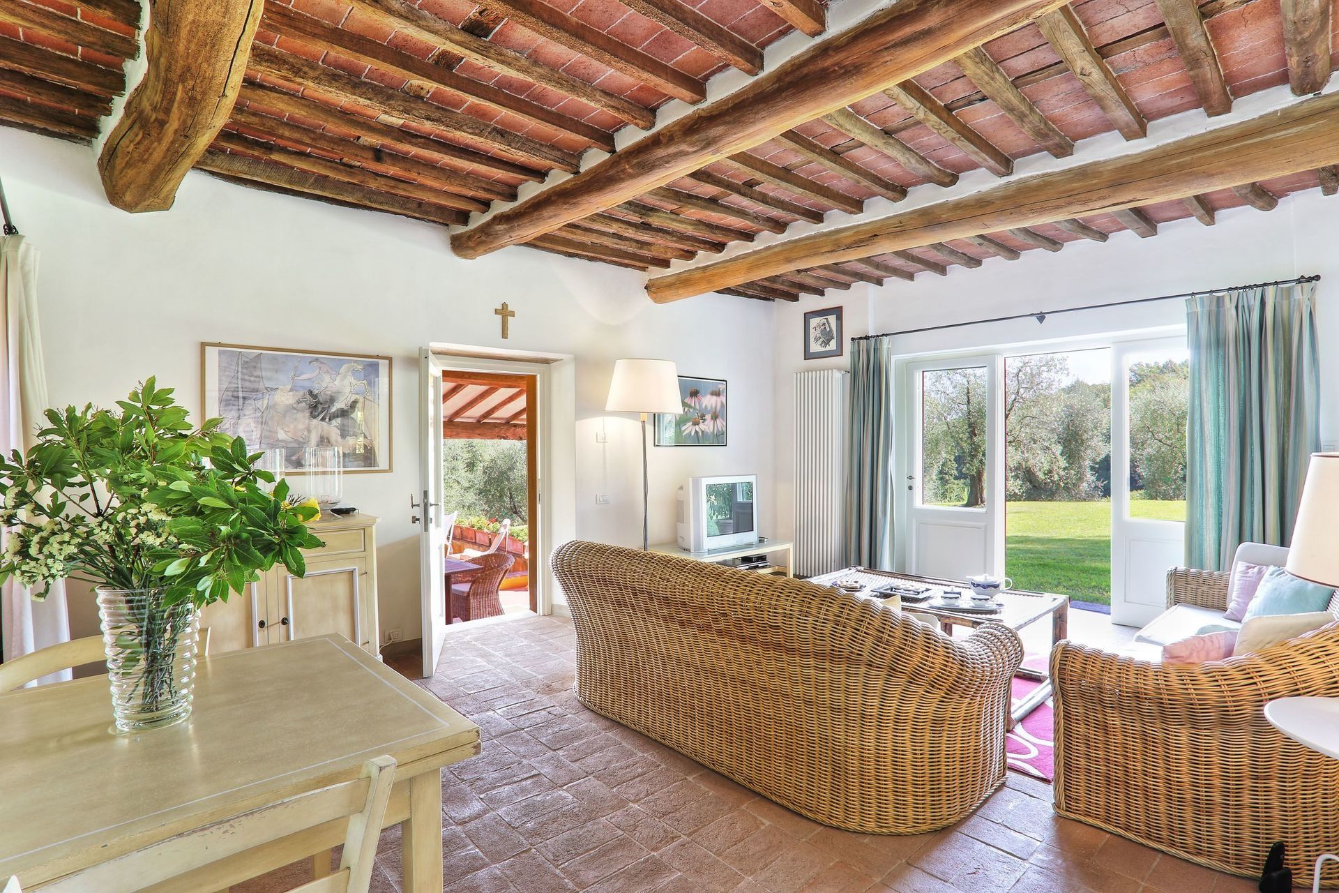 Just a short drive from Lucca and within easy reach of Pisa, Florence, and the Versilia coast, this villa is perfectly placed for your Tuscan escape. When you’re not out sightseeing, it’s a peaceful spot to unwind, surrounded by vineyards, olive groves, and countryside views. There’s a private pool for lazy afternoons and a pergola-shaded terrace made for long alfresco meals. Inside, the farmhouse has everything you’ll need for a comfortable stay, including a well-equipped kitchen. When full, two will sleep in the separate annexe, which offers flexibility. Best of all, the estate produces its own wine, olive oil, and more – with tastings included, you can savour a true taste of Tuscany without leaving home.