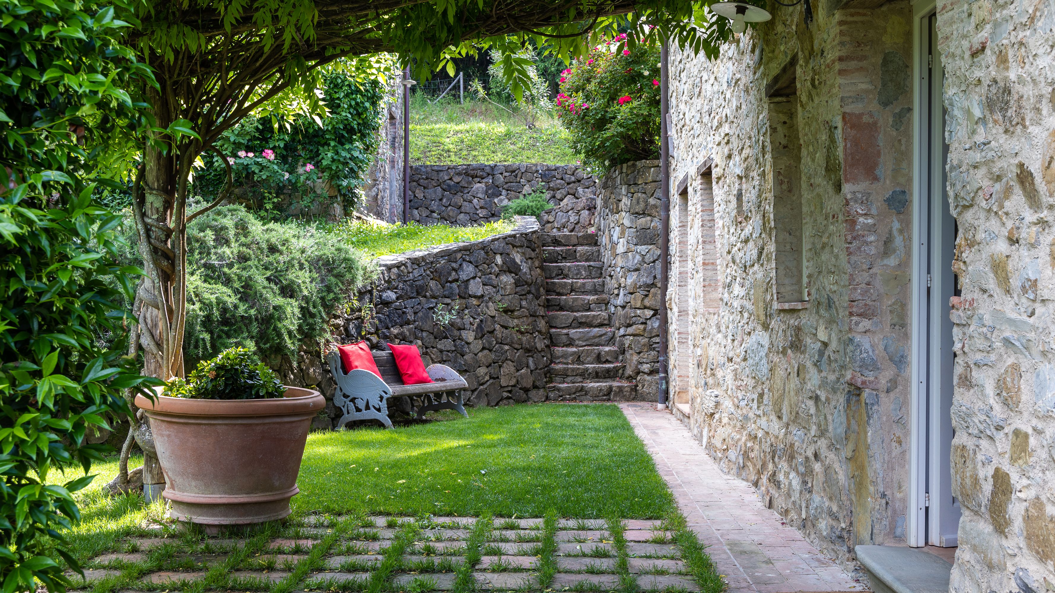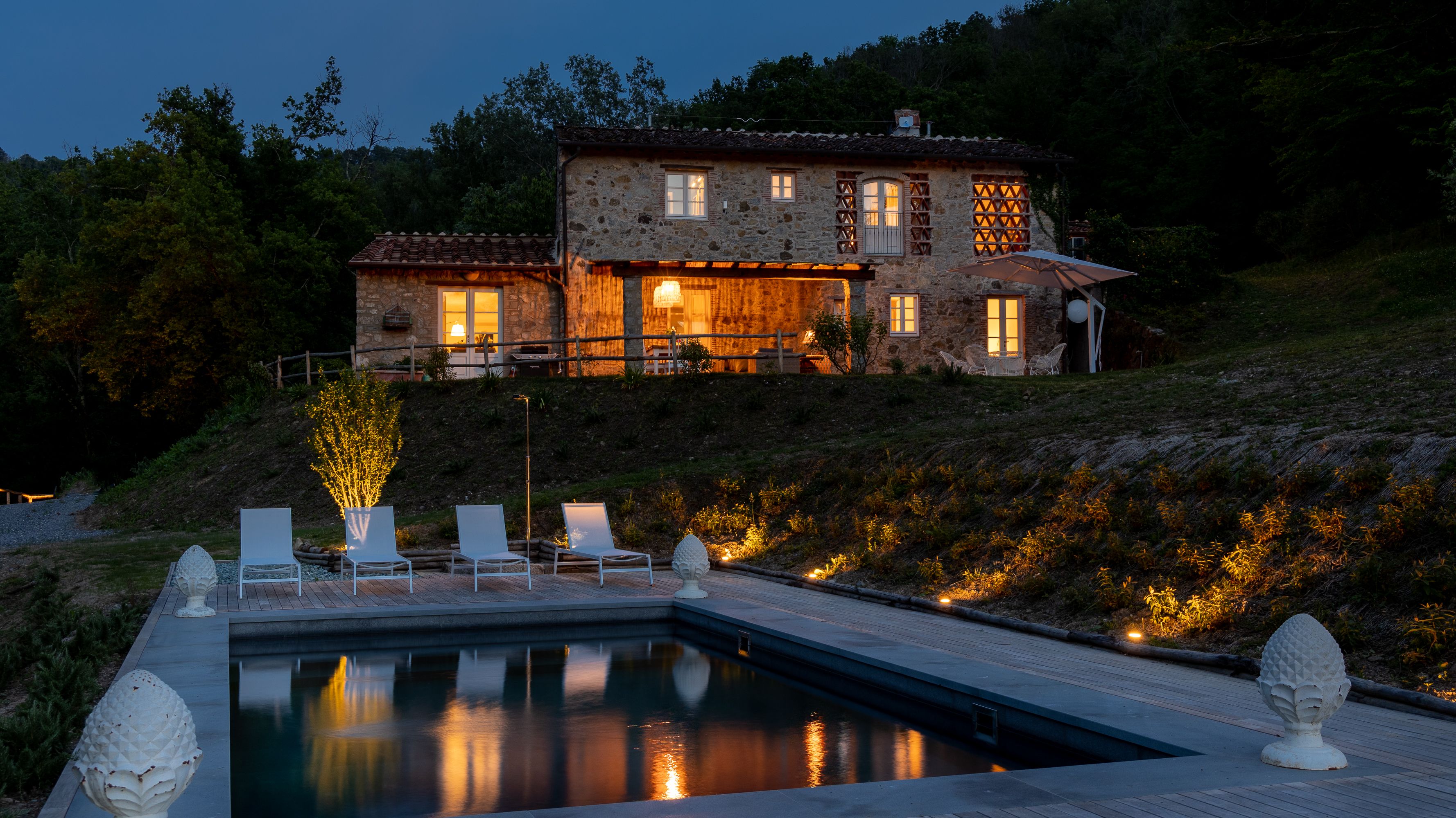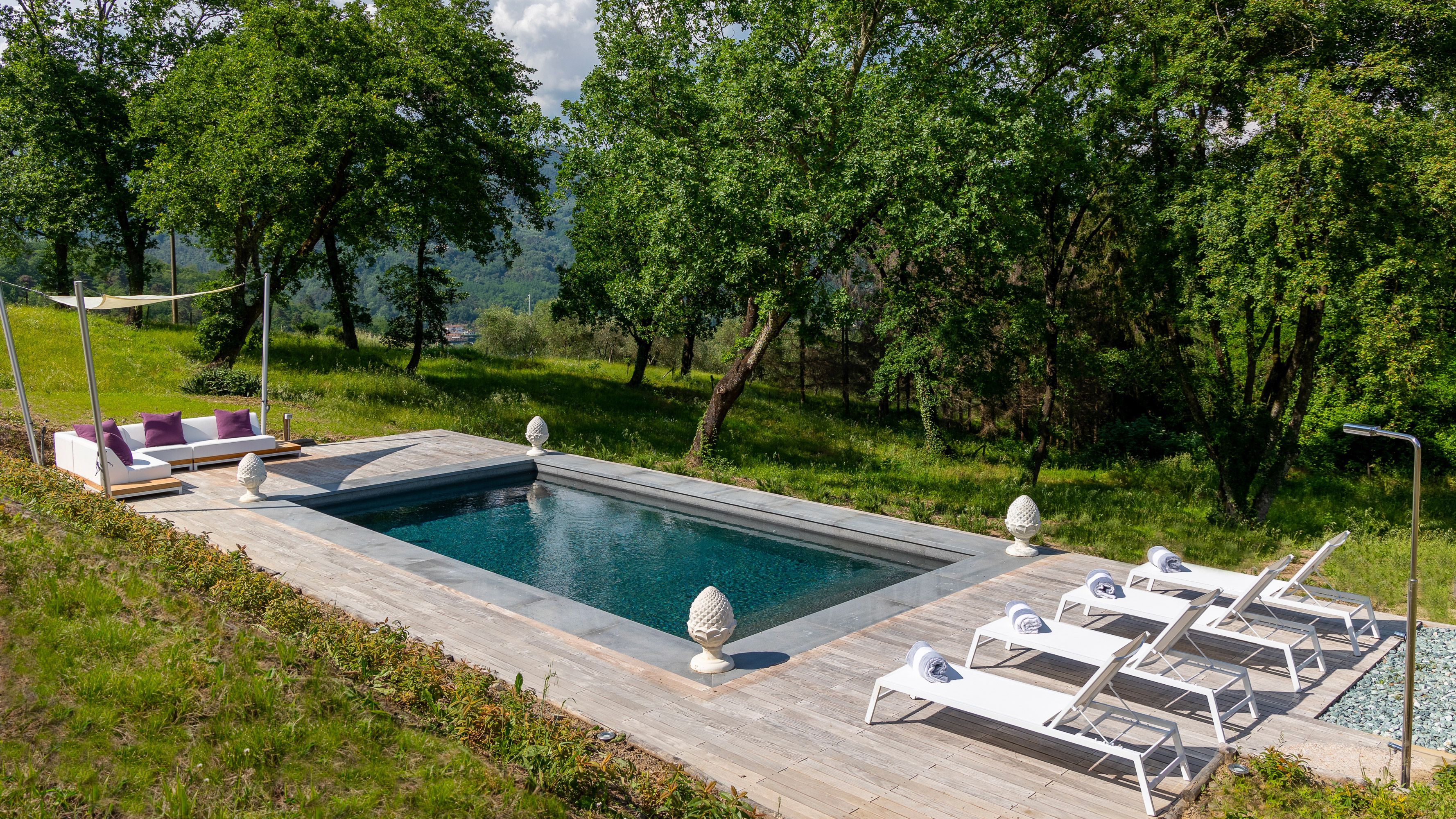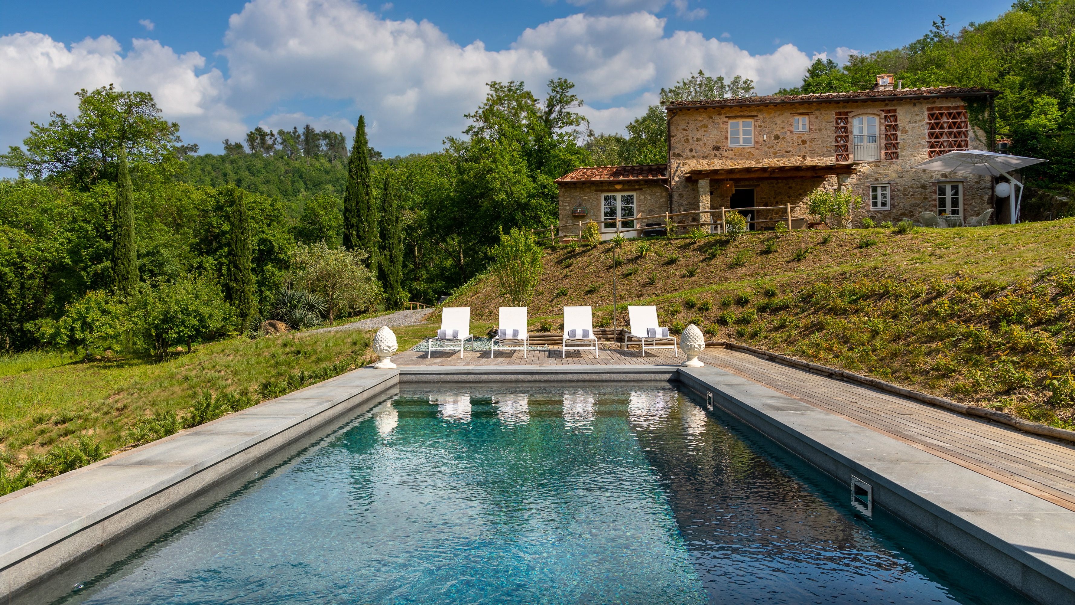 Situated in a rural and restful setting amongst idyllic little villages and breathtaking nature spots, this home provides exactly what you'd expect from a classical Italian villa – elegant interiors, a sparkling private pool and a peaceful and leafy garden where you can soak up the sunshine. We love the beam ceilings and cobblestone walls, which both give the home bags of traditional charm. When you fancy exploring, you'll find the city of Lucca just a short drive away, a city steeped in history where you can discover stories about its rich past.
