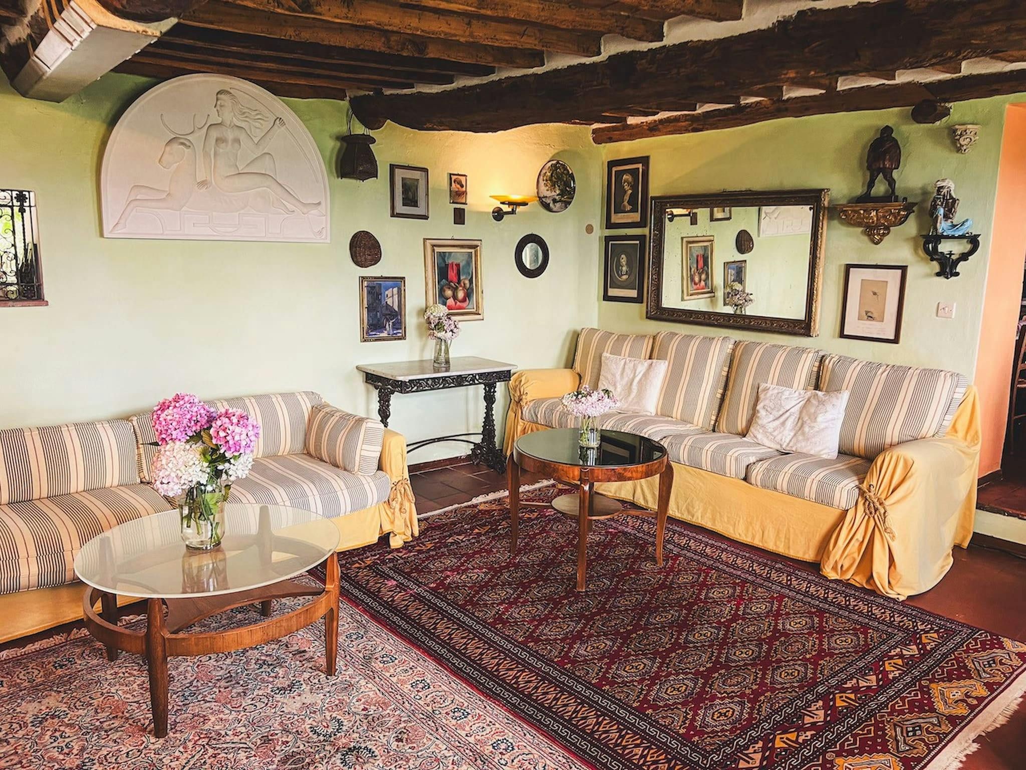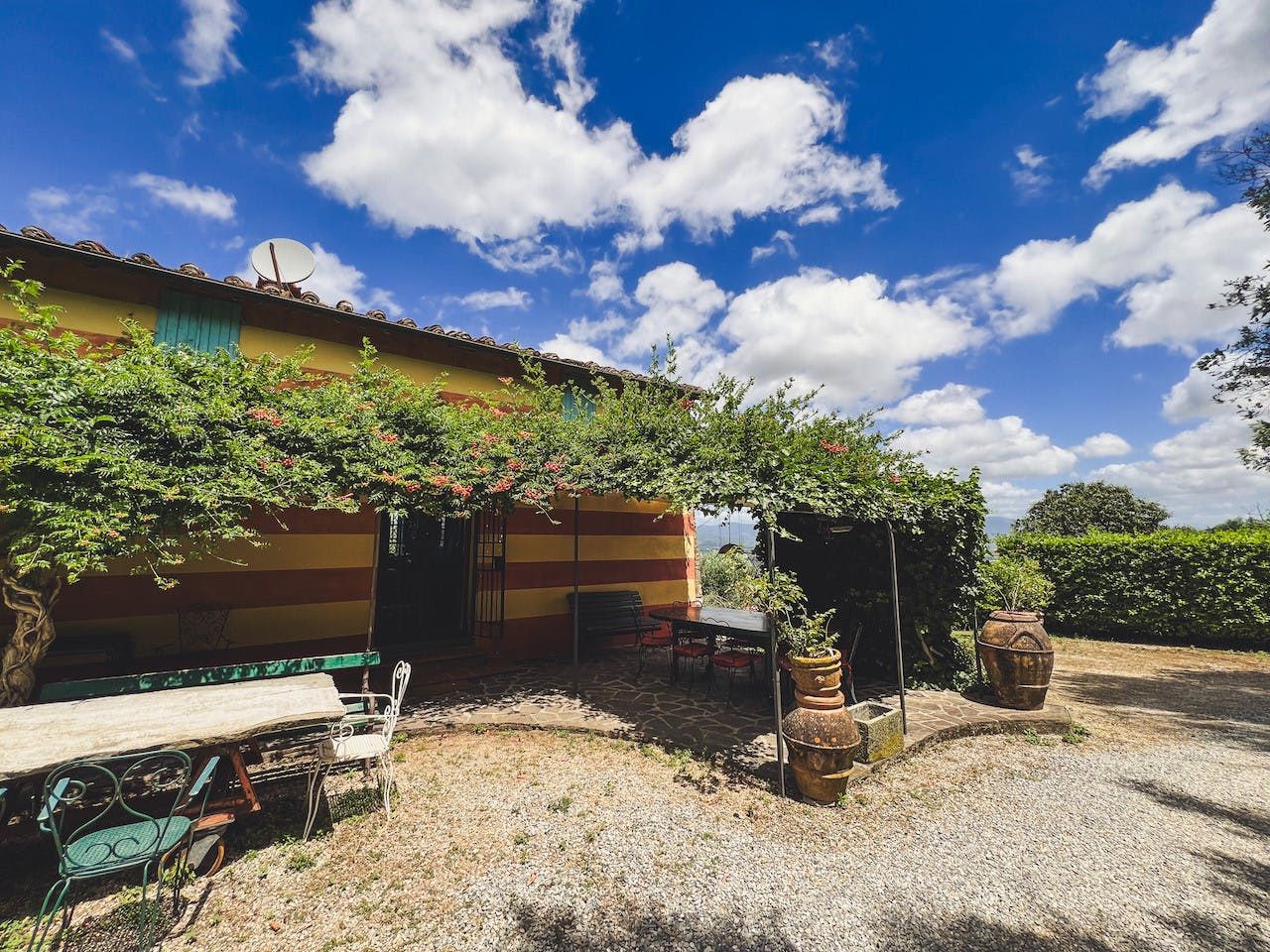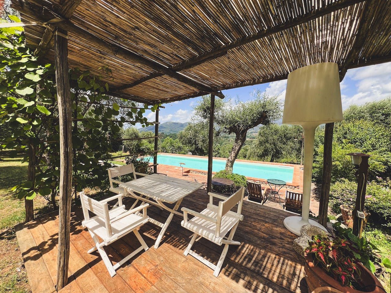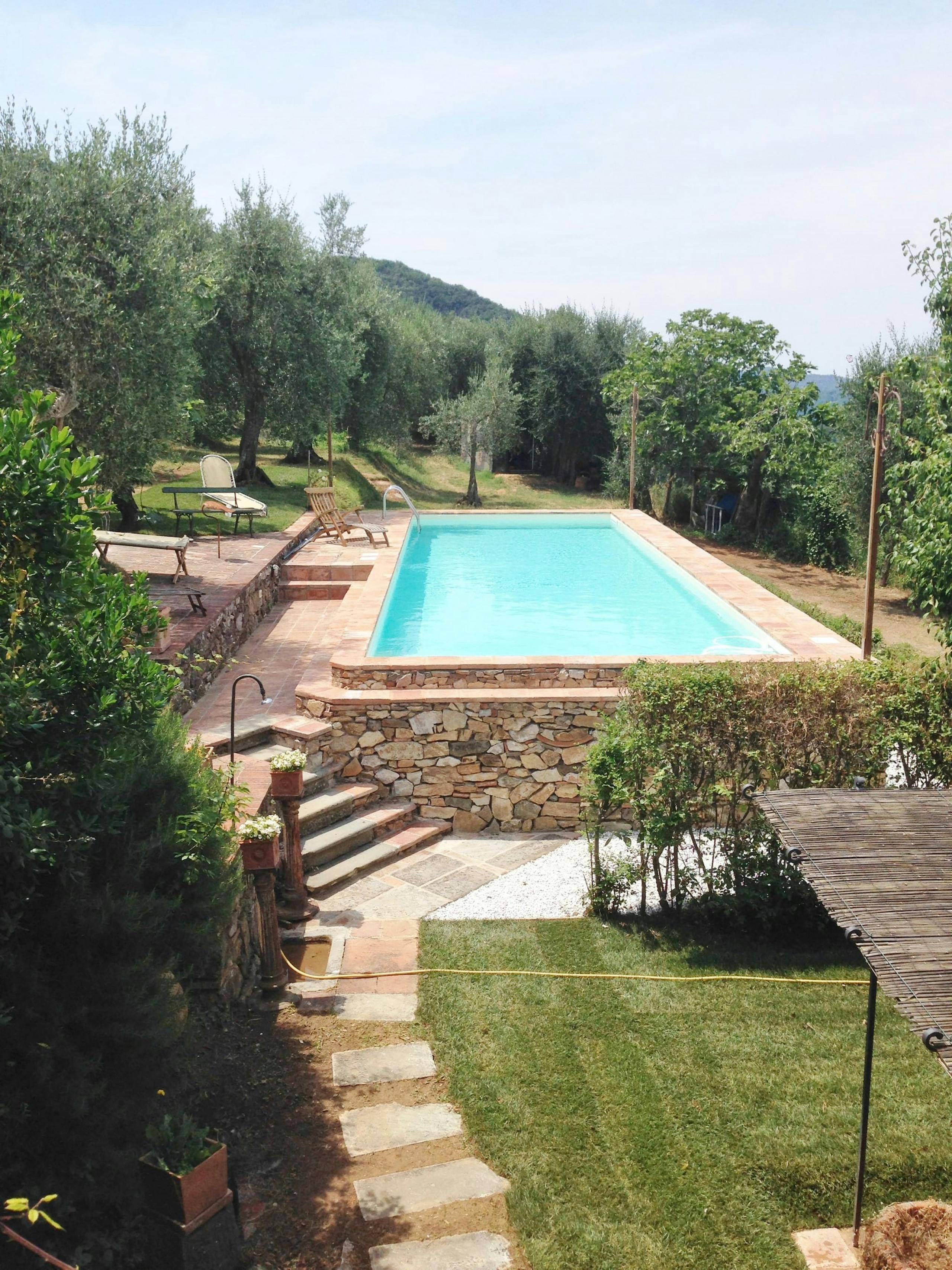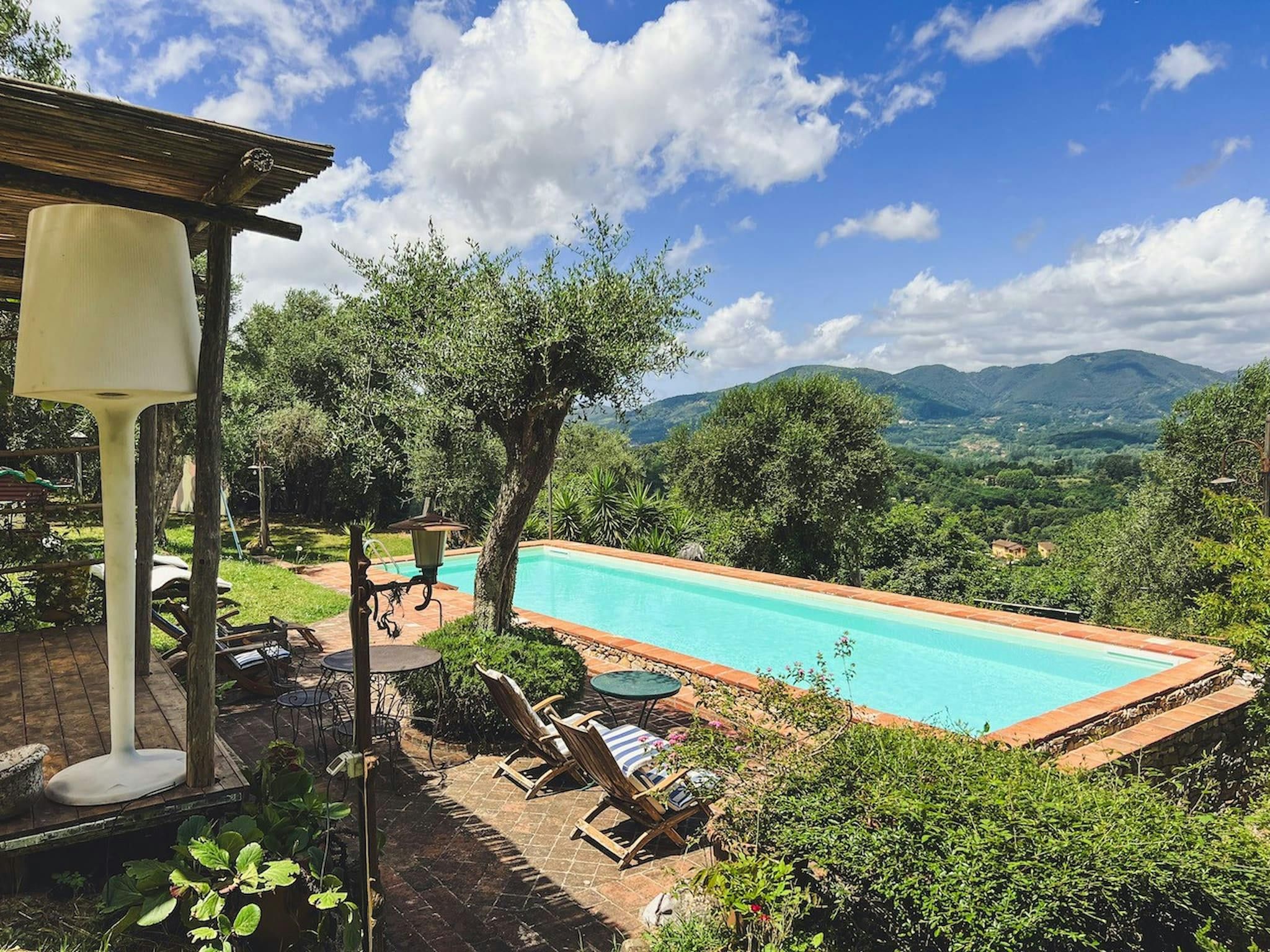 This traditional Tuscan home boasts a beautiful setting in the hills of Lucca. The historic city centre is just 6 kilometres away, but you’ll feel far removed from the hustle and bustle in this hilltop haven. The owner – who lives in the annex – is an art dealer who’s put his stamp on this home, with murals and artwork dotted throughout. This is a lived-in, rustic home, so it won’t suit those seeking a sleek, new-build look. We love the outside space, with its olive trees and swimming pool.