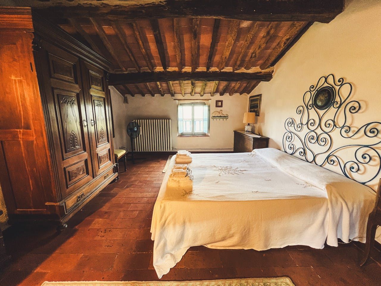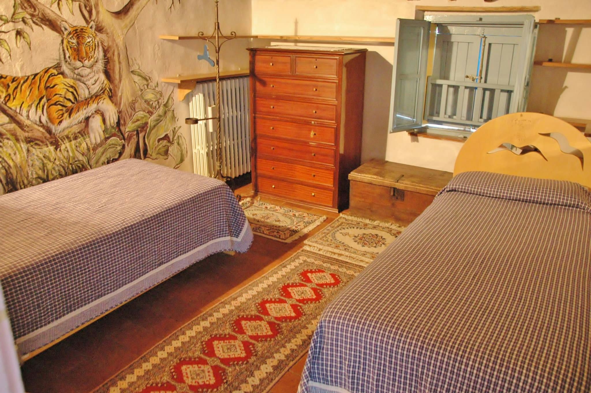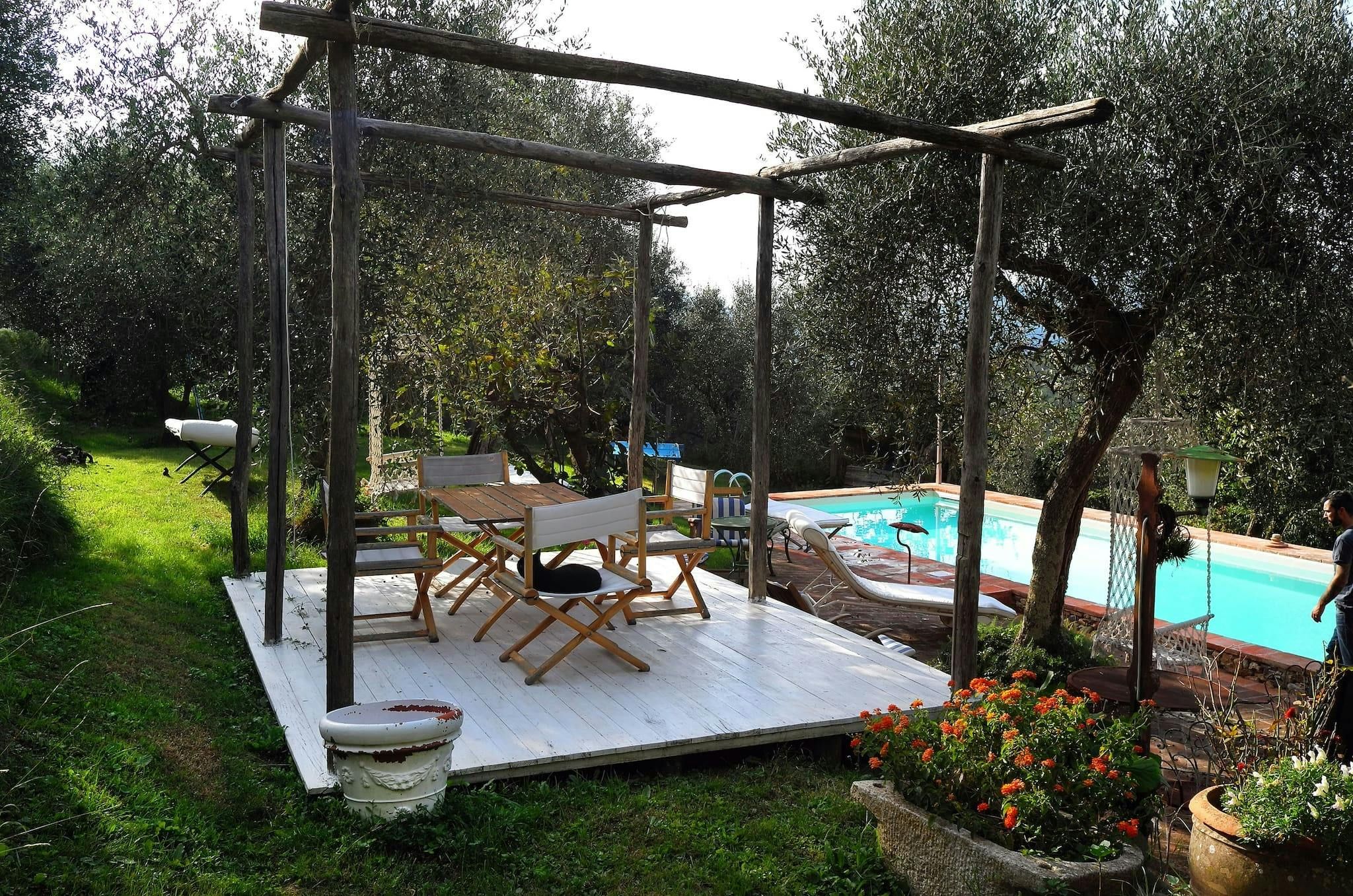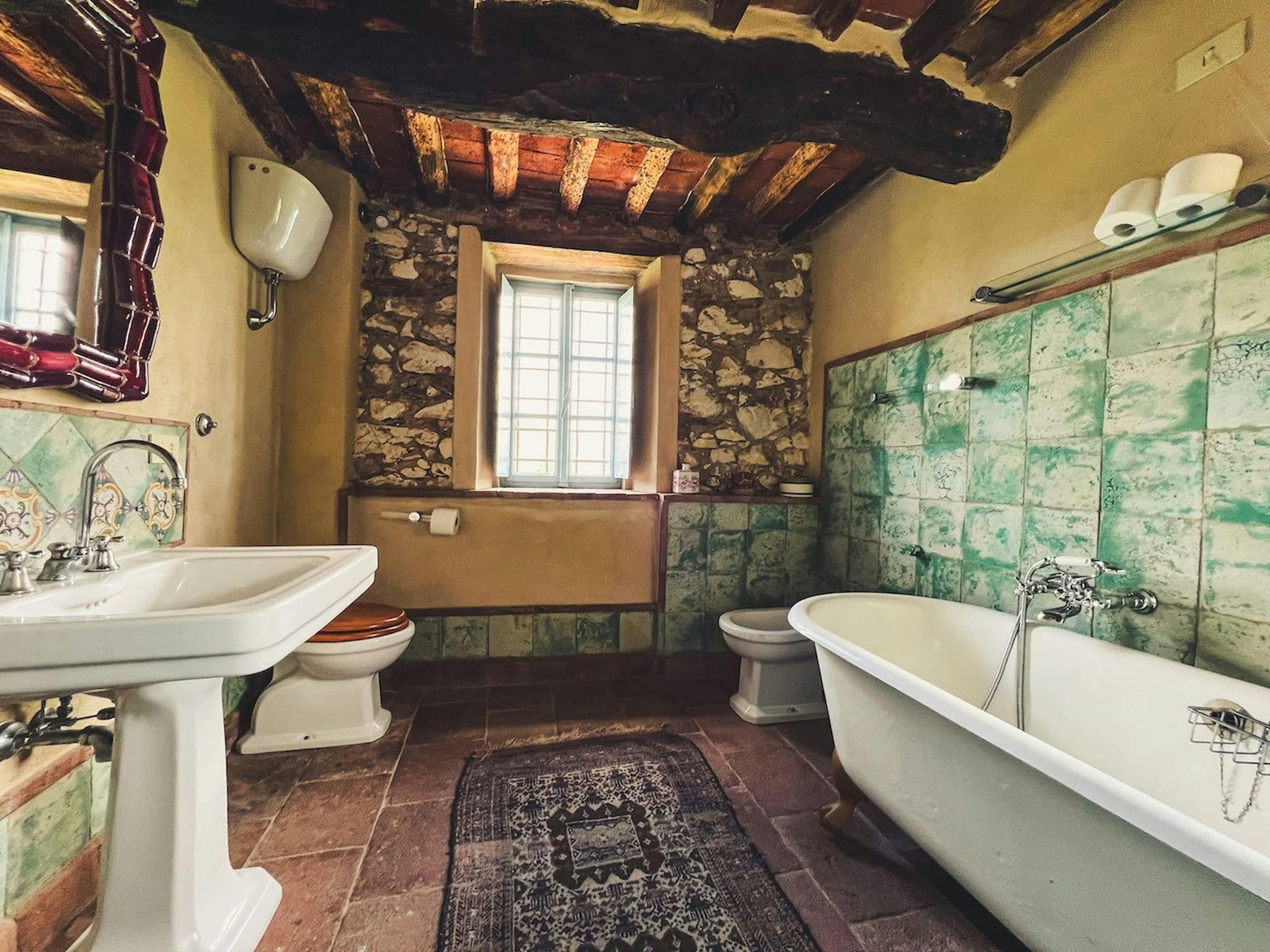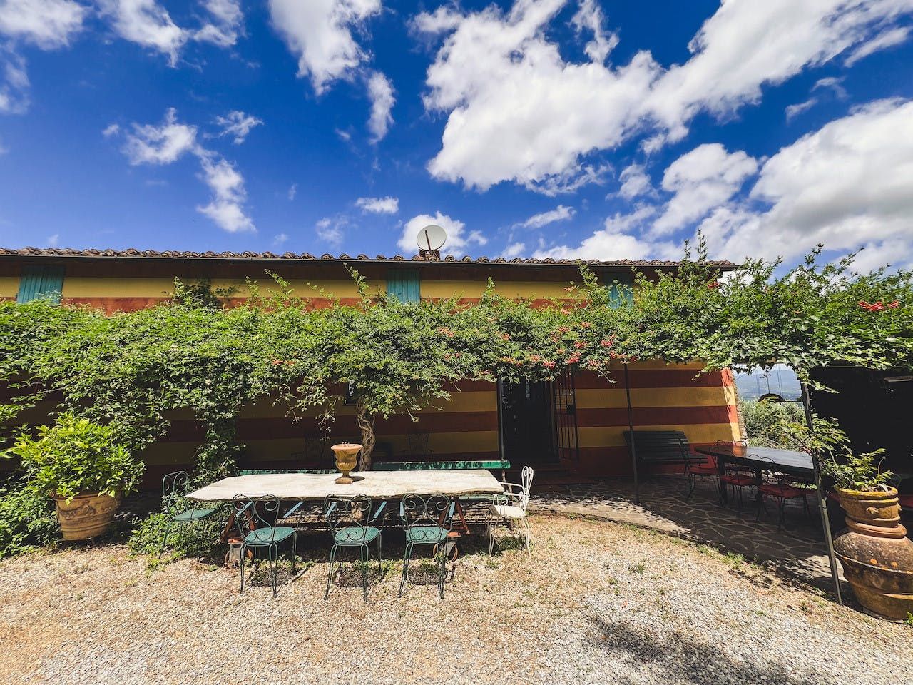 This traditional Tuscan home boasts a beautiful setting in the hills of Lucca. The historic city centre is just 6 kilometres away, but you’ll feel far removed from the hustle and bustle in this hilltop haven. The owner – who lives in the annex – is an art dealer who’s put his stamp on this home, with murals and artwork dotted throughout. This is a lived-in, rustic home, so it won’t suit those seeking a sleek, new-build look. We love the outside space, with its olive trees and swimming pool.