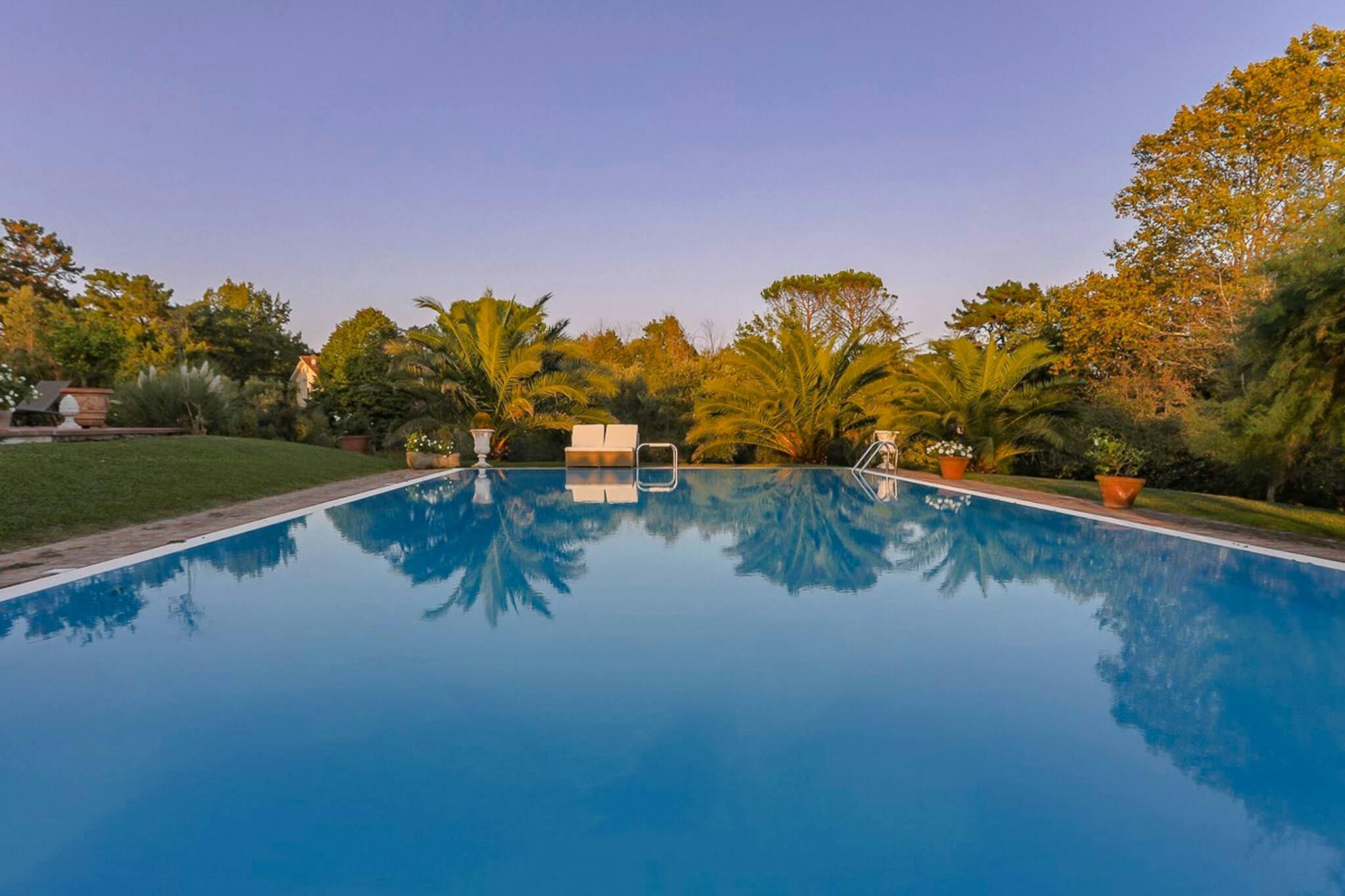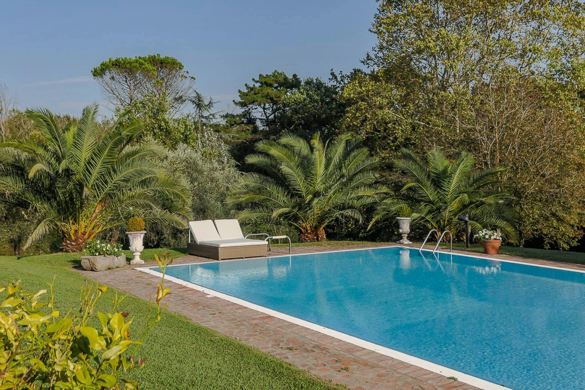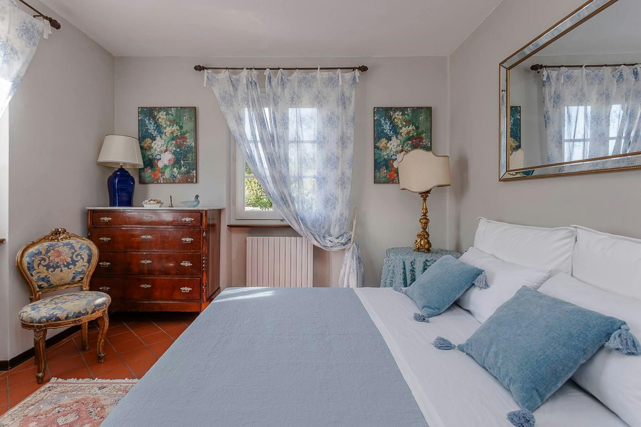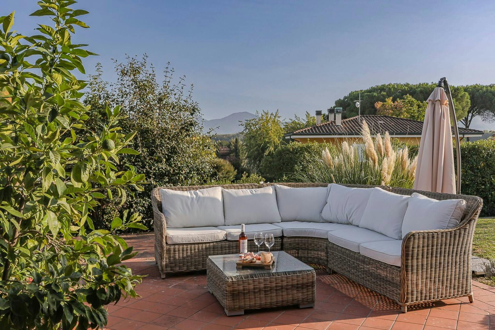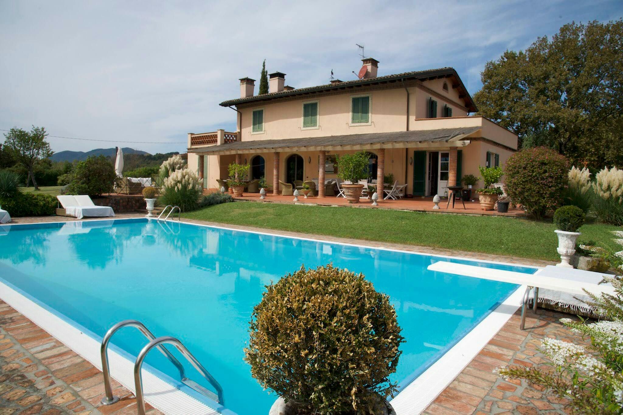 Surrounded by nature, this villa is a true escape from the hustle and bustle of daily life. While the traditional interiors may not be everyone’s cup of tea, you’ll find everything needed here for a comfortable stay – just bear in mind that as a group of nine, one person will be sleeping on a sofa bed in the fifth bedroom. Step outdoors, and you’ll find sun-kissed terraces and shaded dining spots, and the cherry on the cake – the private pool. When you’re ready to explore, drive to the historic city of Lucca where a treasure trove of Italian eateries are nestled amongst the cobbled streets.