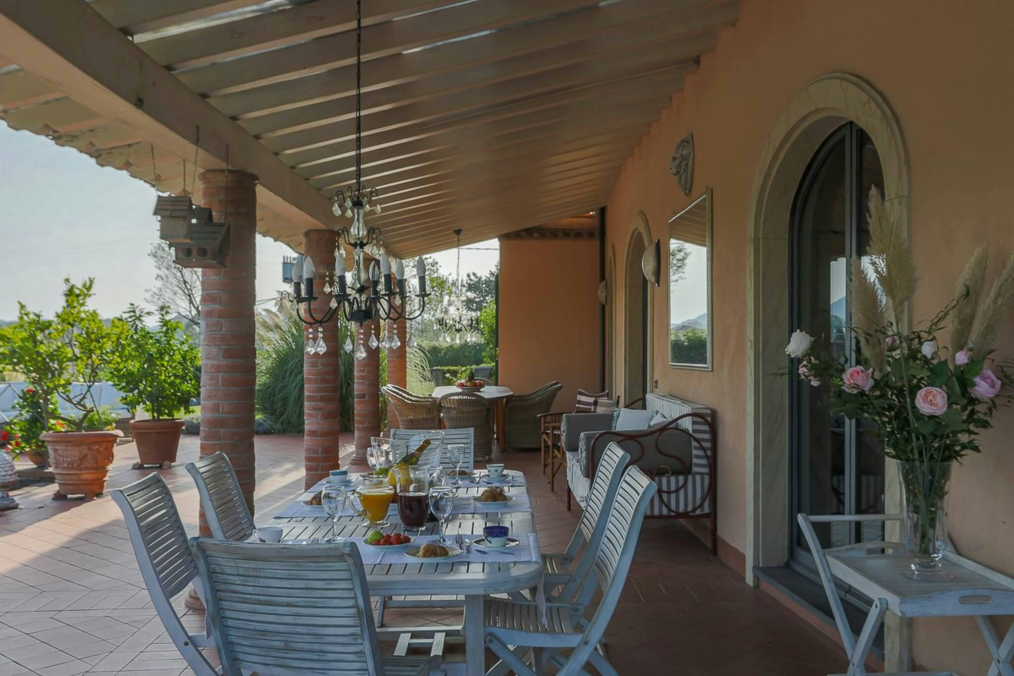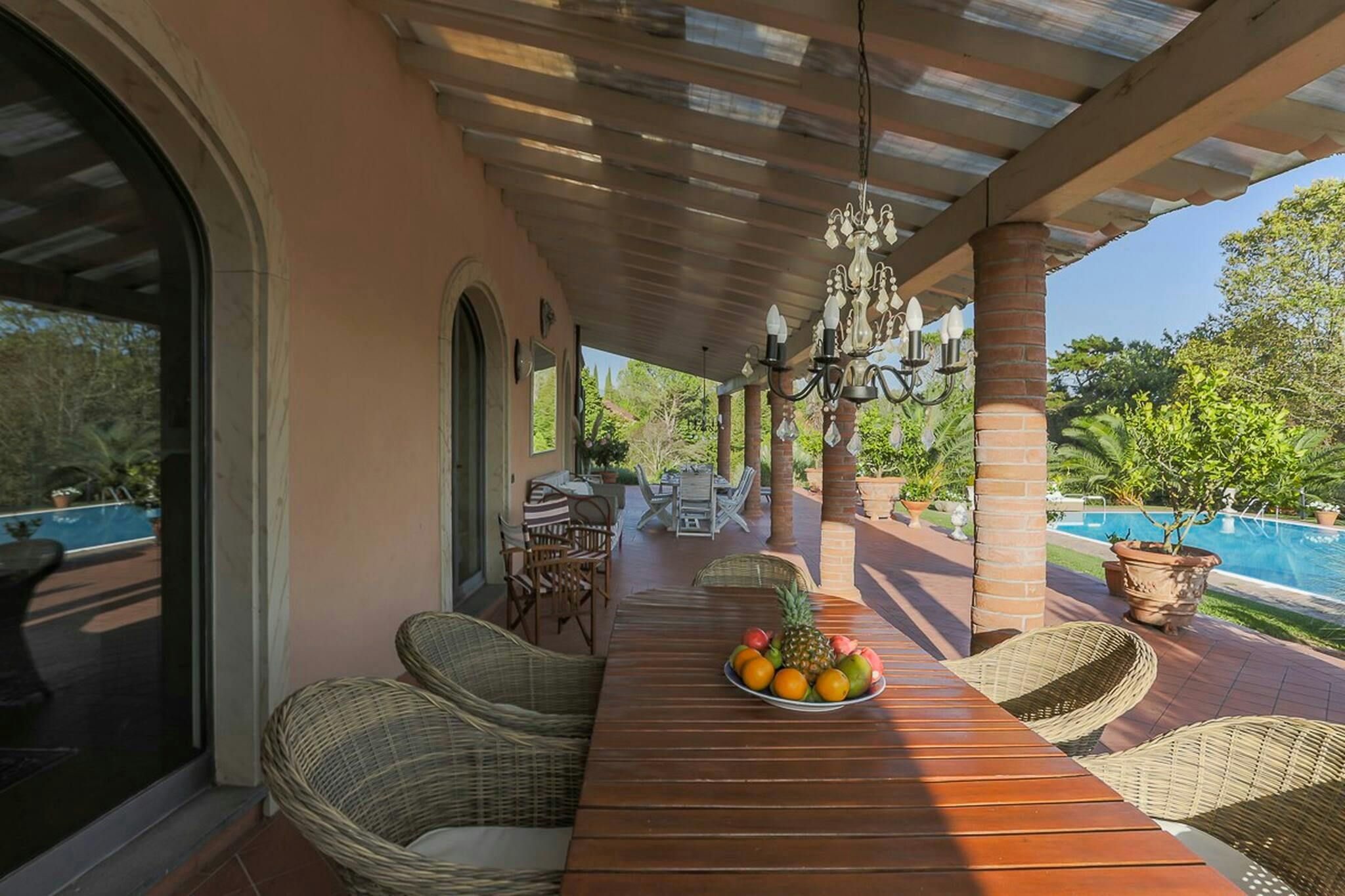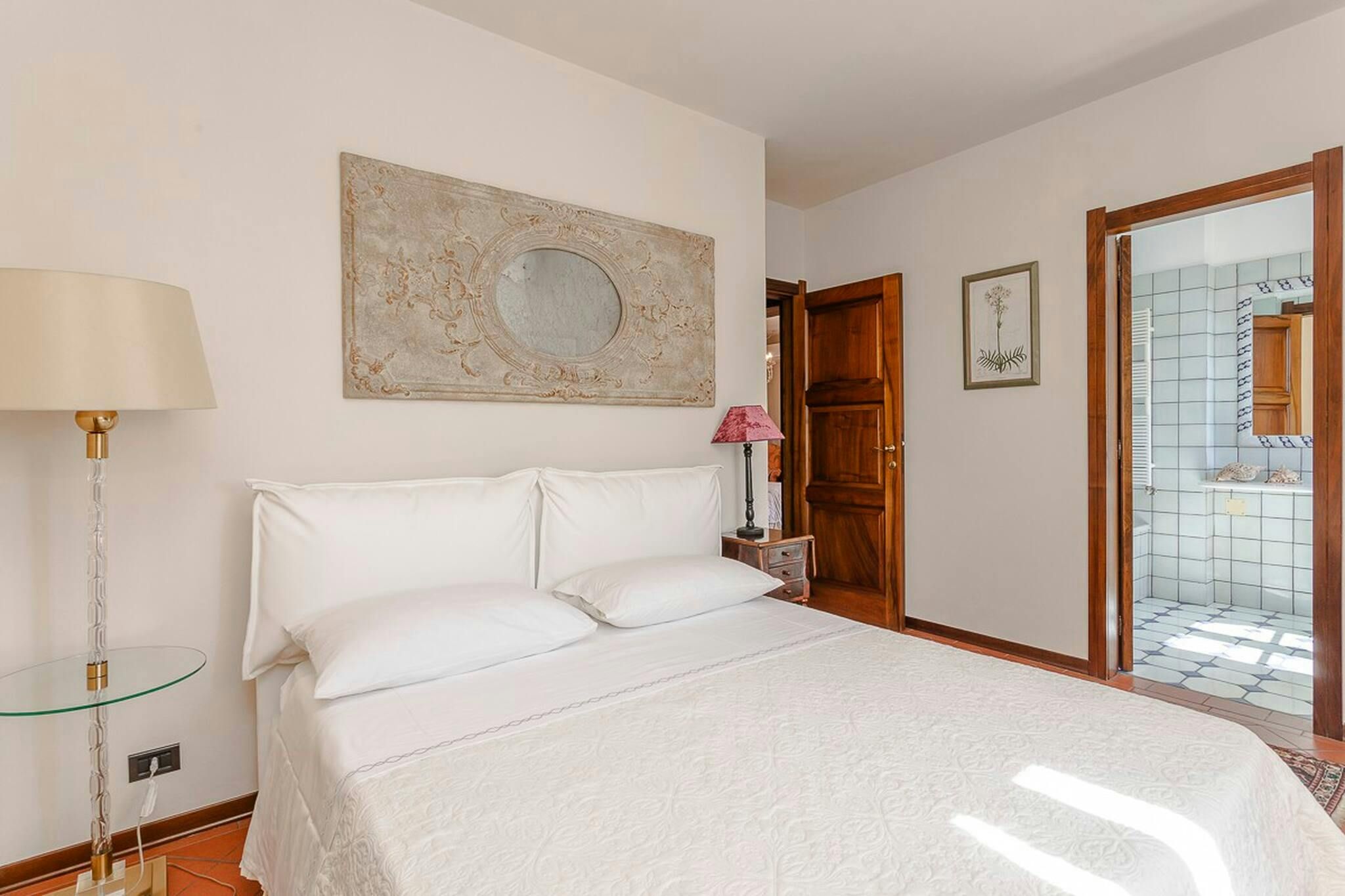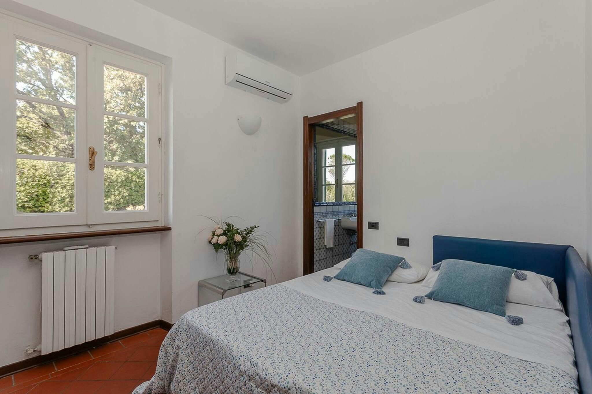 Surrounded by nature, this villa is a true escape from the hustle and bustle of daily life. While the traditional interiors may not be everyone’s cup of tea, you’ll find everything needed here for a comfortable stay – just bear in mind that as a group of nine, one person will be sleeping on a sofa bed in the fifth bedroom. Step outdoors, and you’ll find sun-kissed terraces and shaded dining spots, and the cherry on the cake – the private pool. When you’re ready to explore, drive to the historic city of Lucca where a treasure trove of Italian eateries are nestled amongst the cobbled streets.