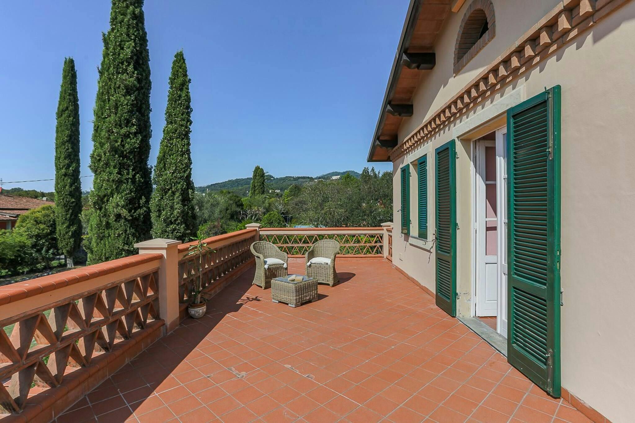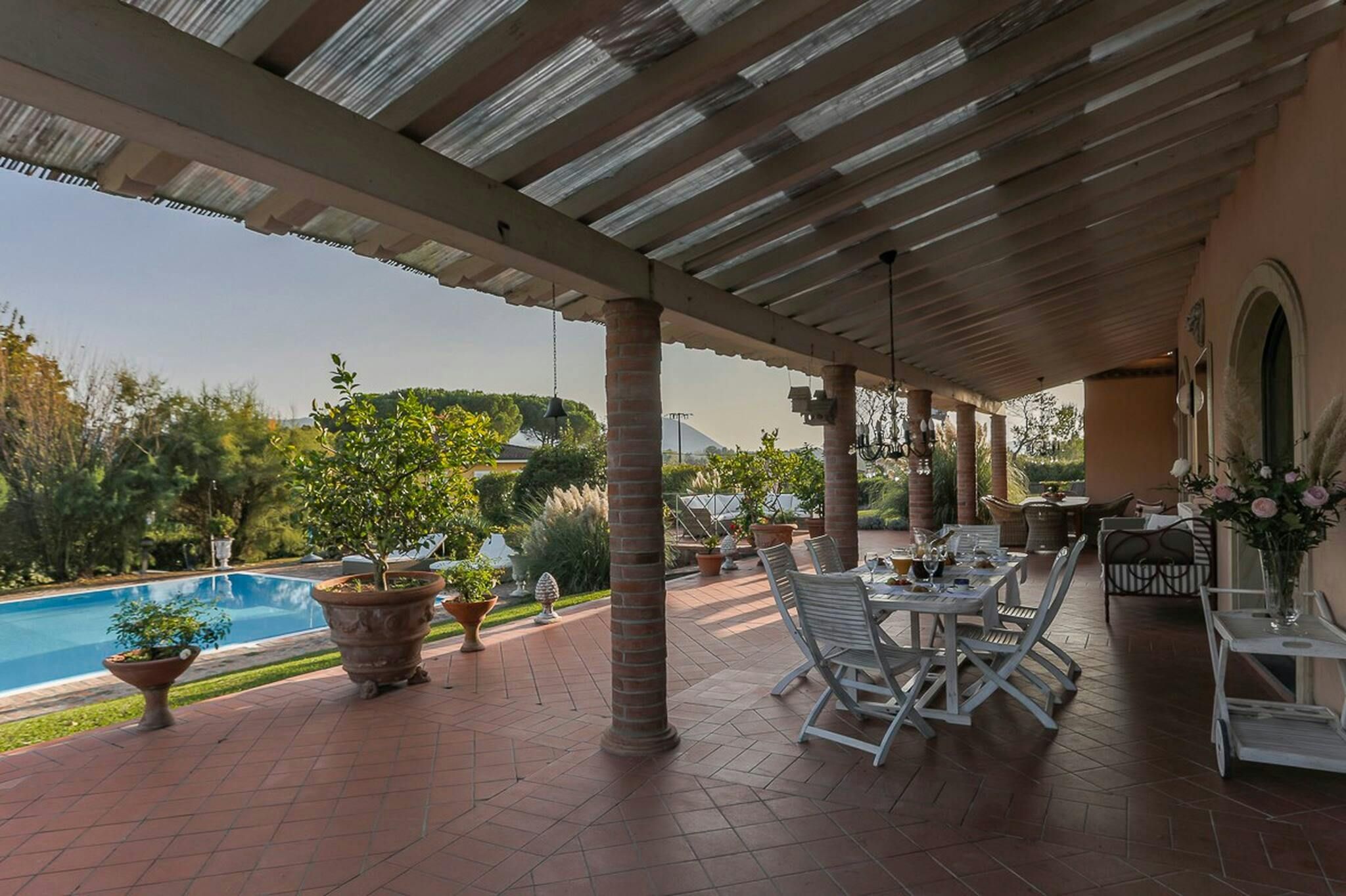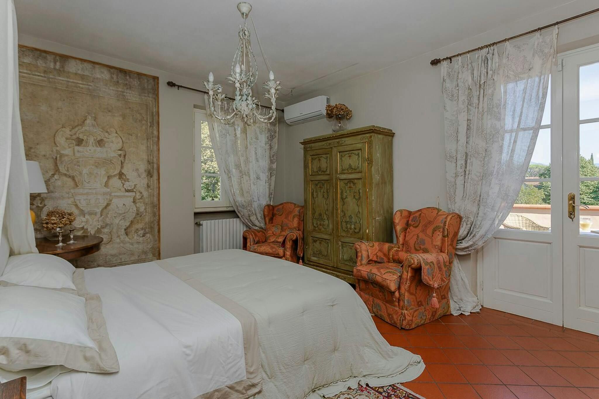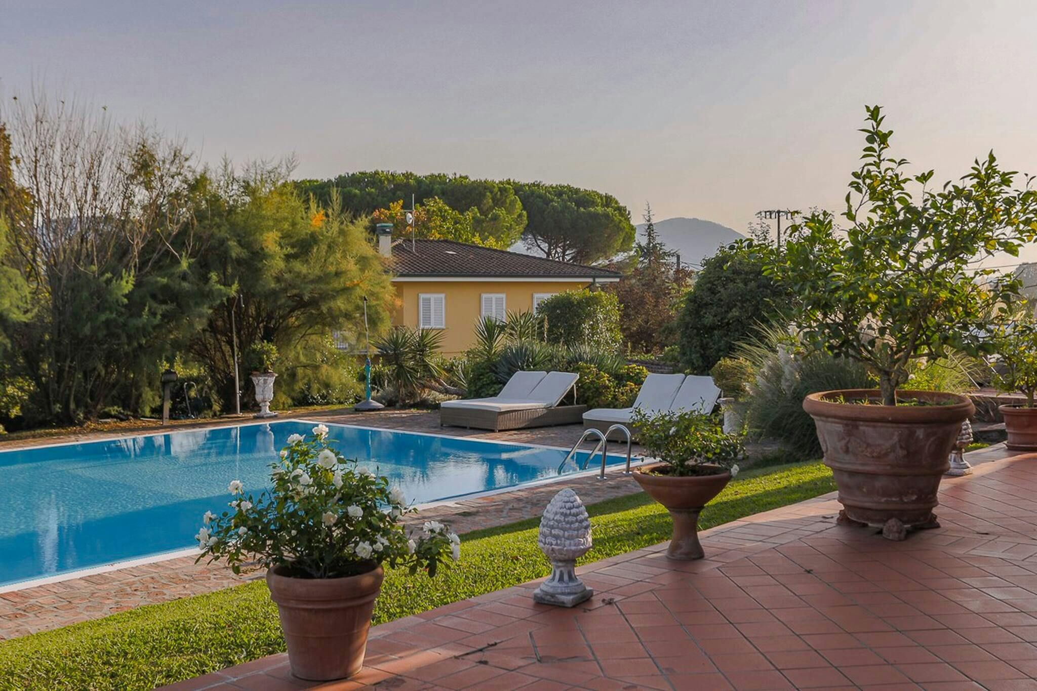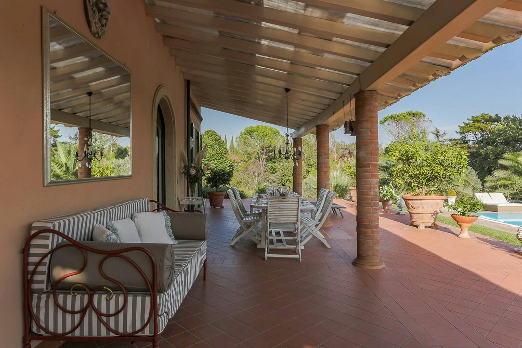 Surrounded by nature, this villa is a true escape from the hustle and bustle of daily life. While the traditional interiors may not be everyone’s cup of tea, you’ll find everything needed here for a comfortable stay – just bear in mind that as a group of nine, one person will be sleeping on a sofa bed in the fifth bedroom. Step outdoors, and you’ll find sun-kissed terraces and shaded dining spots, and the cherry on the cake – the private pool. When you’re ready to explore, drive to the historic city of Lucca where a treasure trove of Italian eateries are nestled amongst the cobbled streets.