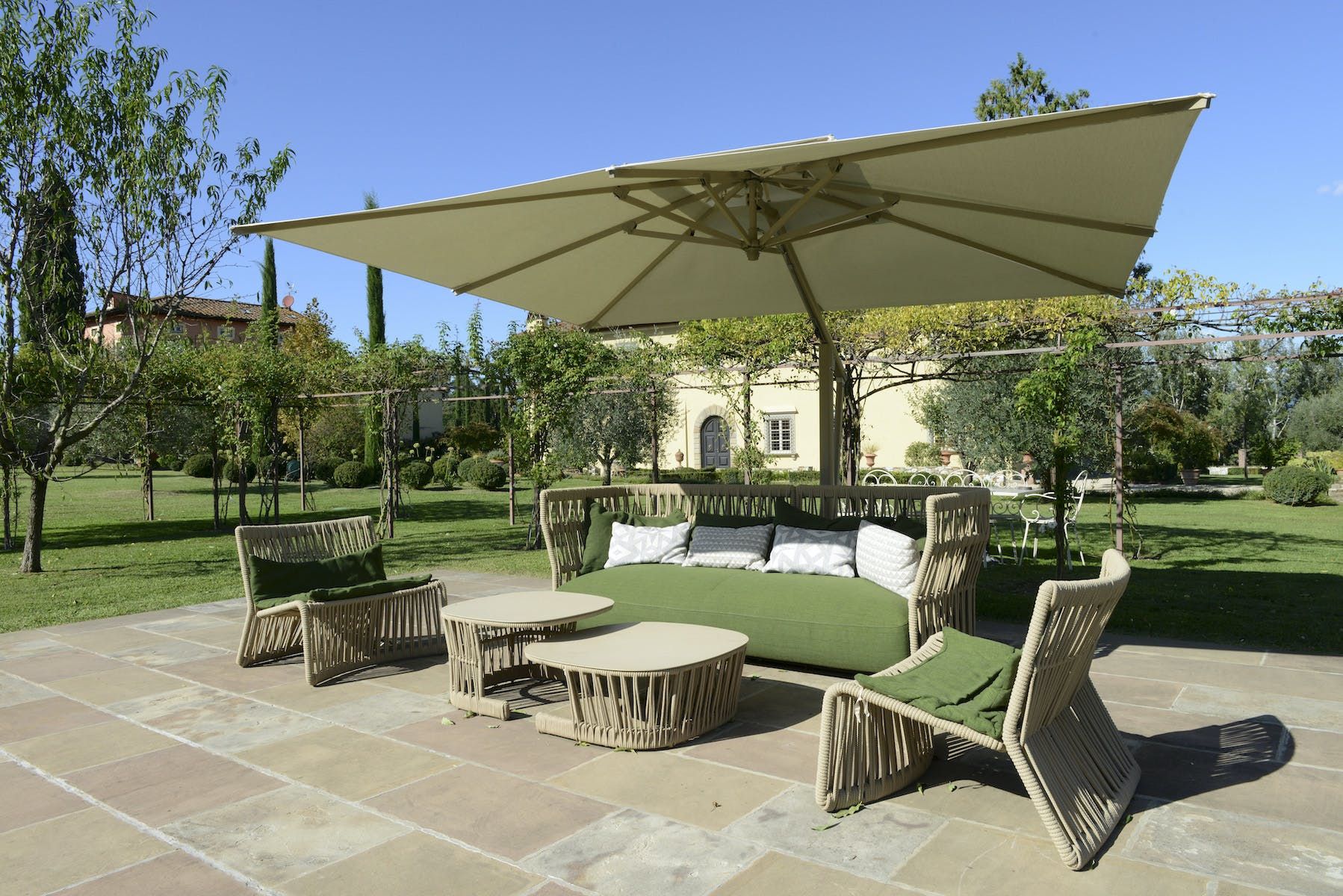 If you’re celebrating something special or simply looking for a huge, luxury home to gather together in the beautiful Tuscan countryside (ten minutes from Lucca), this is the spot for you. Dating back to the 17th century, you can feel the history of this home in the frescoed ballroom (seating up to 50 people for dinner), lounges set around ancient fireplaces and the shining farmhouse-style kitchen. Bedrooms are spread across the main villa, a converted hunting lodge and former stables in the grounds. Speaking of, the rose gardens, herb gardens and vine-twisted pergolas seem to go on forever. Apart from an inviting outdoor swimming pool, the crowning glory is the dedicated spa with its Turkish bath, sauna and hydrotherapy centre.