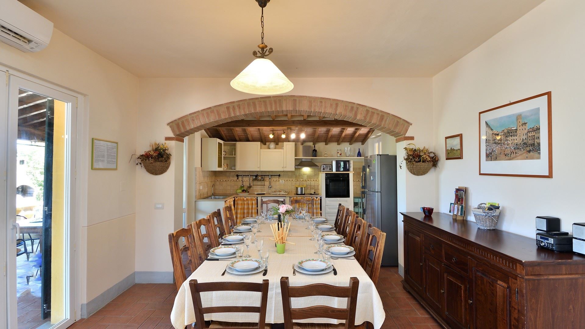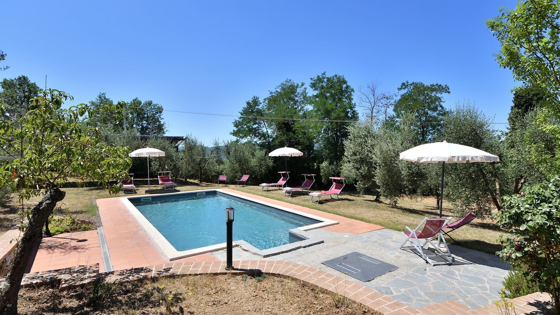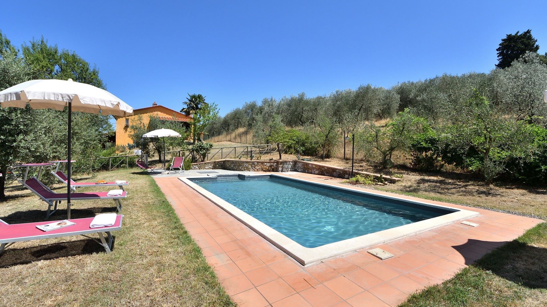 Experience the timeless magic of Tuscany with a stay in this traditional home. Set amidst olive groves, the garden is perfect for relaxing days at home. There’s a swimming pool for refreshing dips and a sheltered terrace for drinks and alfresco dining. Inside, the rooms are simple and well suited to families. There’s also a ground-floor bedroom for guests with reduced mobility. And when it comes to explorations further afield, it’s just a short drive or walk to the pretty medieval town of Lucignano, while Montepulciano, Cortona and Siena are also within driving distance.