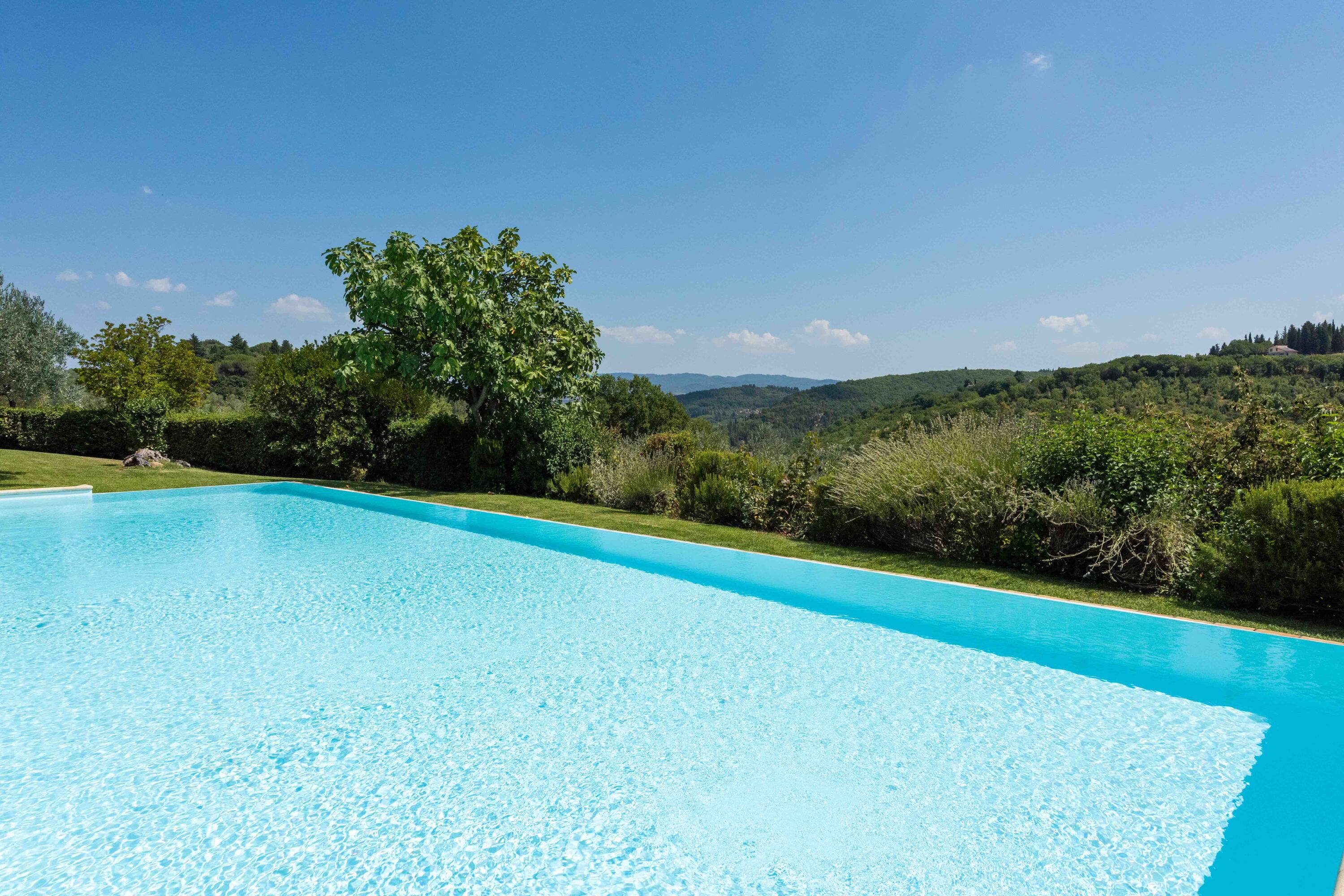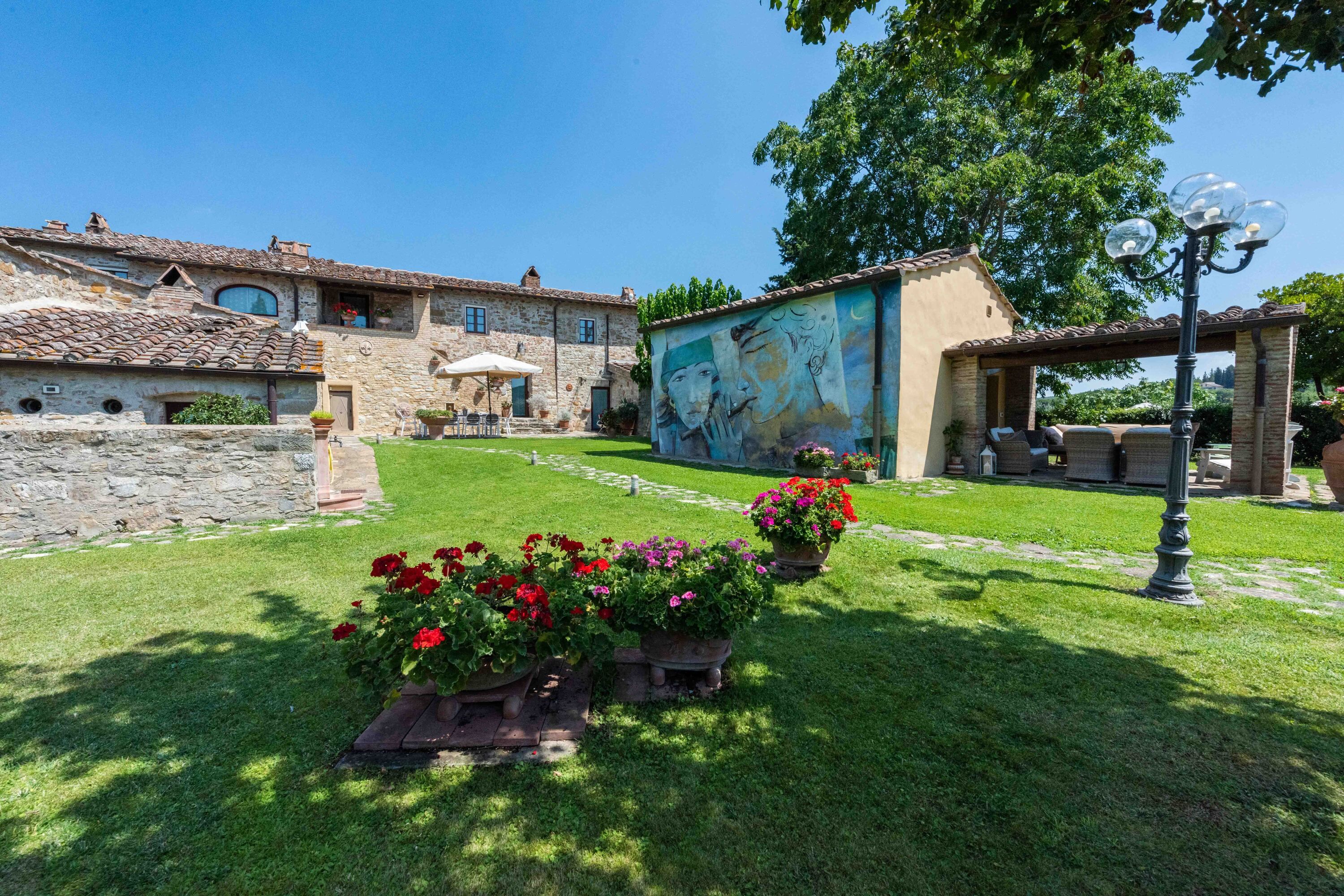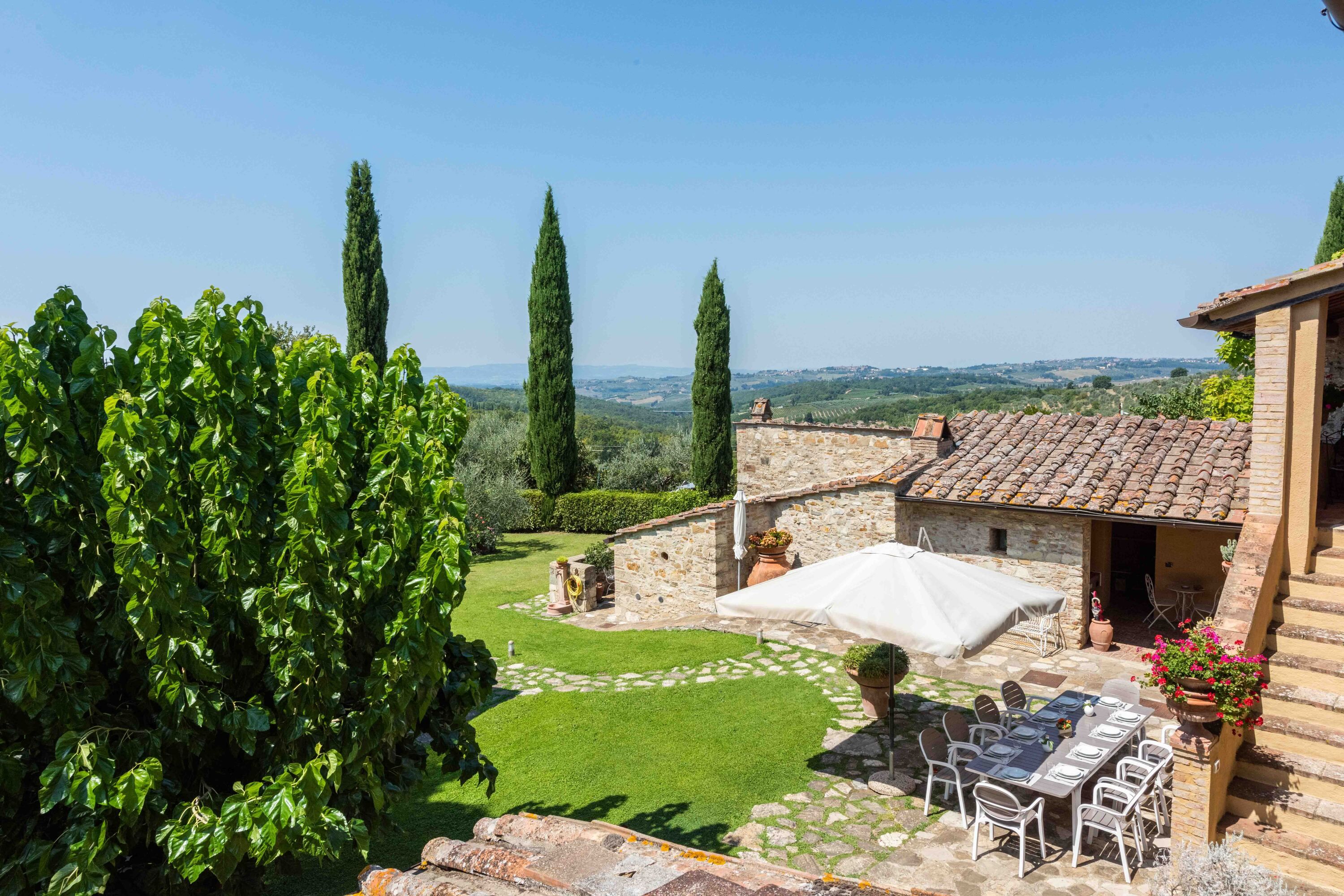 This charming villa sits in a panoramic position in the Chianti hills, while being conveniently close to Poggio's medieval village of San Donato. As well as the main building, there's also a separate apartment and two annexes, so it's ideal for groups wanting to spread out. Inside, the interiors may feel a little dated in parts, but it's a home that's full of character. The real highlight is the infinity pool, surrounded by picturesque gardens where you can truly switch off. Wine connoisseurs will also love sipping premium wines down in the wine cellar. Who needs to go out when home is this good?