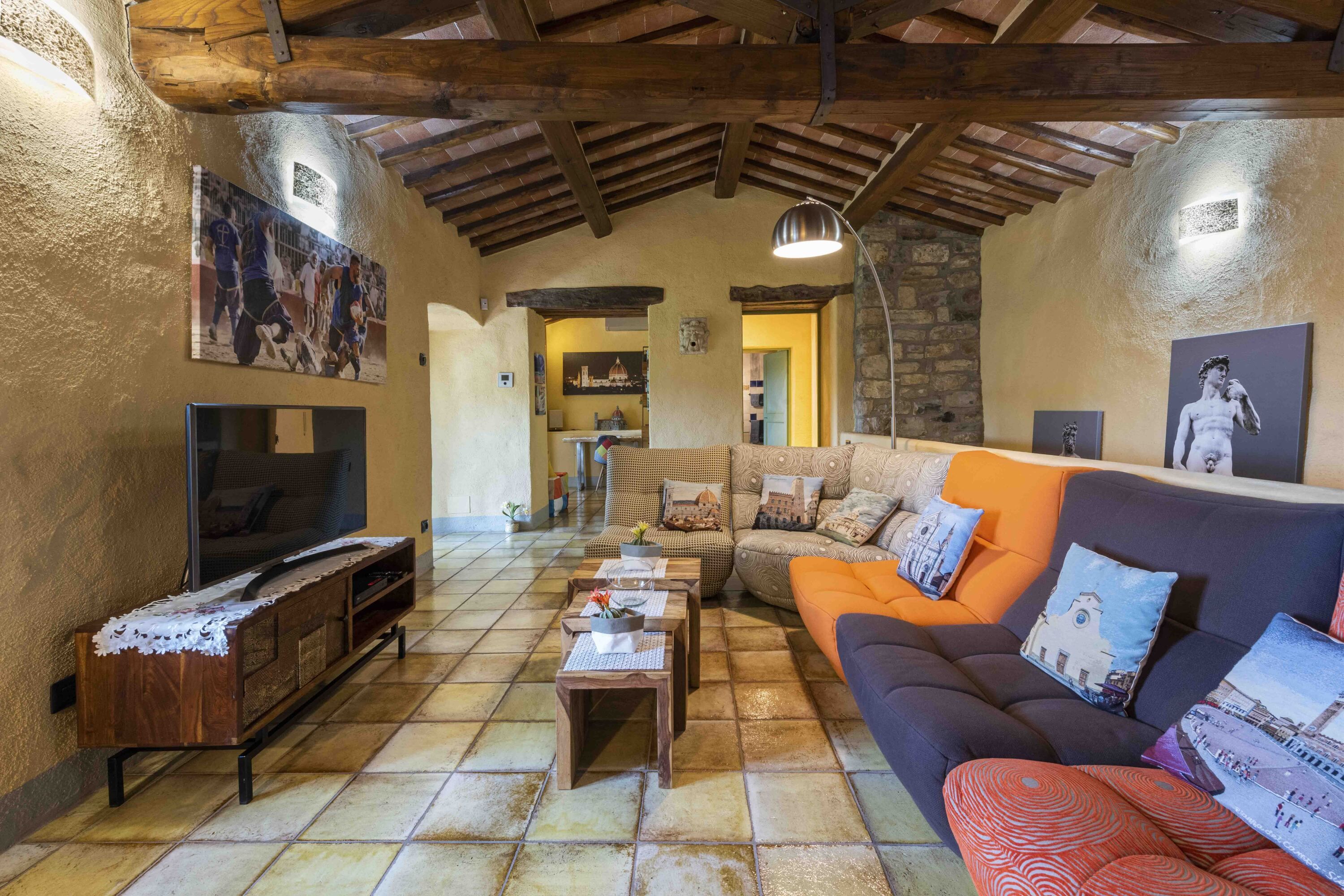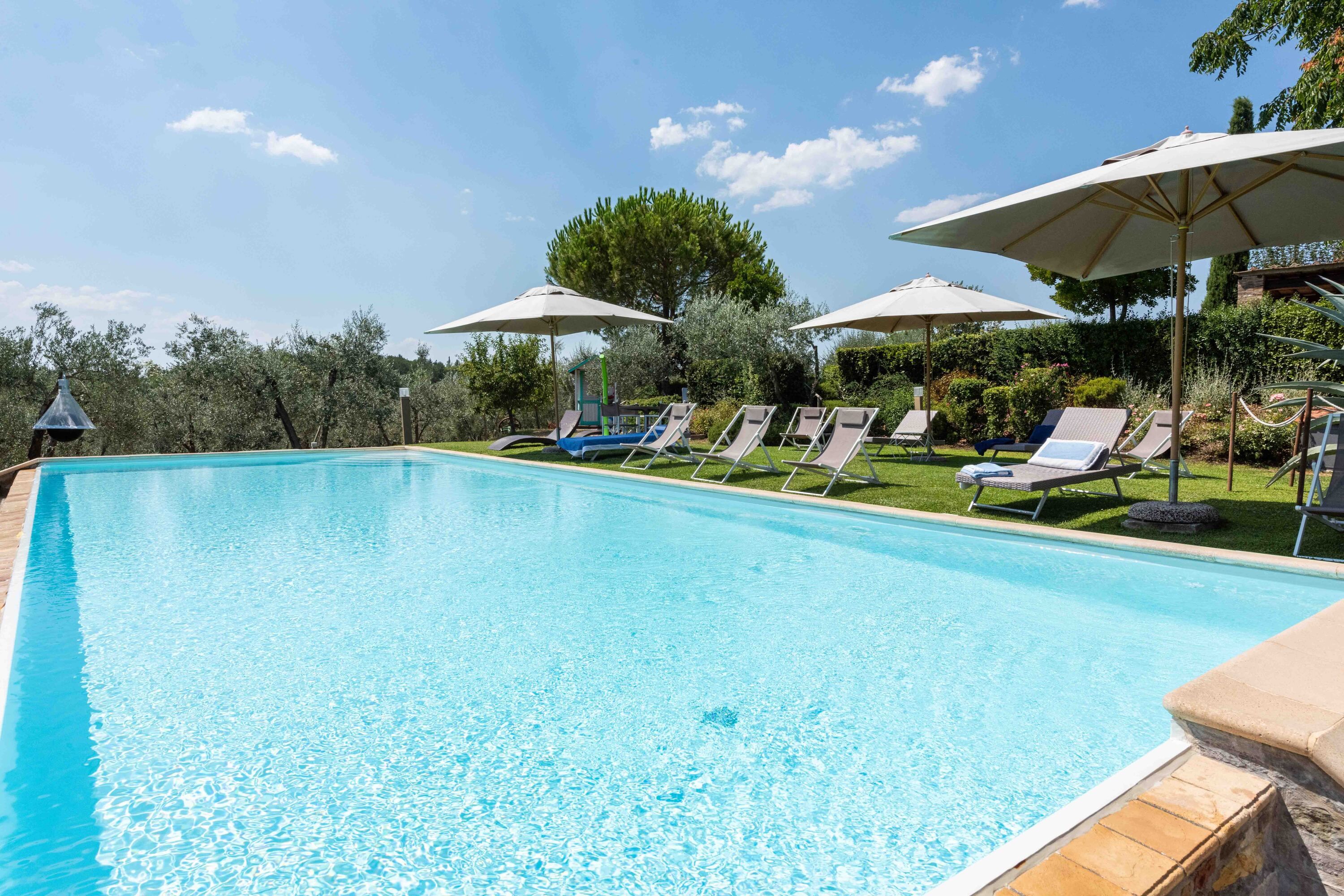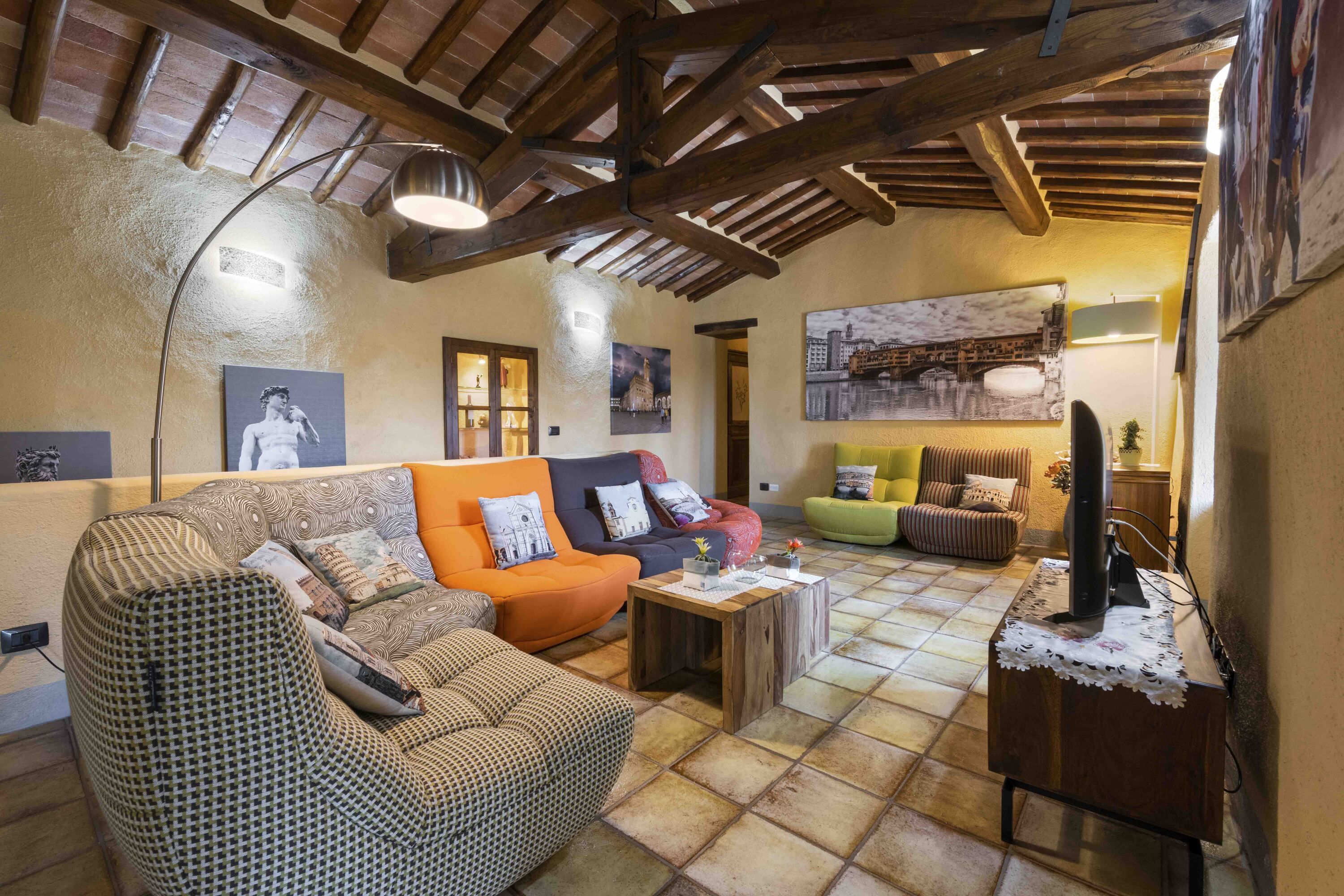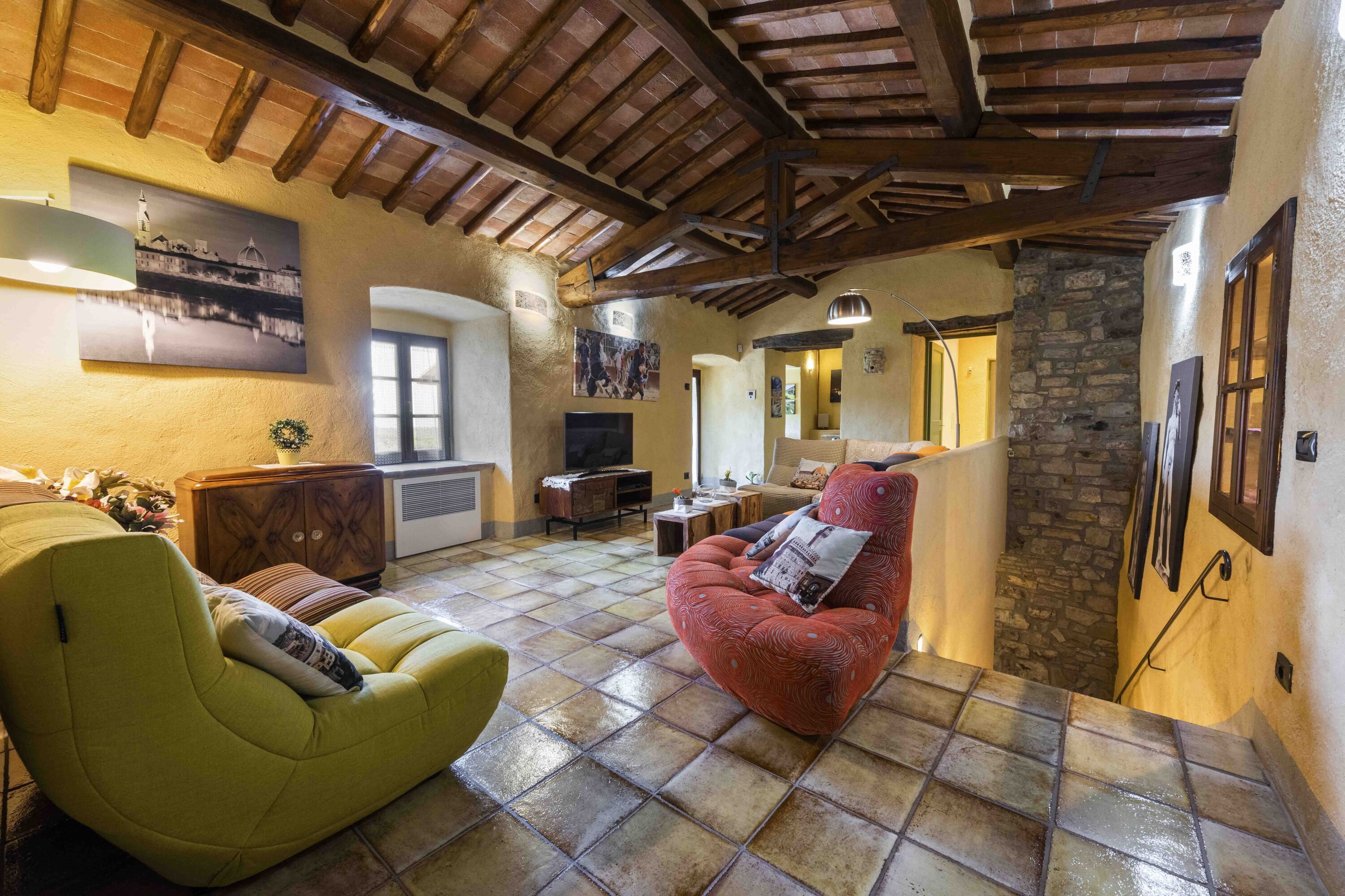 This charming villa sits in a panoramic position in the Chianti hills, while being conveniently close to Poggio's medieval village of San Donato. As well as the main building, there's also a separate apartment and two annexes, so it's ideal for groups wanting to spread out. Inside, the interiors may feel a little dated in parts, but it's a home that's full of character. The real highlight is the infinity pool, surrounded by picturesque gardens where you can truly switch off. Wine connoisseurs will also love sipping premium wines down in the wine cellar. Who needs to go out when home is this good?