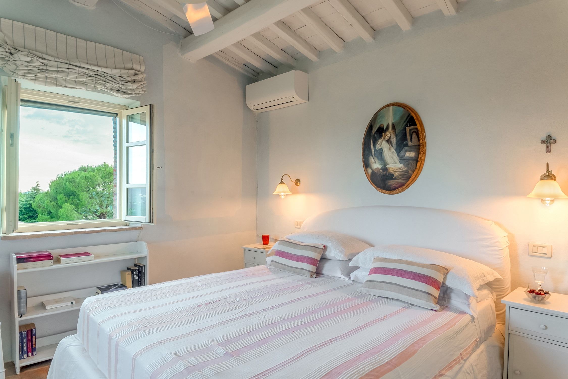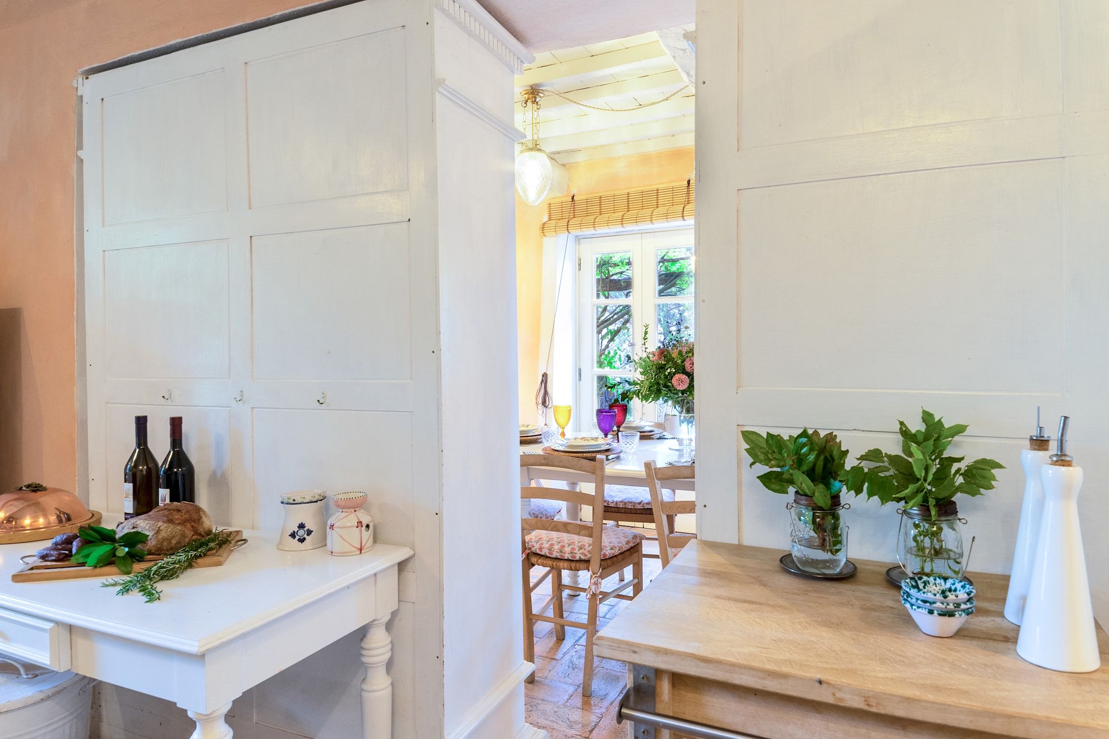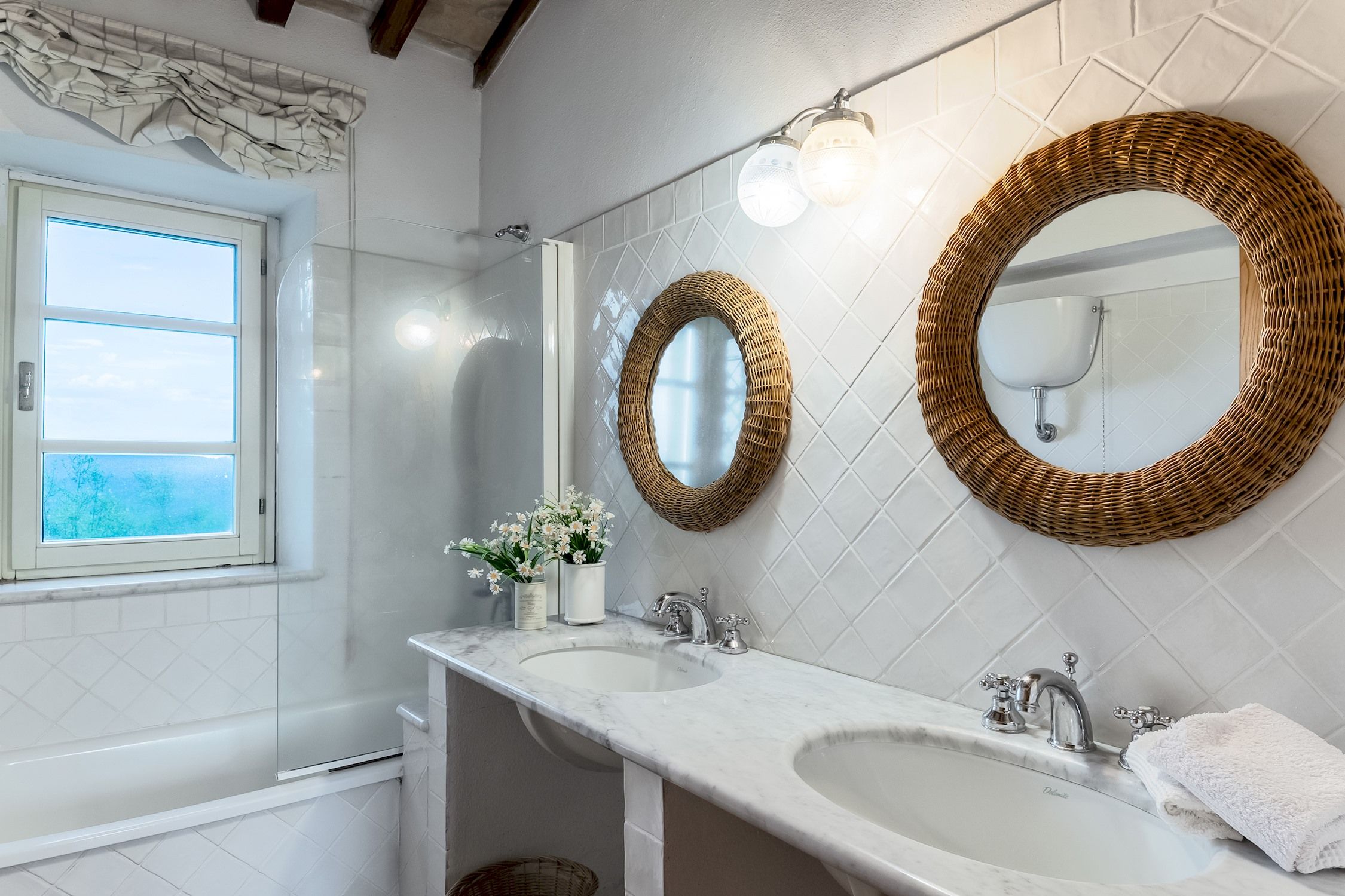 Romantic and whimsical, this beautifully renovated 19th-century farmhouse is nestled amid the rolling hills, olive groves, and vineyards of the Tuscan countryside. A wisteria- and rose-covered pergola frames the terrace and makes for a stunning spot for an alfresco meal, day or night, and the private swimming pool is perfectly positioned for enjoying the views. The house has been renovated to incorporate local craftsmanship, blending antique terracotta floors and chestnut ceiling beams with pastel hues – it’s pretty and comfortable. The thermal springs of Terme di Saturnia are a short drive away, and you can reach the coast in fifty minutes.