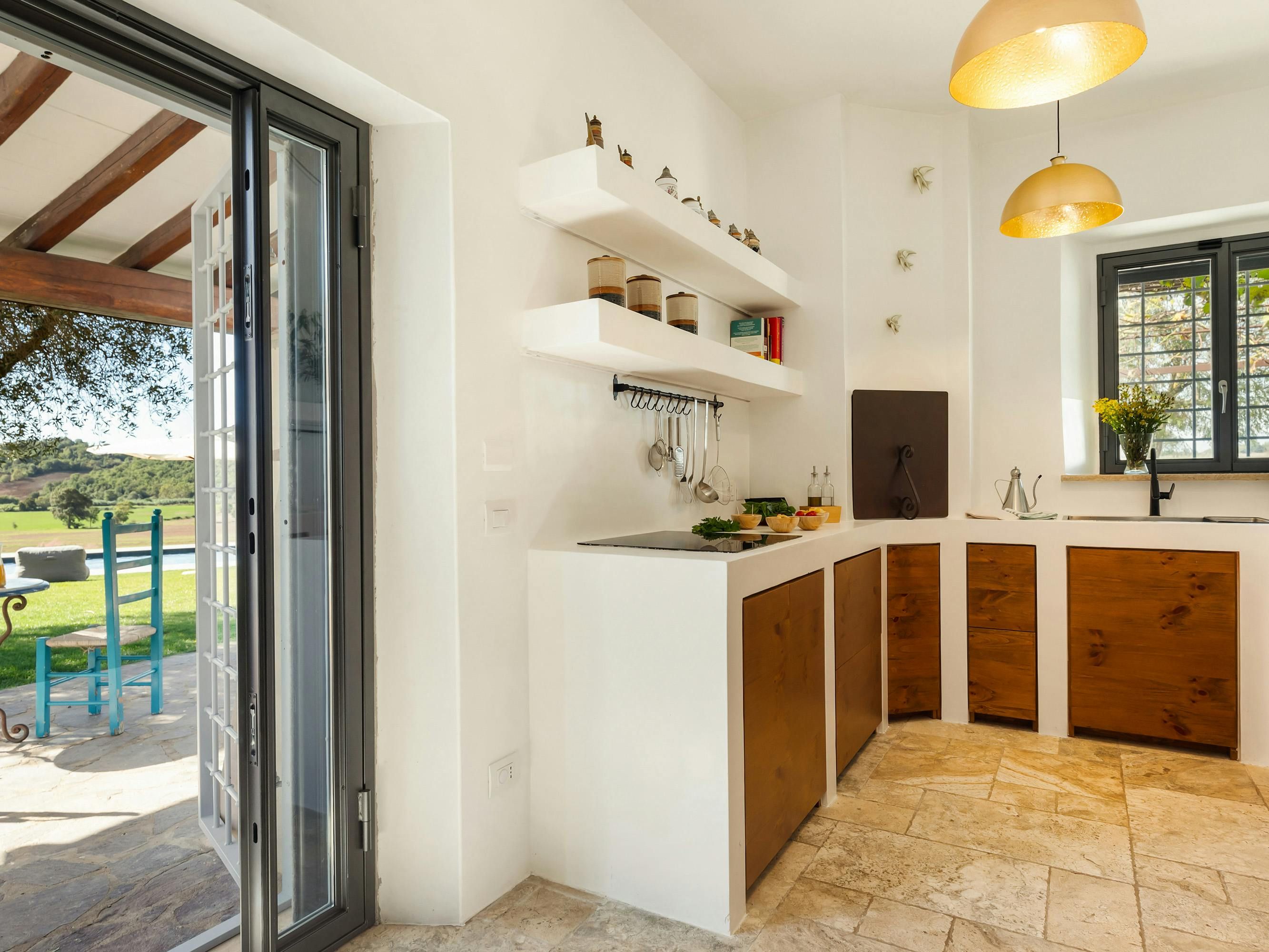 A haven of calm, this beautiful villa seamlessly blends traditional Tuscan charm with modern comforts. The renovated retreat sits in Tuscan Maremma, offering far-reaching rural views from the well-tended garden. Sit amidst cypresses, eucalyptus, and olive trees to soak up the sun, or dine alfresco in the shade of the bamboo pergola – pick fresh veg in the organic garden. The outside space, with a private pool, is delightful, but the villa is equally special. Admire contemporary furnishings alongside exposed chestnut beams and handcrafted travertine floors in this bright, welcoming home.