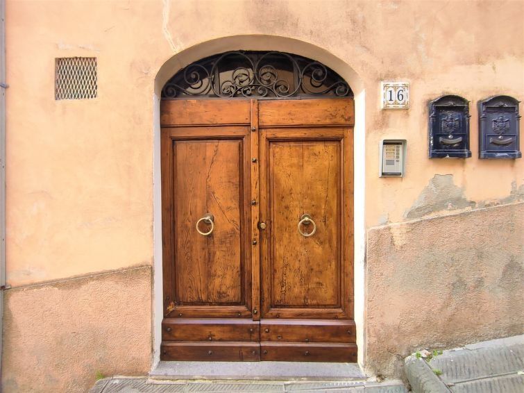 "Casa dell´Arco", 4-room apartment 85 m2, on the ground floor. Fully renovated, comfortable and cosy furnishings: living/dining room with dining table and TV. Exit to the balcony. Living room with open-hearth fireplace (only for decoration), dining table and TV. 1 large double bedroom.