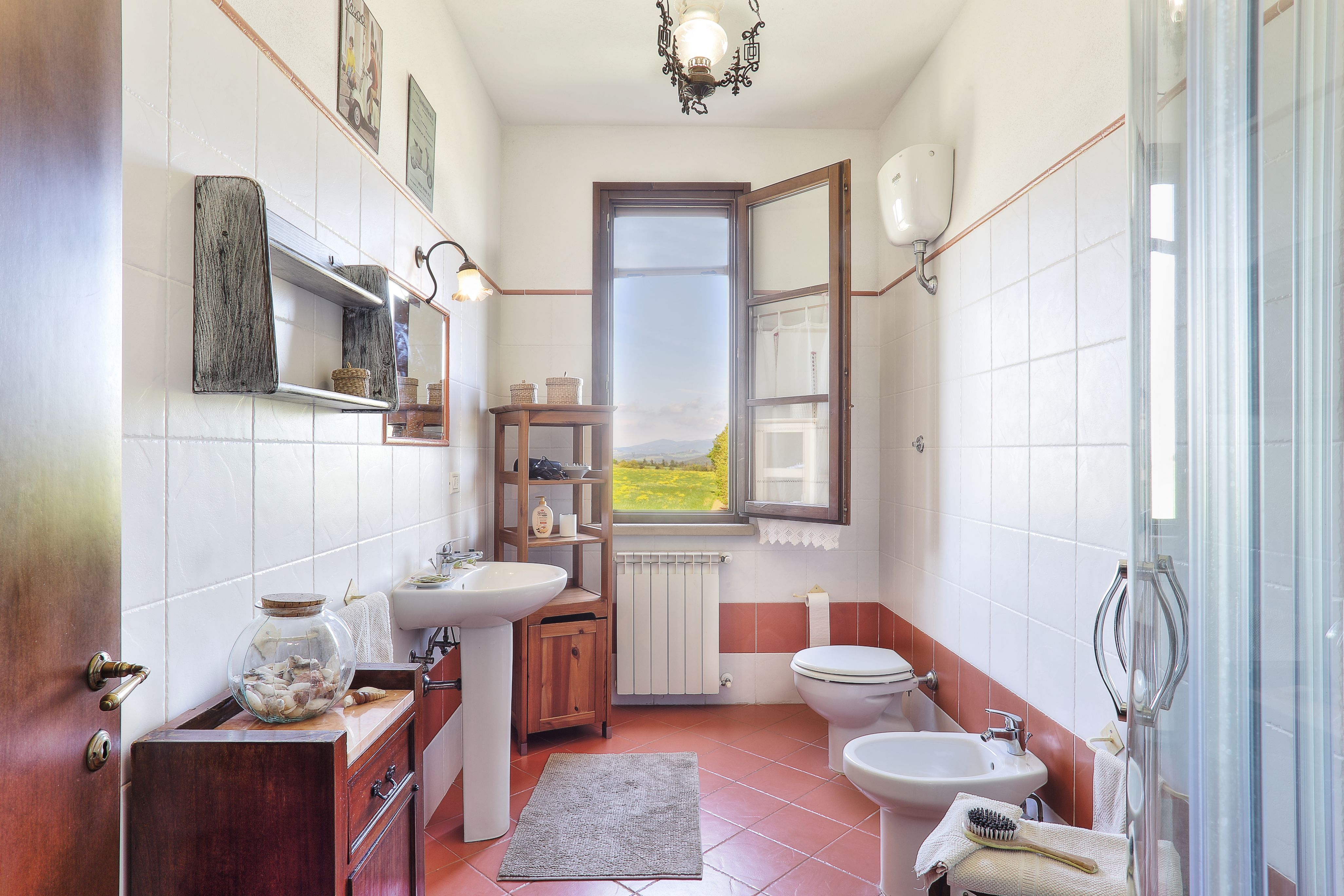 This pastoral home is perfectly placed to immerse yourself into the rural Tuscan lifestyle. It's part of a large farm and is surrounded by vineyards, olive trees and sprawling hillside. You're welcome to sample wines, try the local produce and feel part of the Tuscany culture.