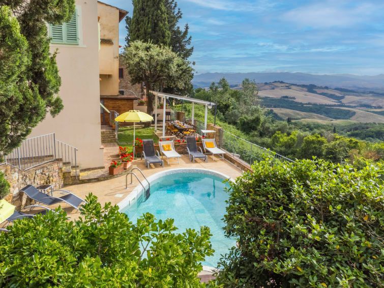 "Antica Pietra", 9-room farmhouse 210 m2 on 3 levels. Spacious, tasteful and cosy furnishings: living room with open-hearth fireplace (only for decoration), TV (flat screen), air conditioning. Exit to the garden, to the swimming pool. 1 room with 1 bed (80 cm), 1 double bed and air conditioning.