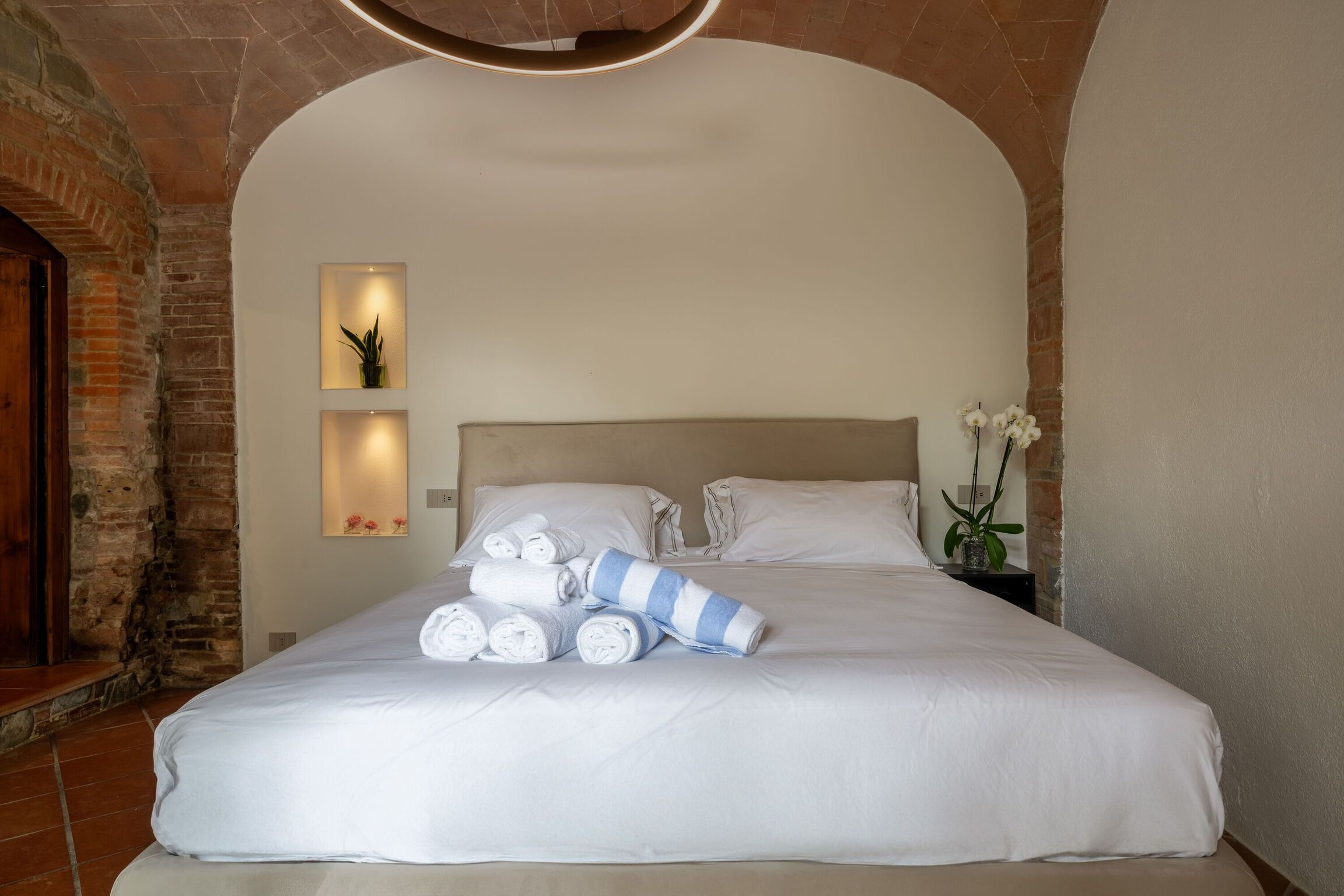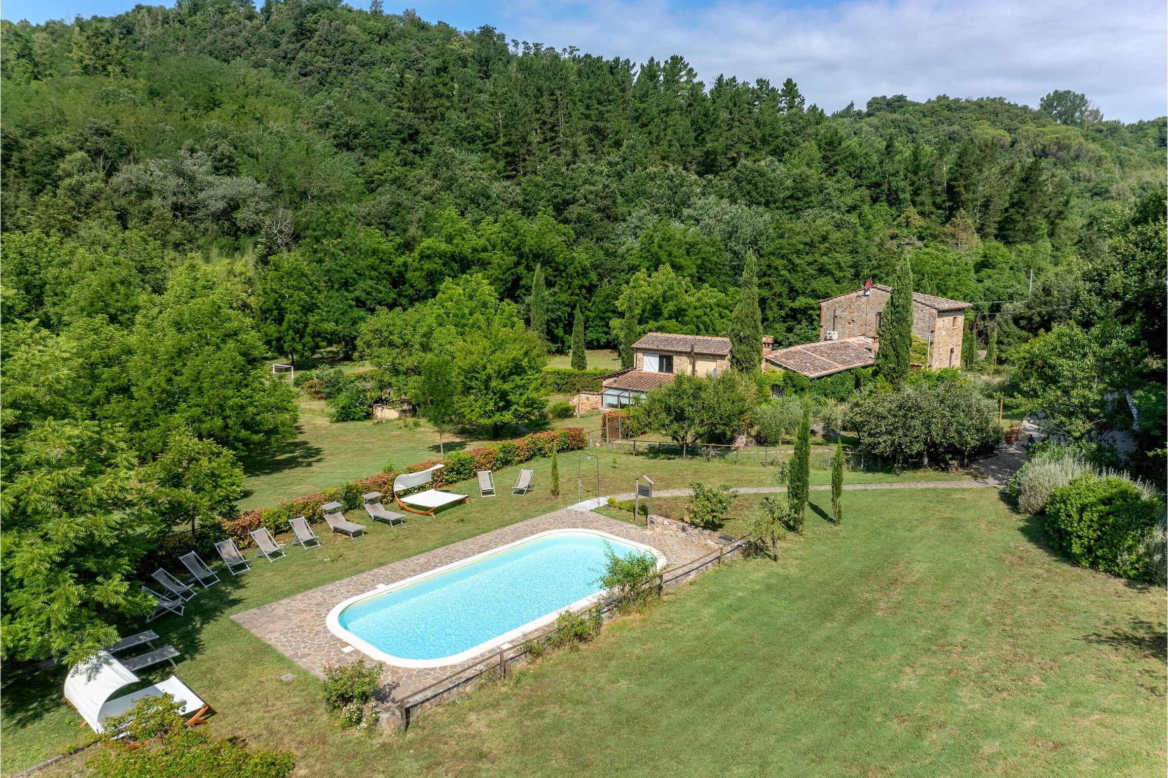 This charming stone house used to be a mill, so if you're looking for somewhere with a bit of history, this might just be the place. It's surrounded by land with gardens, a football field, swings and a private pool. With a tranquil stream running around the exterior of the home, you'll feel truly connected to nature. The home is just outside Montaione, where you'll find a range of authentic bars and restaurants. After a day of exploring Tuscany's medieval villages, local vineyards and stunning hiking routes, head home and fire up the pizza oven for an authentic Italian dinner.