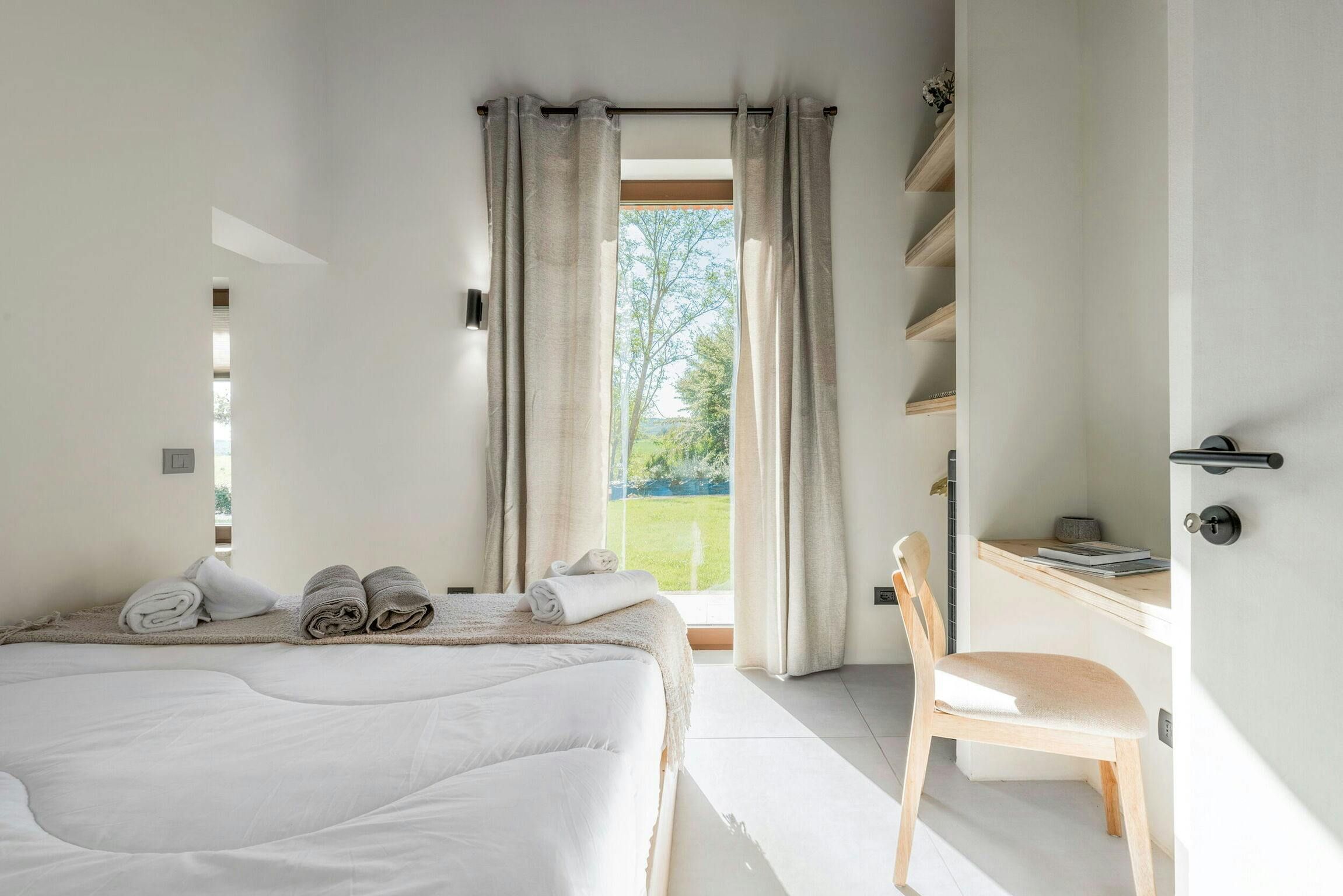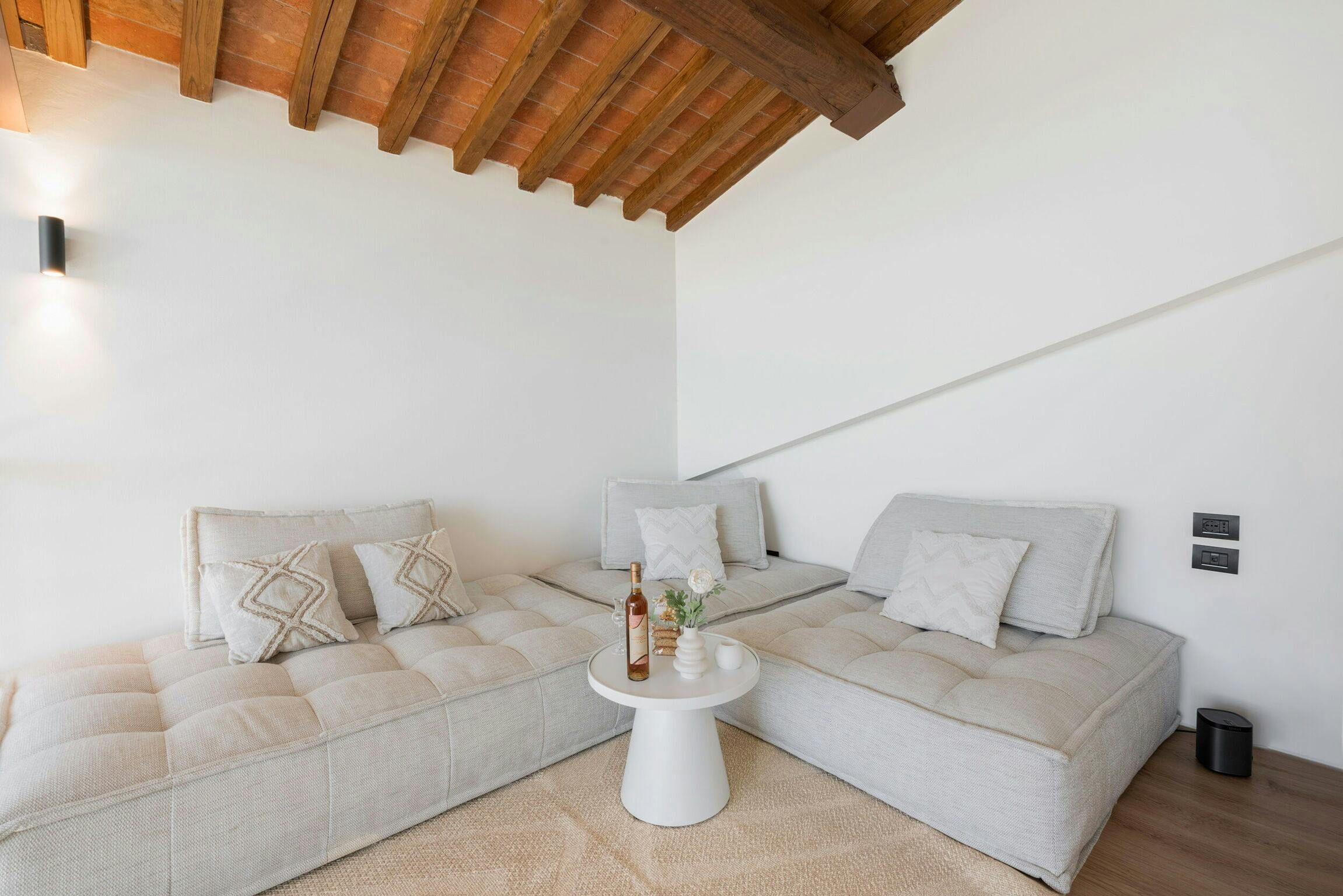 Located in a private estate, this apartment blends traditional charm and modernity to bring you an unforgettable stay. Outside, you can enjoy stunning views while lounging by the shared pool. There’s also an outdoor bar area and a private terrace for your morning coffee and evening drinks. Inside, the rooms provide a simple and refreshing space with all the basics you could need to make it your own. And when it comes to adventures further afield, you’ll be within easy reach of the nearest amenities in Montaione, while San Gimignano and Volterra are also within easy driving distance.