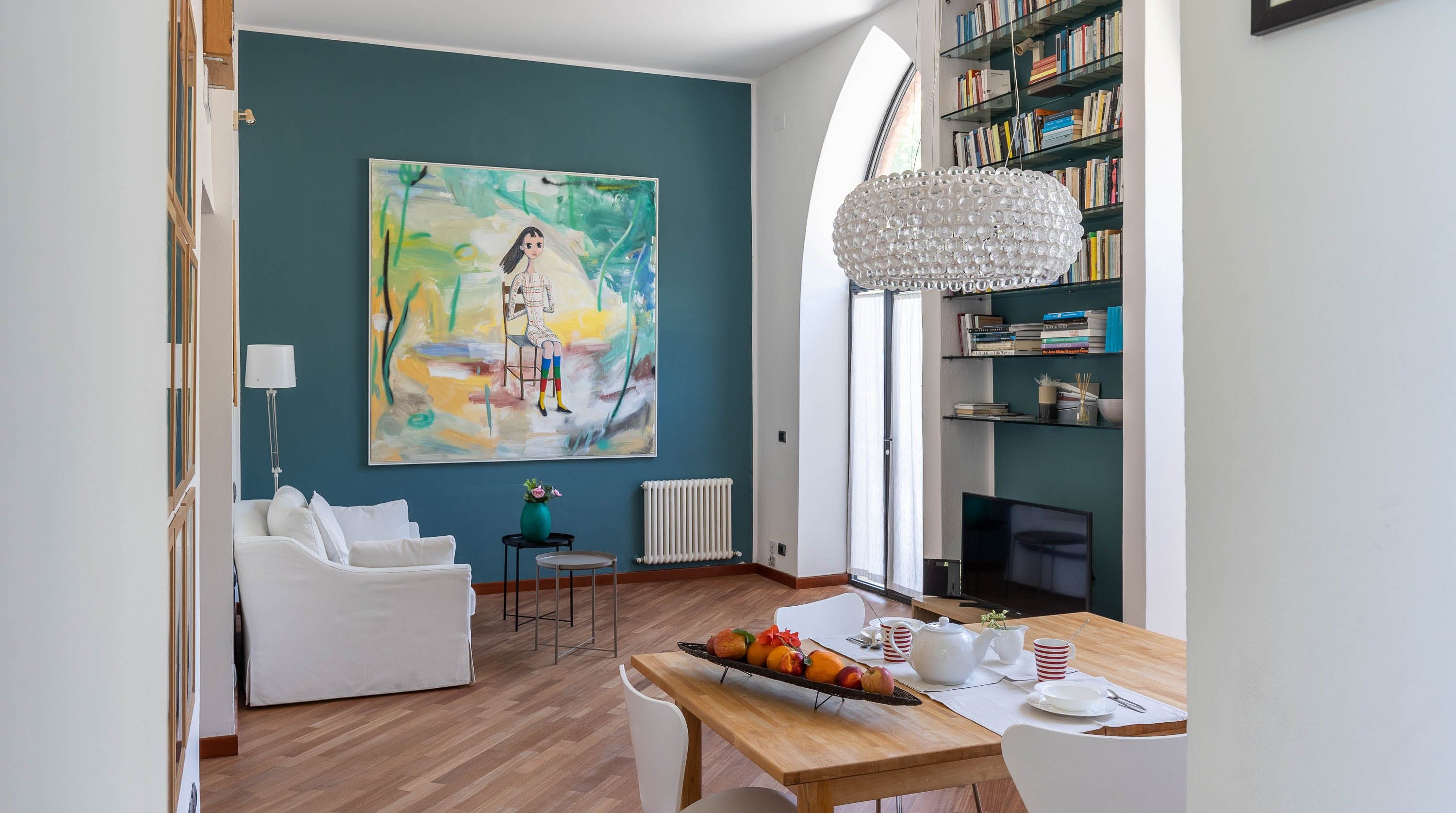 If you love the artsy side of life, you'll thrive in this contemporary loft. Colourful art pieces stand out, with some splashes of colour added by the feature walls. Natural light pours in through the large kitchen windows – the perfect chance to watch the morning birds fly by. You even get a lovely view of the courtyard from the bedroom too.