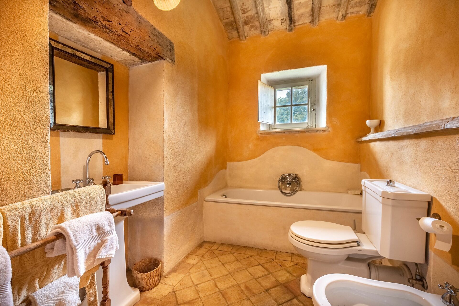 Regularly featured in interior design magazines, this villa combines traditional Tuscan style with comfort, creating a stay to remember. With two living rooms, there is enough space for a group of twelve to not feel on top of each other. A dedicated team will take care of the housekeeping, so you can focus on unwinding by the private pool. The garden also features a dining terrace, perfect for enjoying meals with views of the rolling landscape. If you'd prefer to eat out, you’ll find a selection of trattorias in Montalcino, less than a ten-minute drive away.