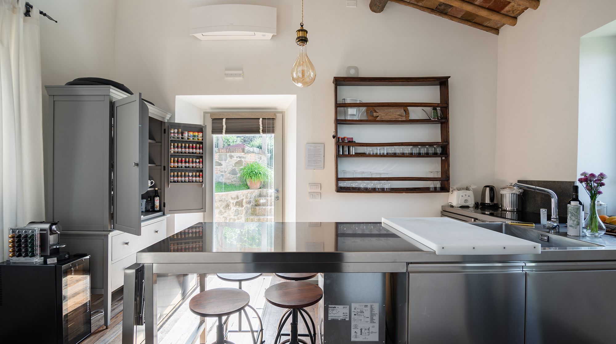From heated floors to a built-in steam bath, every detail of this home beckons you to unwind in the splendour of your surroundings. After a restful slumber in the king-sized bed, fire up the Moka pot for espressos at the breakfast bar before a morning stroll through the town. The kitchen is fully-equipped for home cooking, but no trip to Tuscany would be complete without sampling the local cuisine. Lucky for you, there's an array of family-owned cafes and eateries practically at your doorstep.