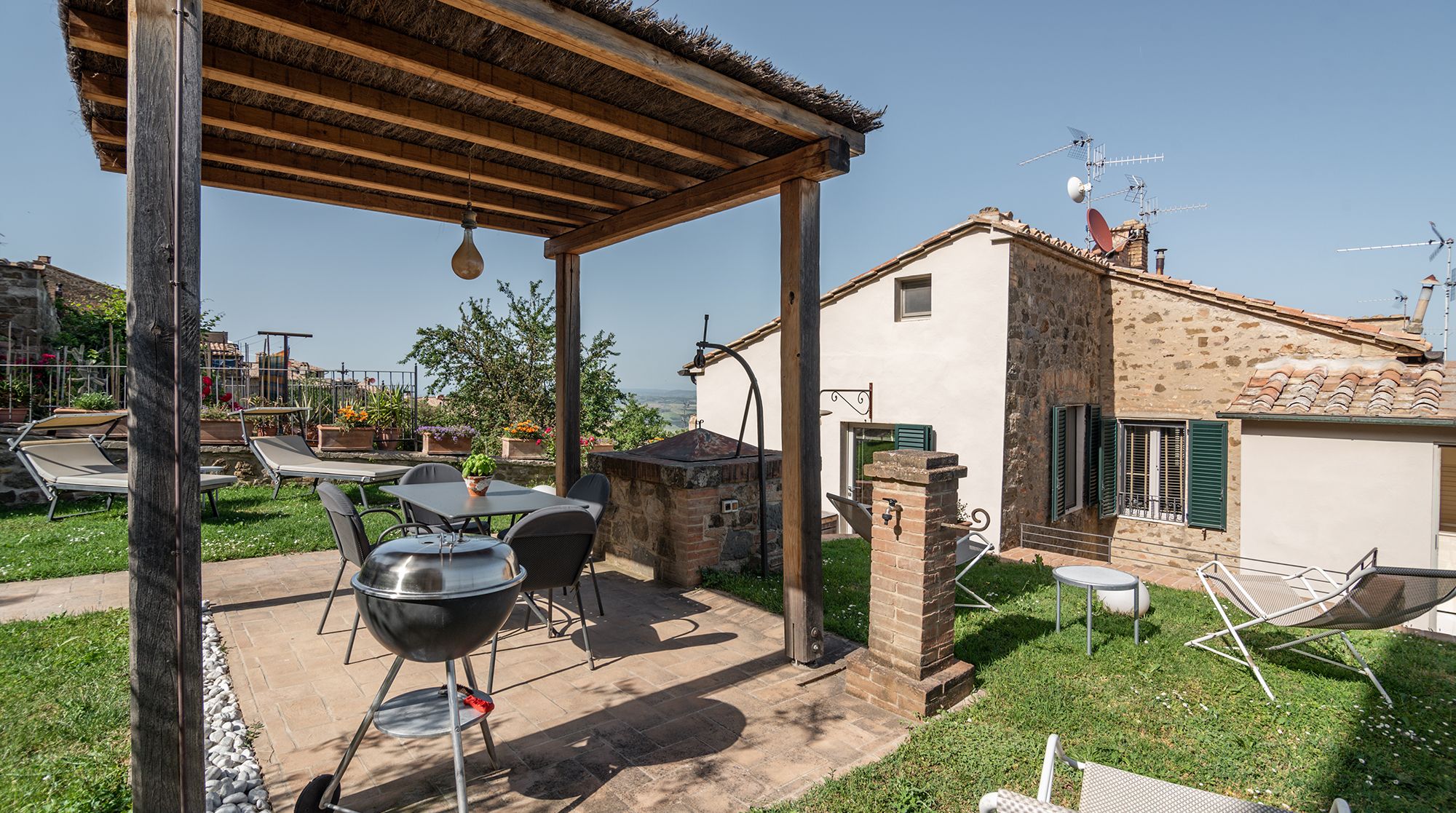 Boasting stunning views of Montalcino's iconic towers and the verdant hills of the Val D'Orcia, we're completely in awe of this home's outdoor space. Spend time sprawled on a lounger, soaking up the sun, and at mealtimes, gather under the pergola for an alfresco feast cooked on the barbecue. If you fancy venturing further afield, take a fifty-two-minute drive to the city of Siena or, closer to home, sample the region's famed Brunello and Montalcino wine at a local winery. After busy days exploring, pour yourself a glass of the good stuff and enjoy a relaxing dip in the jacuzzi under the stars.