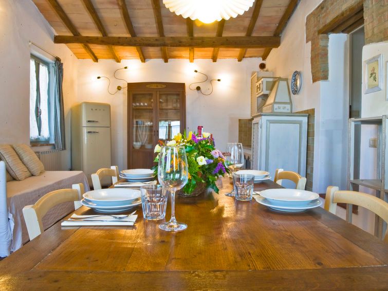 "Siena", 3-room apartment 65 m2 on 1st floor. Renovated, tasteful furnishings: 2 double bedrooms, each room with shower/bidet/WC. Kitchen (dishwasher, 4 gas rings, kettle, electric coffee machine). Heating. Patio. Very beautiful panoramic view of the countryside. Facilities: children's high chair, baby cot for up to 2 year olds, hair dryer.