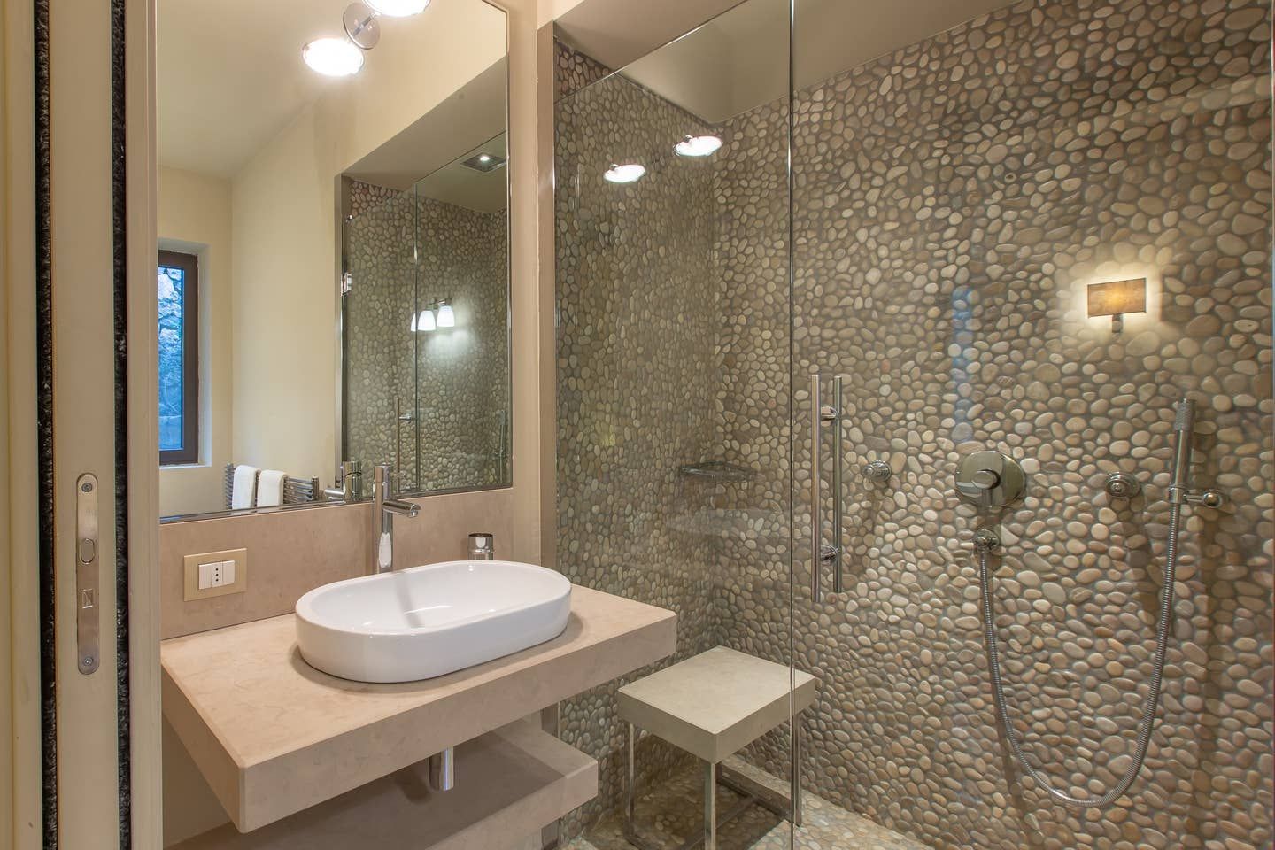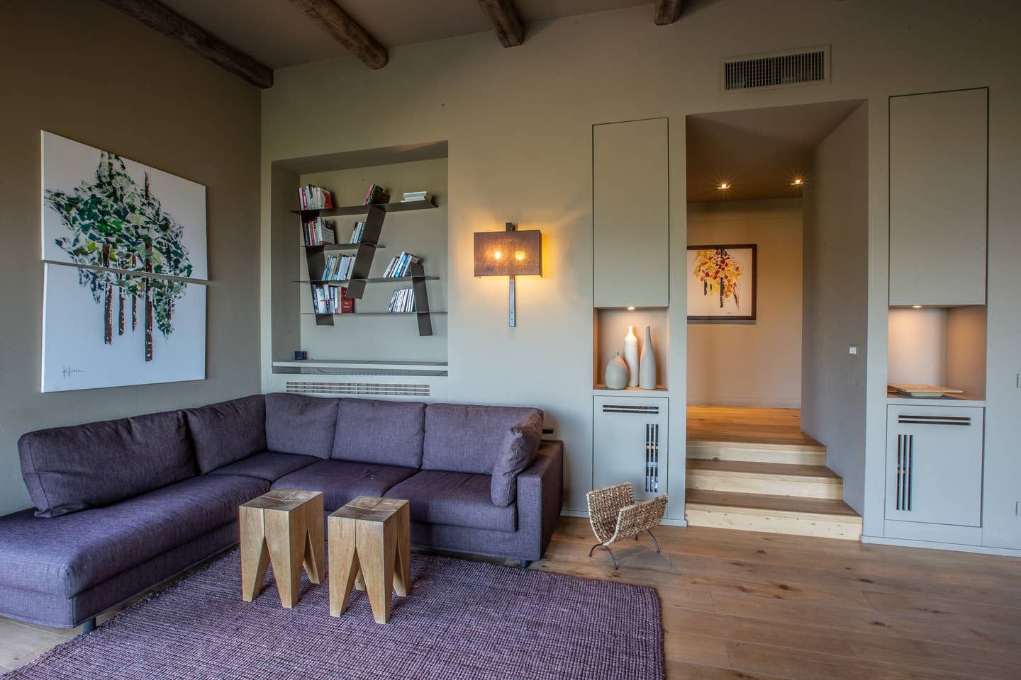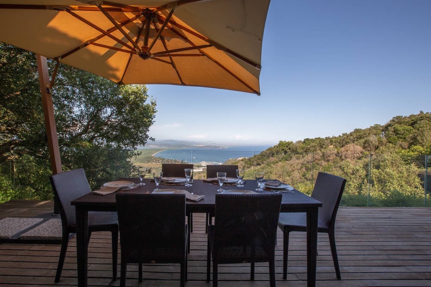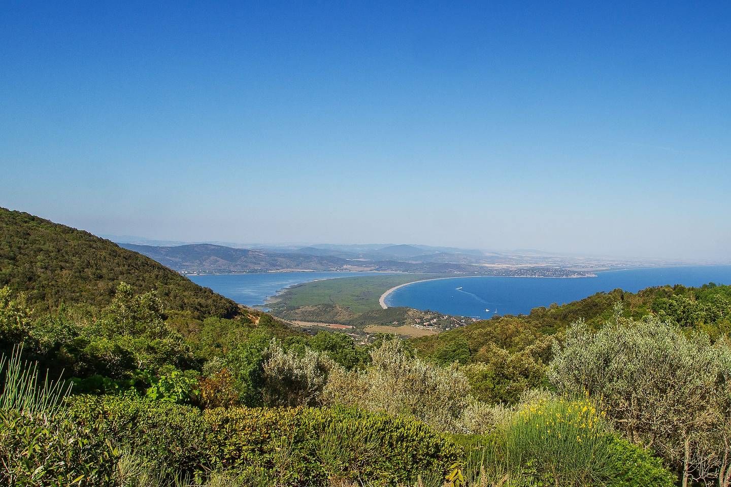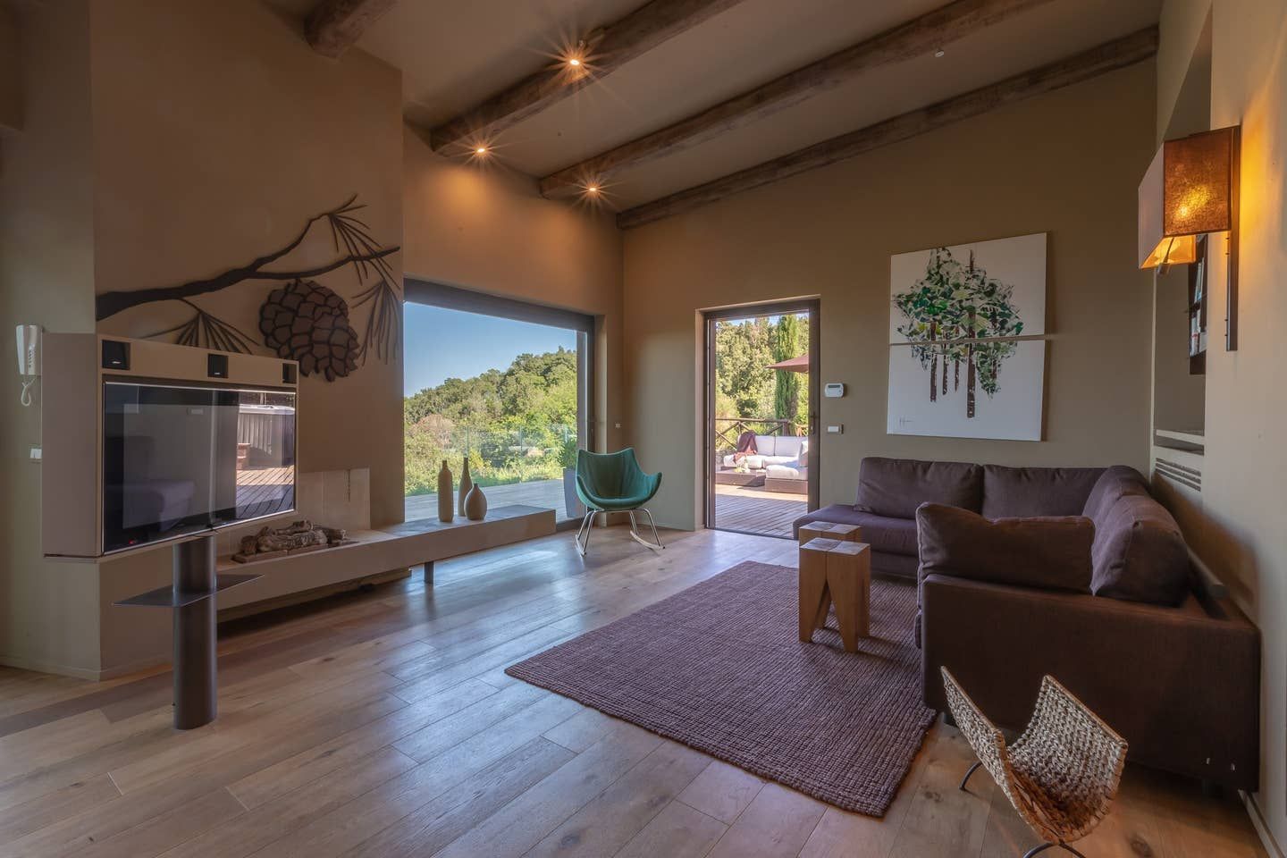 This beautiful villa is a dreamy holiday home in Italy. It’s on a hillside just ten minutes from Porto Ercole, within easy reach of the beaches of the Tuscan archipelago. Admire stunning views of the Bay of Orbetello and the valley from the terrace, where you can sunbathe and soak in the hot tub. A lush garden of plants and cypress trees adds to the tranquil vibe of this delightful villa. Inside, this modern and attractive home has large windows that bring the view inside.