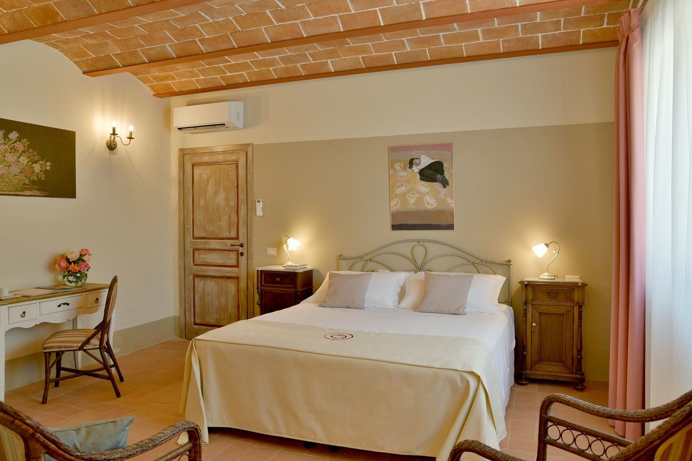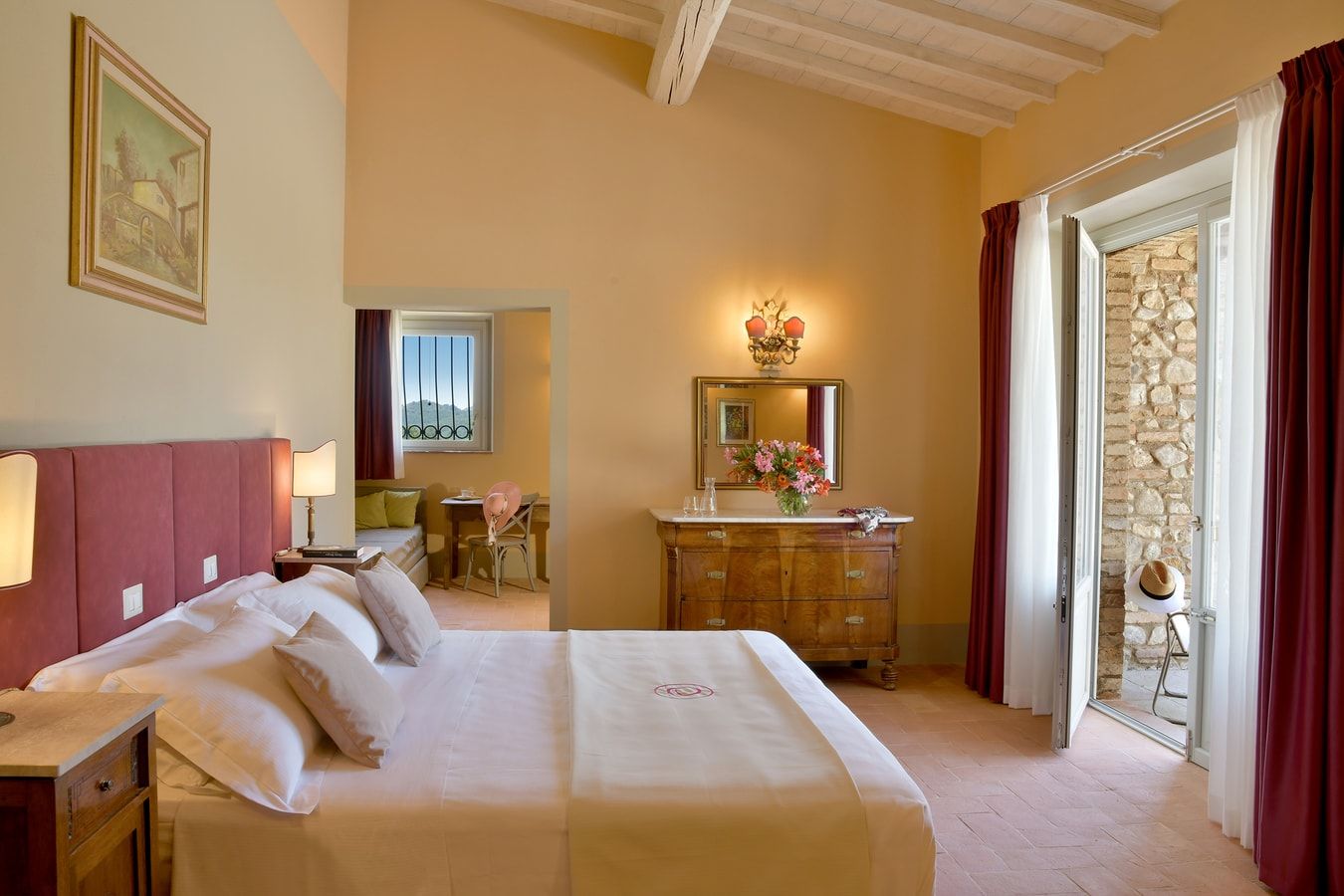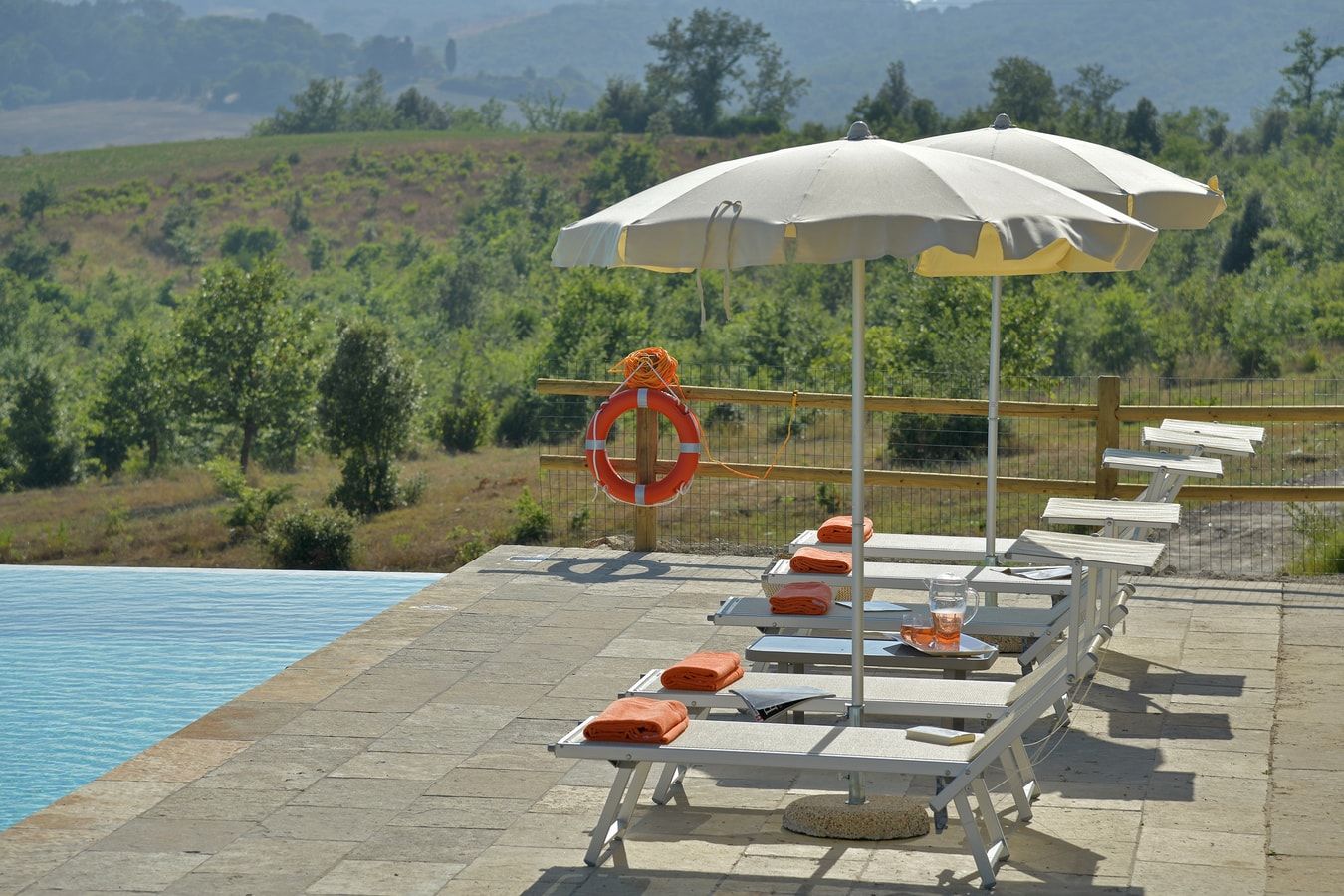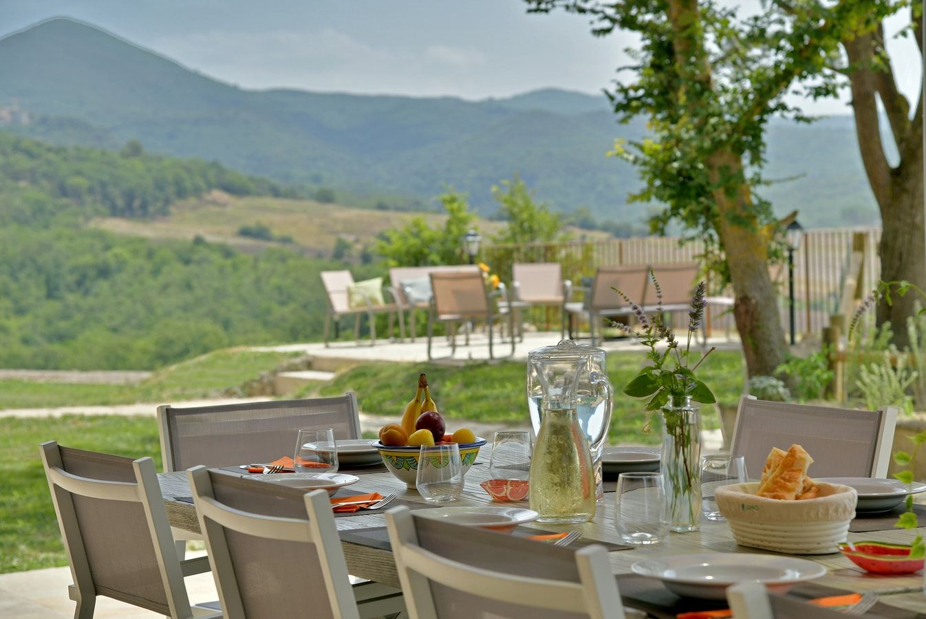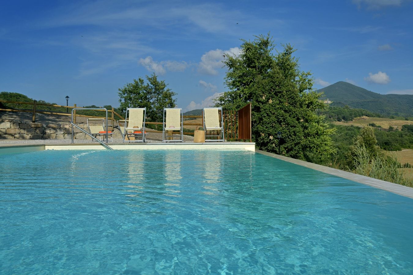 Perched on a hilltop within a 45-hectare estate of hazelnut groves, this rustic villa offers sweeping views across the Tuscan countryside. Situated over two floors, it's ideal for large groups or families, with six bedrooms and several flexible sleeping arrangements – including a large room on the ground floor with garden access and living space. Visit neighbouring medieval villages or the UNESCO World Heritage site before firing up the wood-burning pizza oven for some Italian alfresco dining. Feel like staying in? Start your day in the fitness centre or lounge by the infinity pool, then gather on the terrace for a balmy evening by the fire pit. You'll find everything you need here for a classic Tuscan getaway.