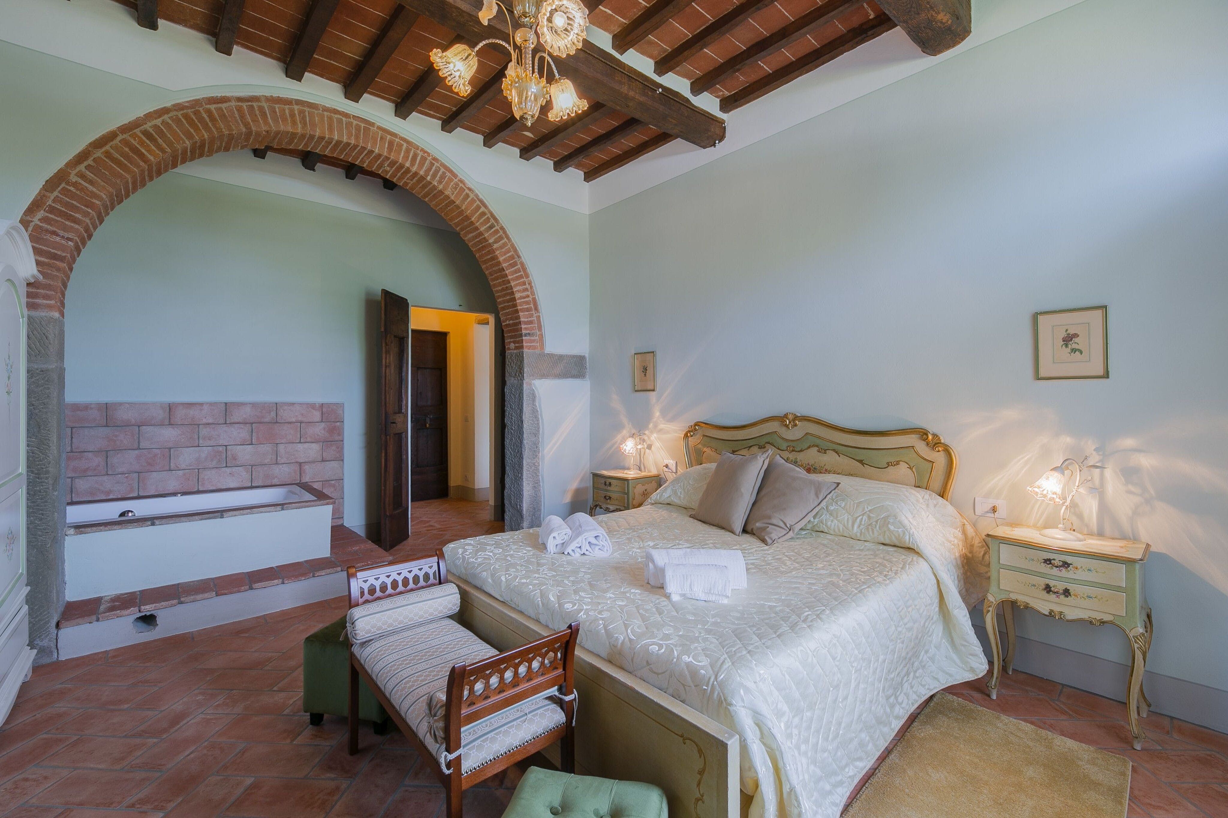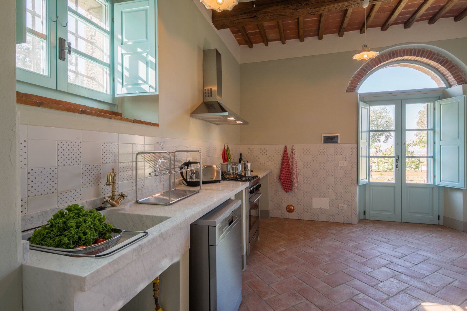 Overlooking the lush Chiana Valley, this former farmhouse boasts views you won’t be forgetting any time soon. There are plenty of spots to sit back and soak it all in, but the pergola’s one of our favourites, perched right next to the pool and offering plenty of room for dining alfresco. The vineyard at the bottom of the garden is lovely too – and, while the interior’s a little dated, there’s a gorgeous stone fireplace to cosy up by if you’re visiting out of season.