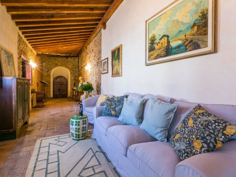 "Il Convento", 4-room apartment 100 m2 on 1st floor. Spacious, fully renovated, rustic and cosy furnishings: living/dining room with open-hearth fireplace and dining table. 2 double bedrooms. 1 room with 2 beds (90 cm). Open kitchen (oven, dishwasher, Gas stove, 4 gas rings, toaster, kettle, microwave, electric coffee machine).