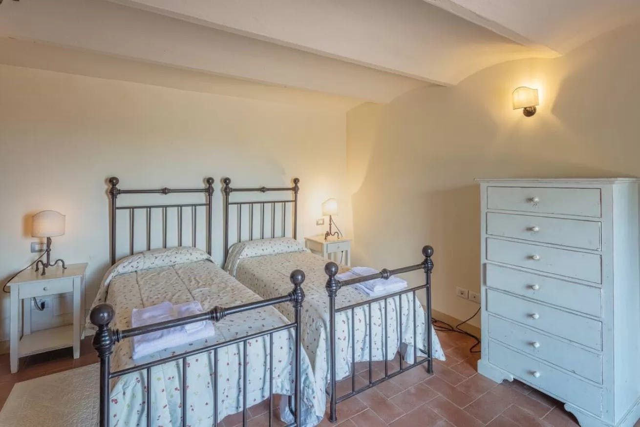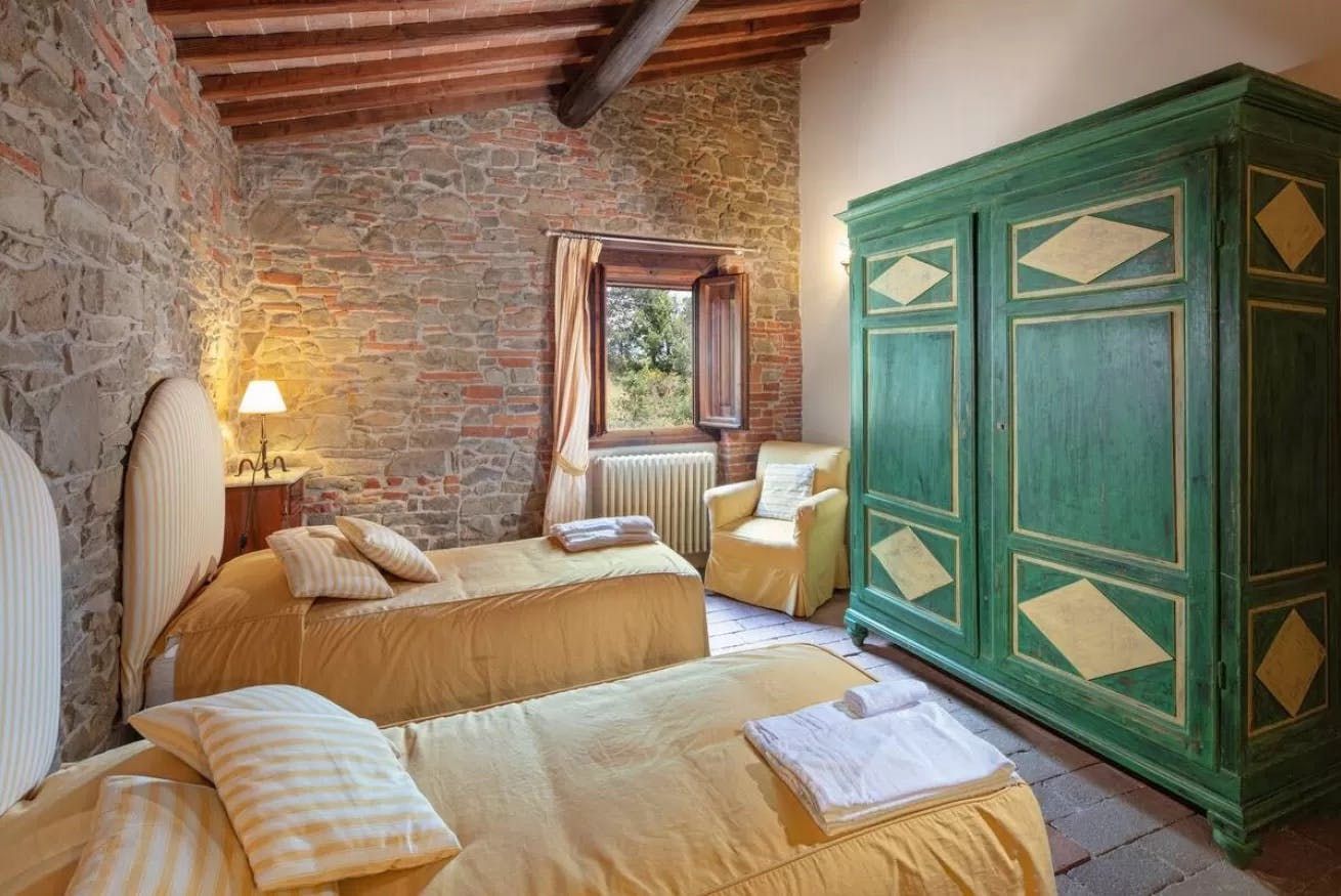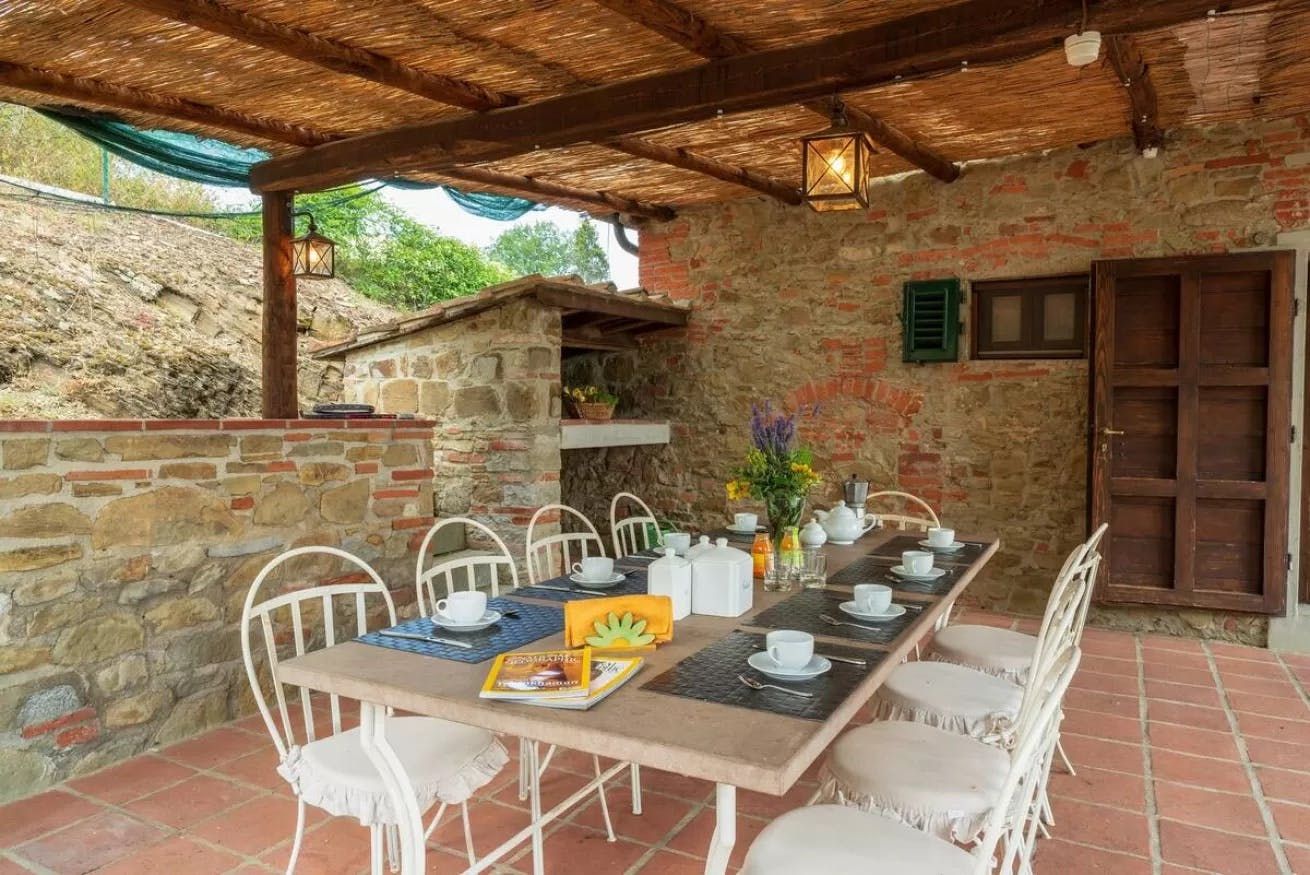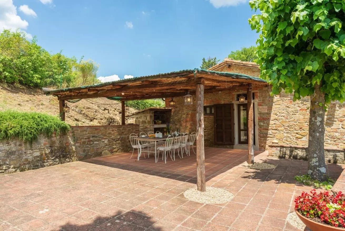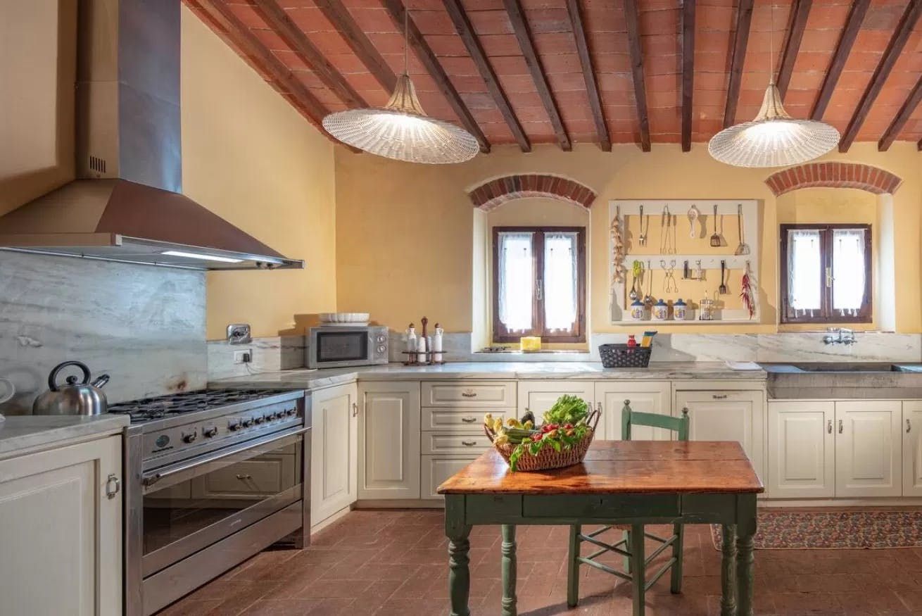Tucked away in a peaceful spot in the Cavriglia countryside and situated on an idyllic working farm, this characterful farmhouse makes the perfect place for a dreamy holiday with family and friends. Inside, you'll find charming decor reminiscent of a quaint country cottage, with original features such as beam ceilings and exposed stonework that make it feel special. Outside, a private swimming pool provides some stunning views of the surrounding area, while a covered terrace sets the perfect scene for sundowners.
