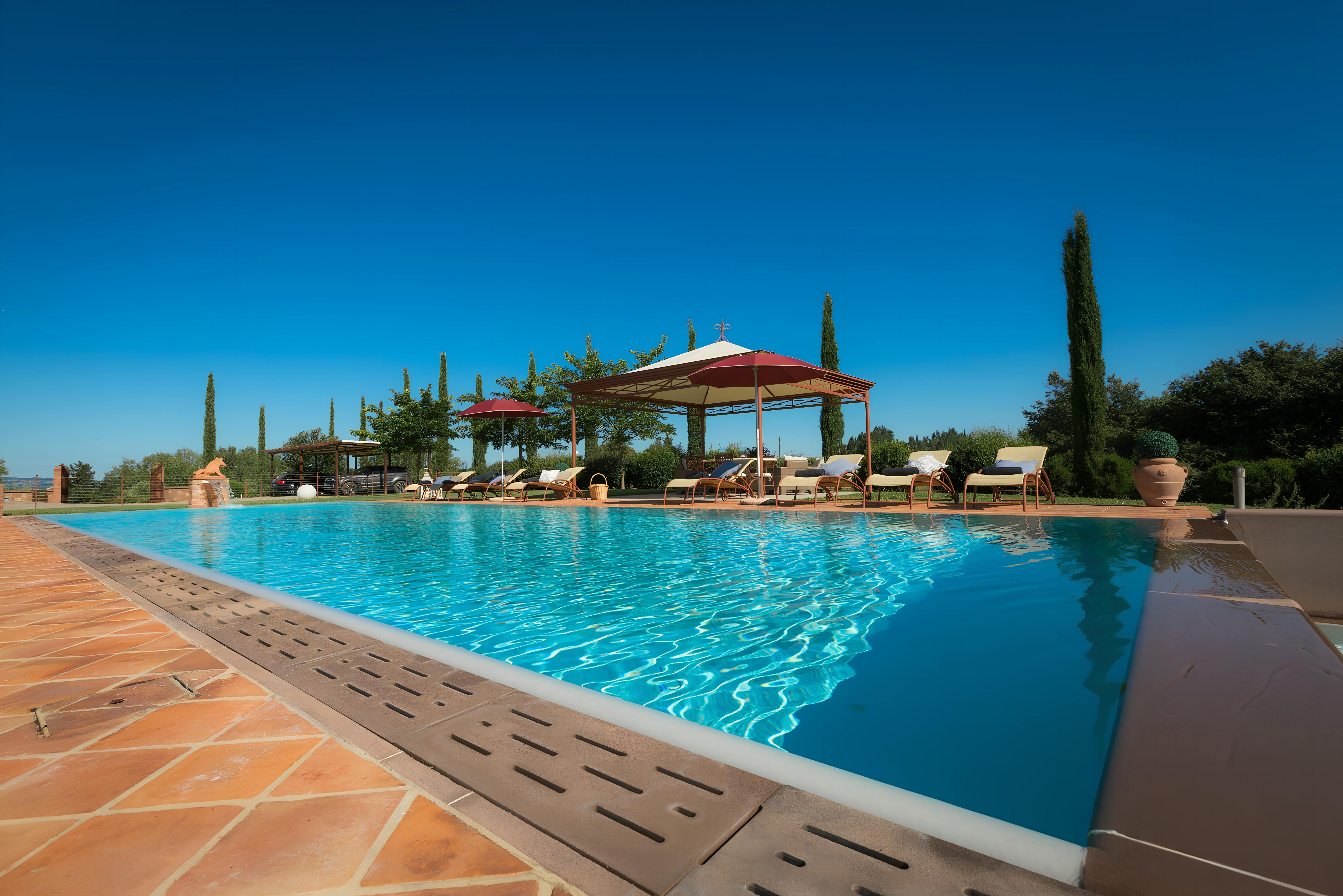 A Tuscan treat awaits you when you book this wonderfully charming holiday home. It sits just a short stroll from the small village of Montelopio, where you can enjoy wine tours and take part in cookery classes. The gardens it is nestled in are beautifully kept and feature a private swimming pool for cooling off, as well as a covered terrace where you can dine or recline. Inside, the home is packed with Italian charm, with exposed brickwork, beam ceilings and tiled floors.