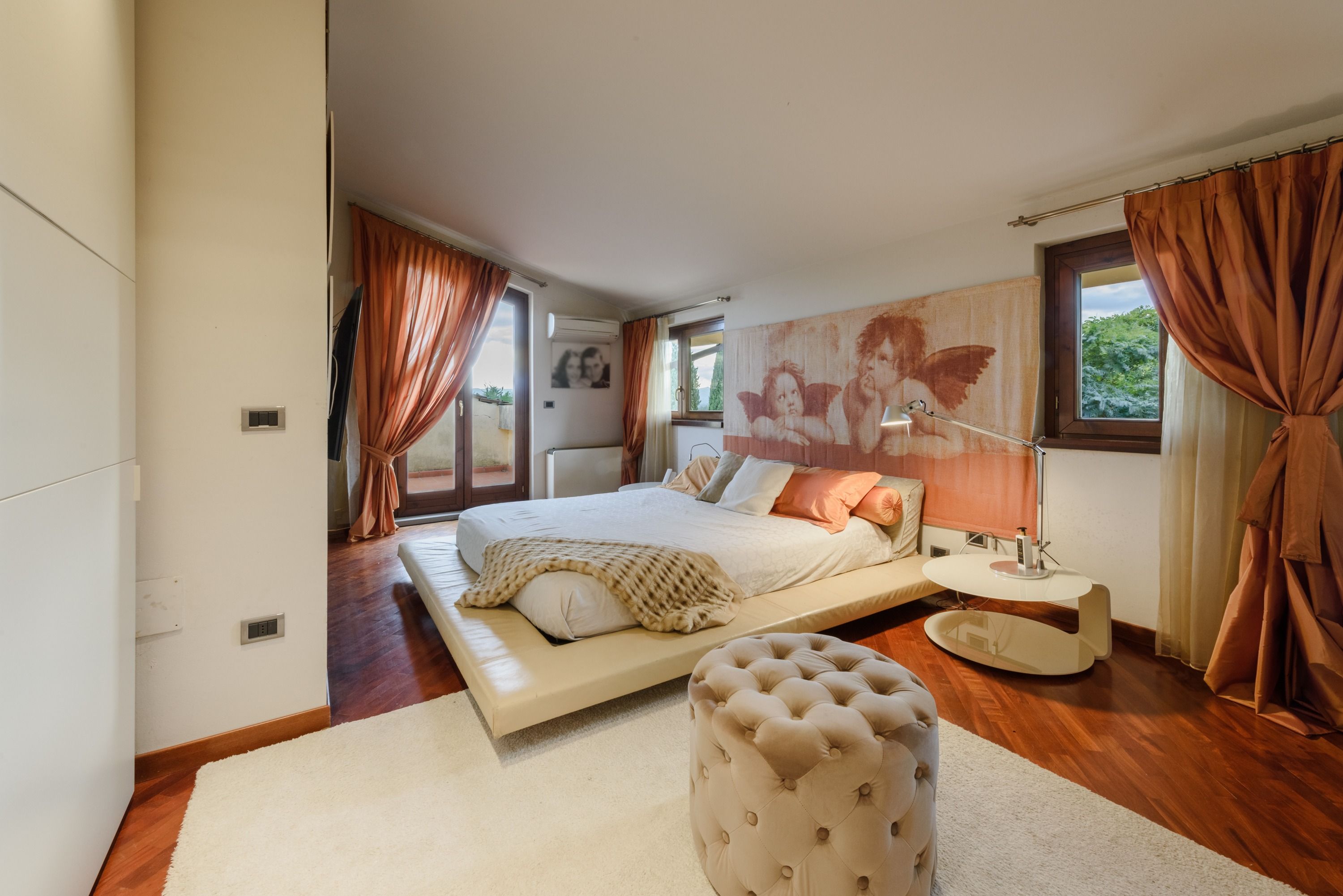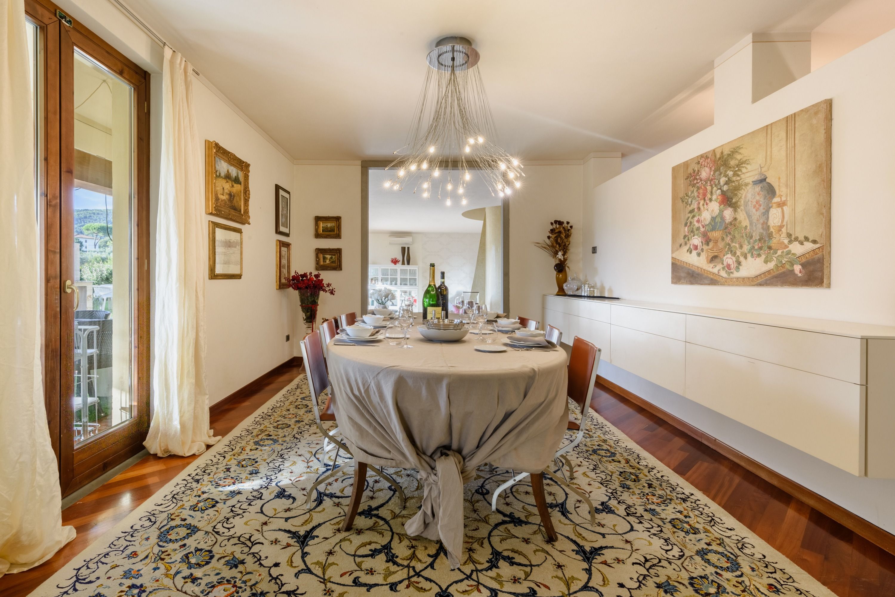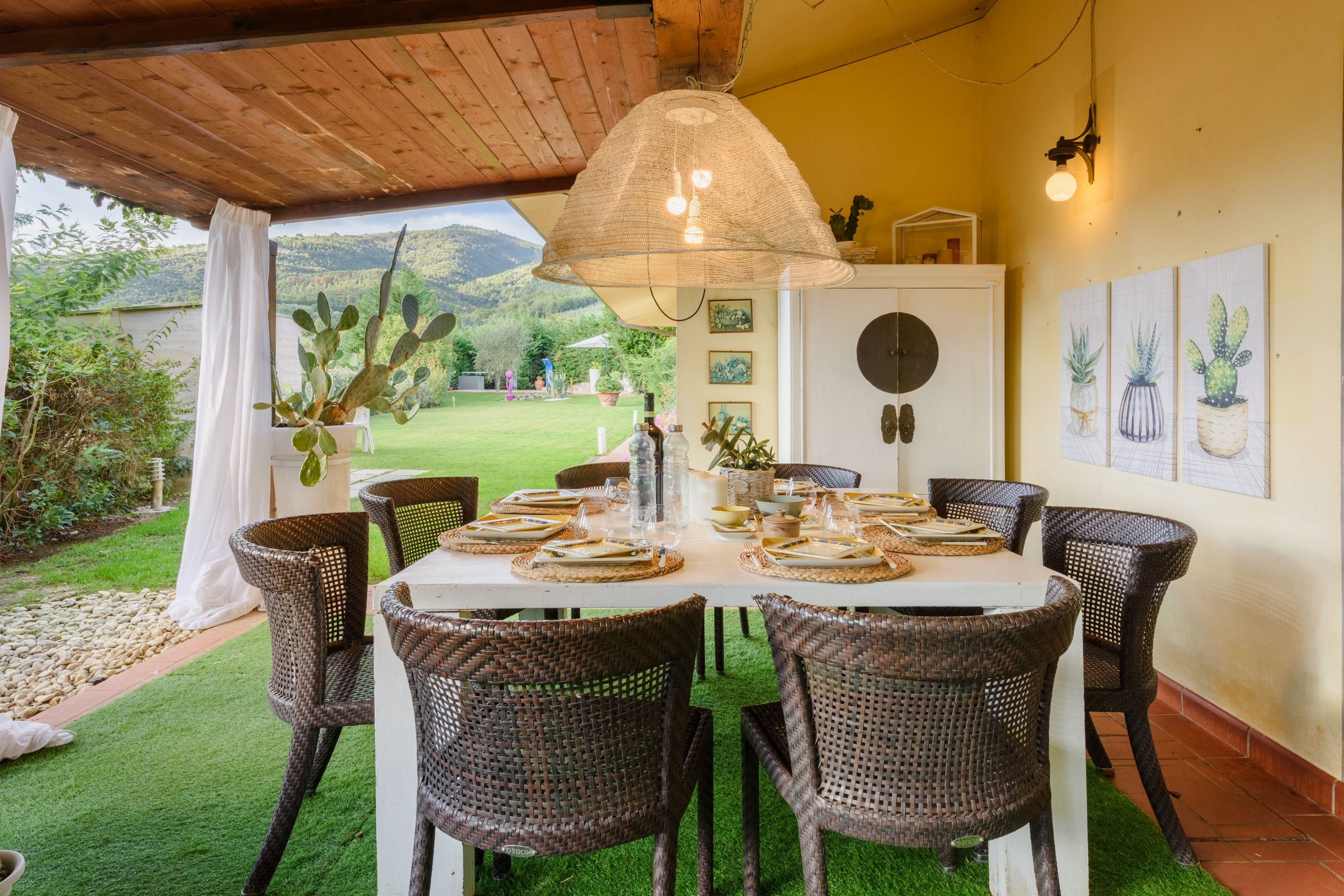 Situated in the Tuscan countryside of Valdarno, this home has a private pool and a garden with beautiful views. There are several terraces for dining and relaxing in the Italian sun, too. Set over three floors, this house has a large living room with its feature open fireplace, which is a great place to entertain. Talking of entertainment options, the basement houses a pool and a foosball table, as well as a library and a small gym. When you want to explore the area, the small medieval town of Loro Ciuffenna is around 1 kilometre away.