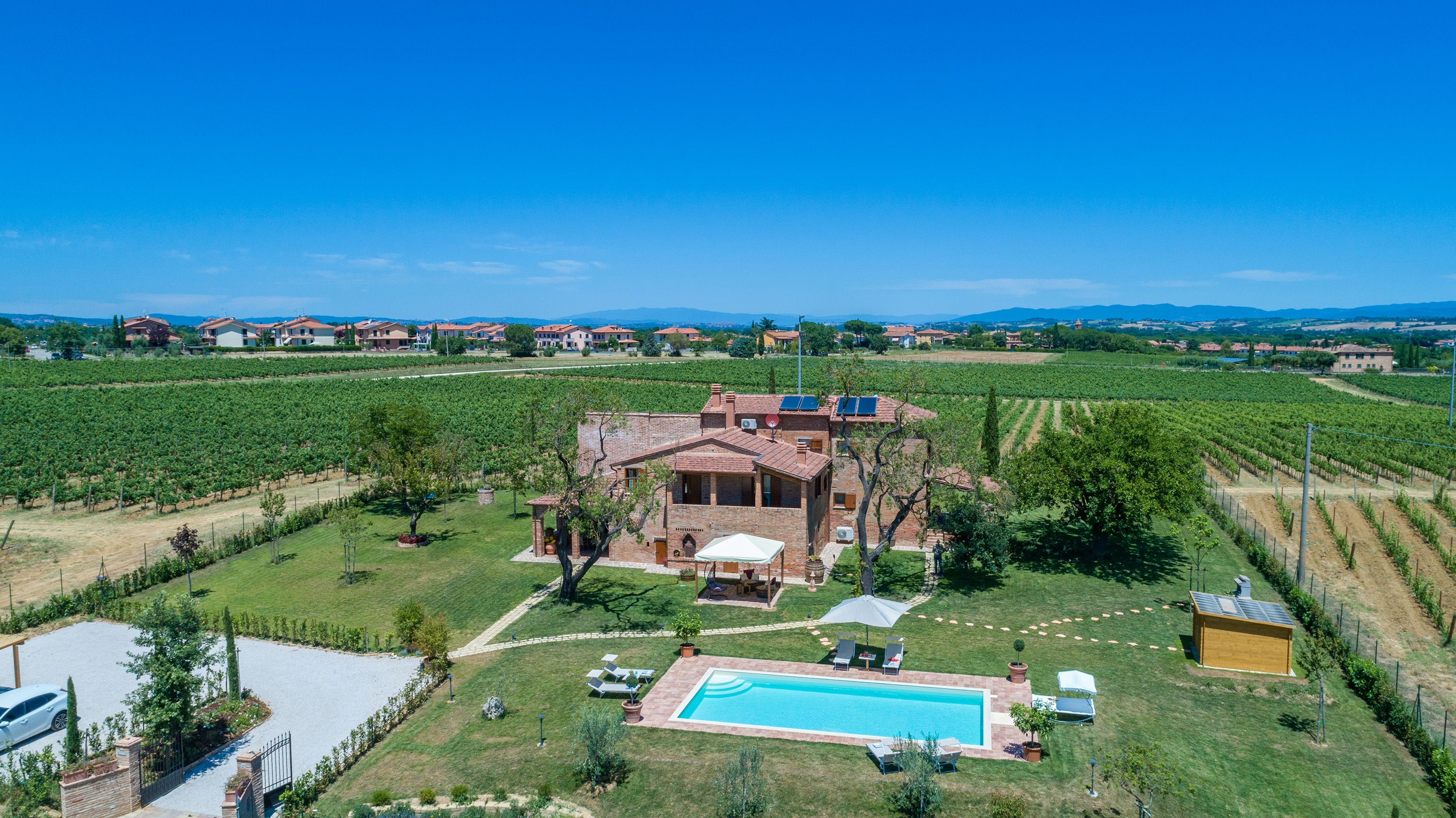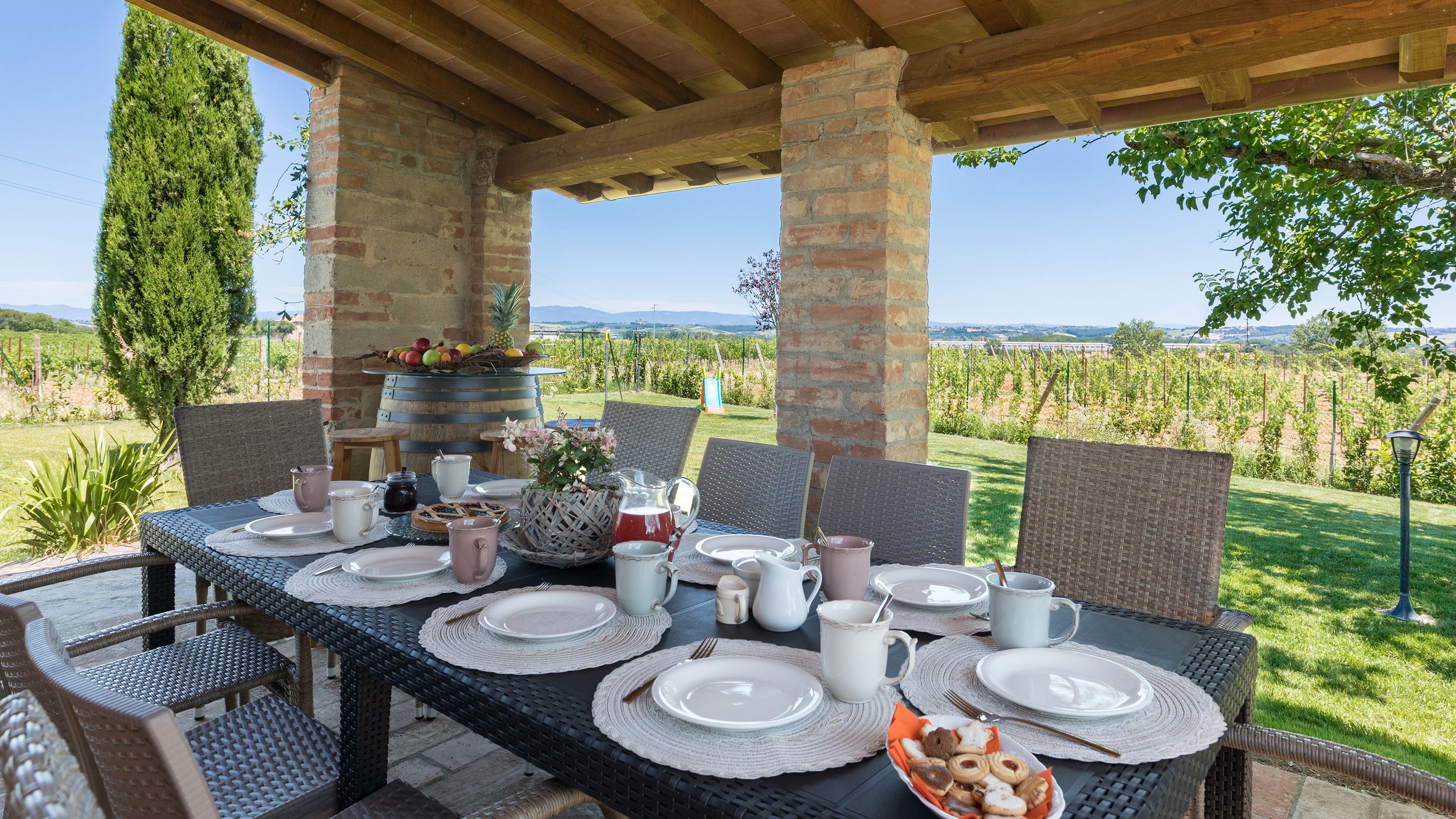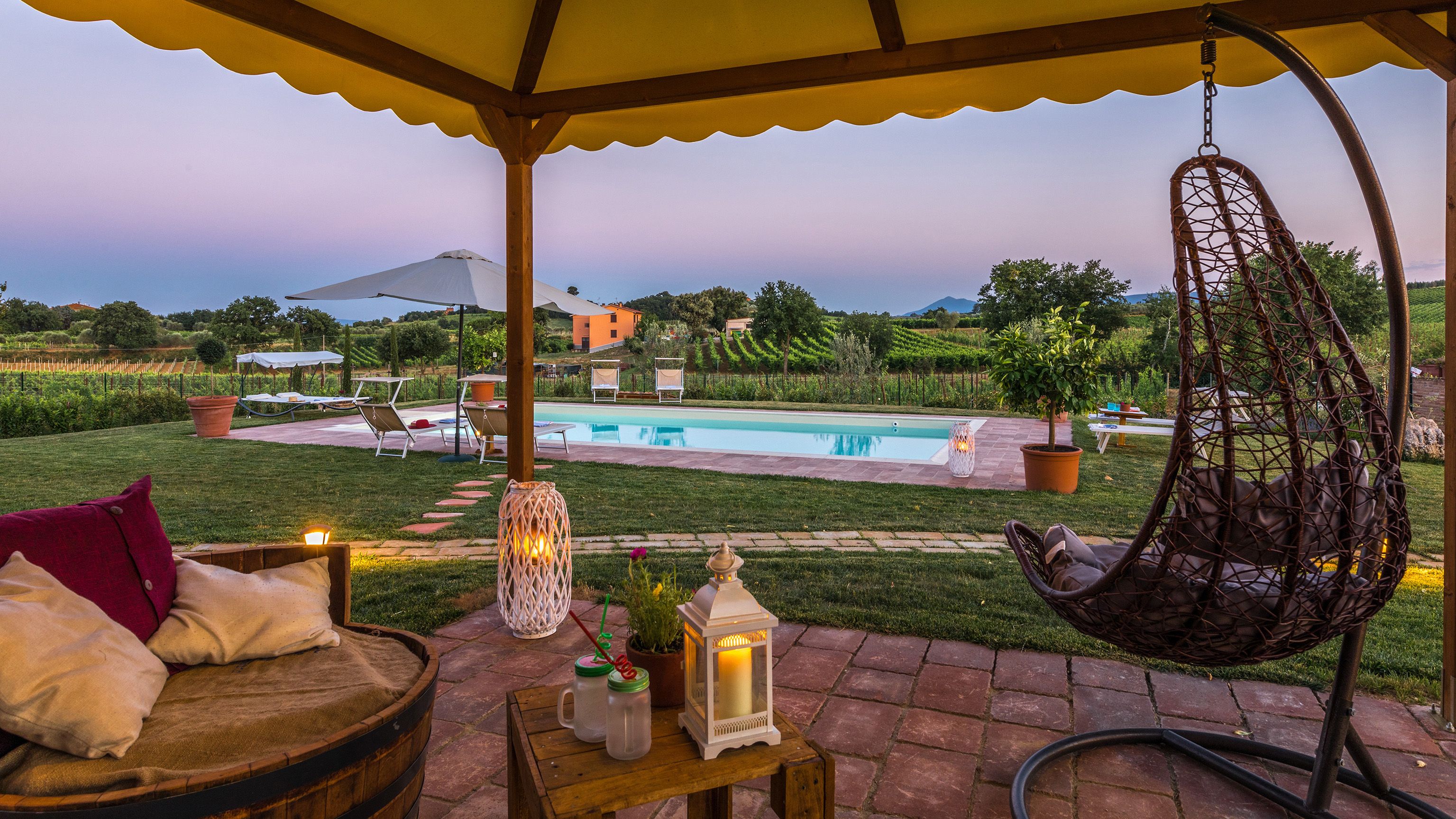 You’re on your own private land here, encircled by rows of healthy vines, with views stretching out to the horizon. With so much greenery around you, you might feel a million miles from anything, but the famously beautiful town of Montepulciano is just under a mile away.