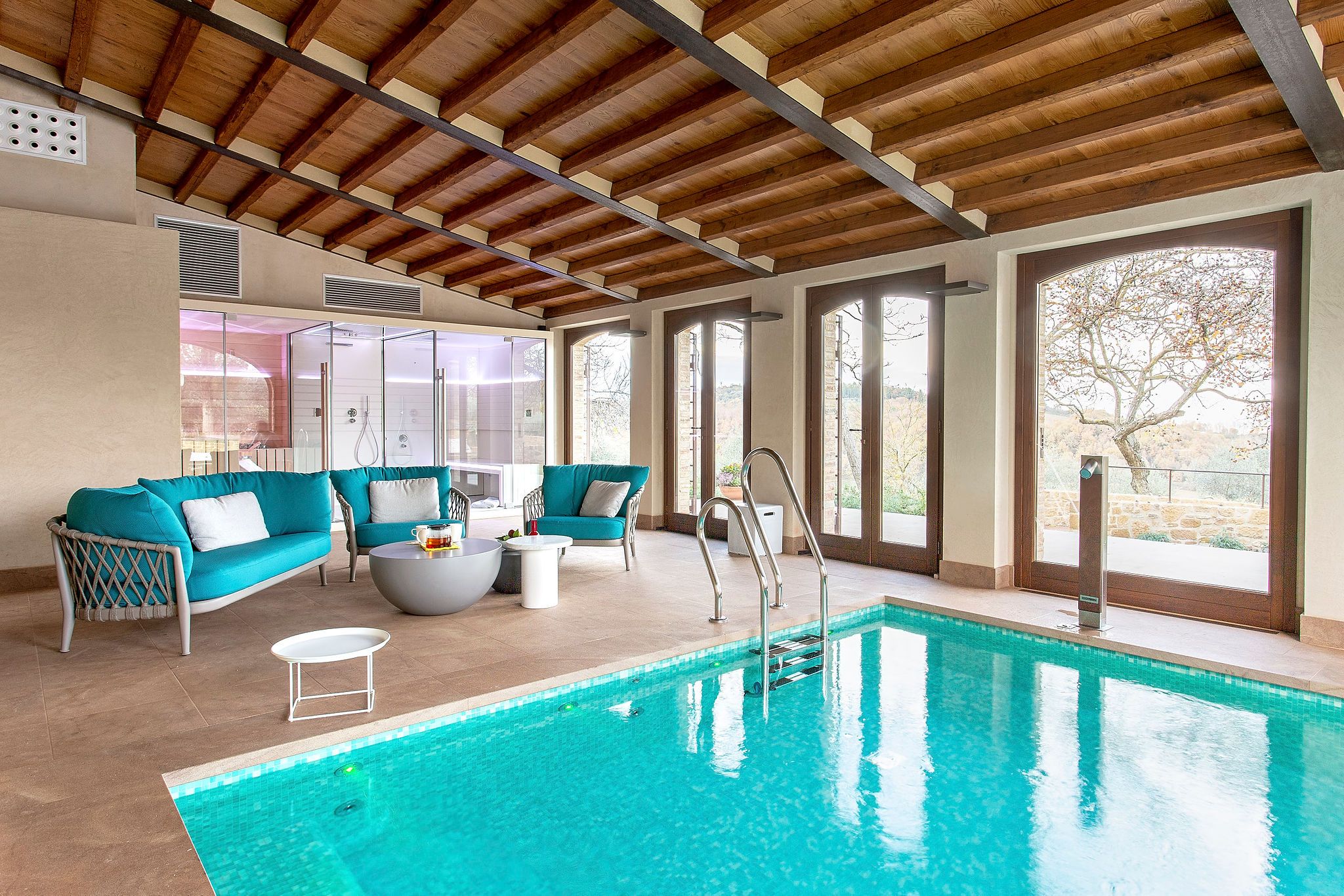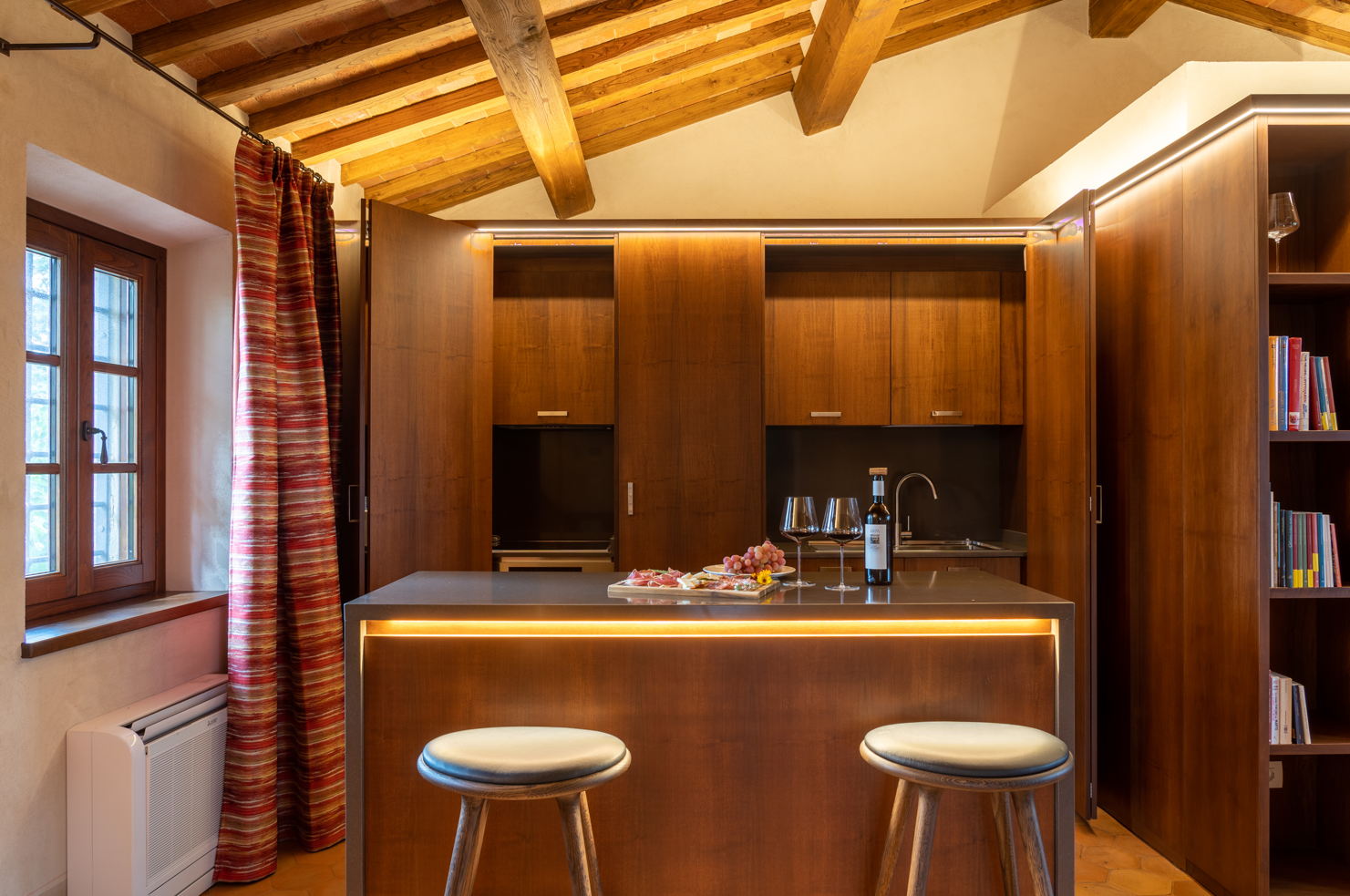 Every element of this home has been designed for rest and relaxation. There’s a picturesque pool, where you can admire the scenery as you swim or sunbathe, while inside you’ll find a smart bar area, perfect for relaxing with a glass of local wine. But the highlight has to be the private spa, where you’ll find a sauna, sensory showers, and a heated hydrotherapy pool. It’s all pretty blissful, and the location isn’t bad either. You’ll be a short drive from the medieval town of Montepulciano – best known for its red wine, which pairs perfectly with delicious Italian cuisine.