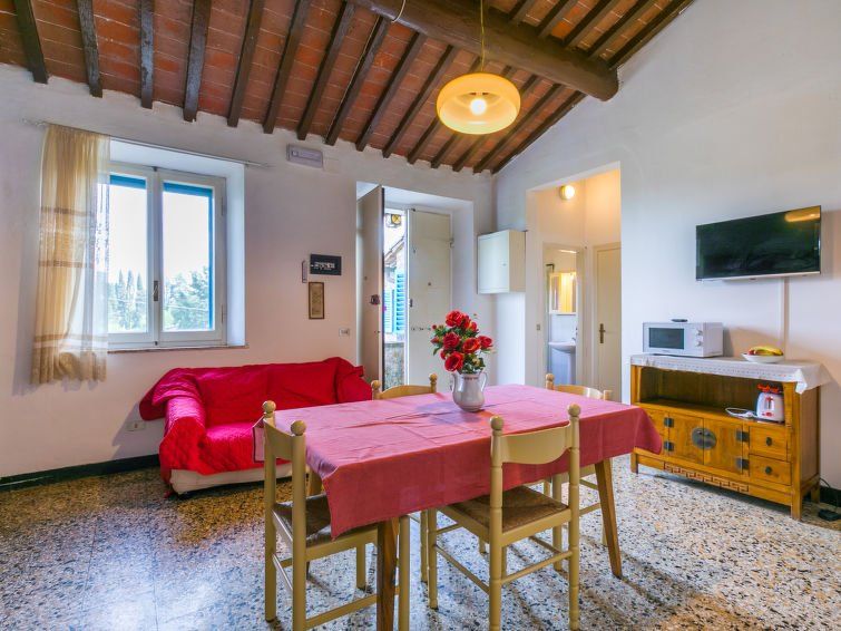 "Fattoria Petraglia - Di Mezzo (MTG202)", 3-room apartment 60 m2 on 1st floor. Object suitable for 4 adults + 1 child. Practical and rustic furnishings: upper floor: (exterior staircase) living/dining room with open-hearth fireplace, dining table and satellite TV (flat screen). Exit to the patio.