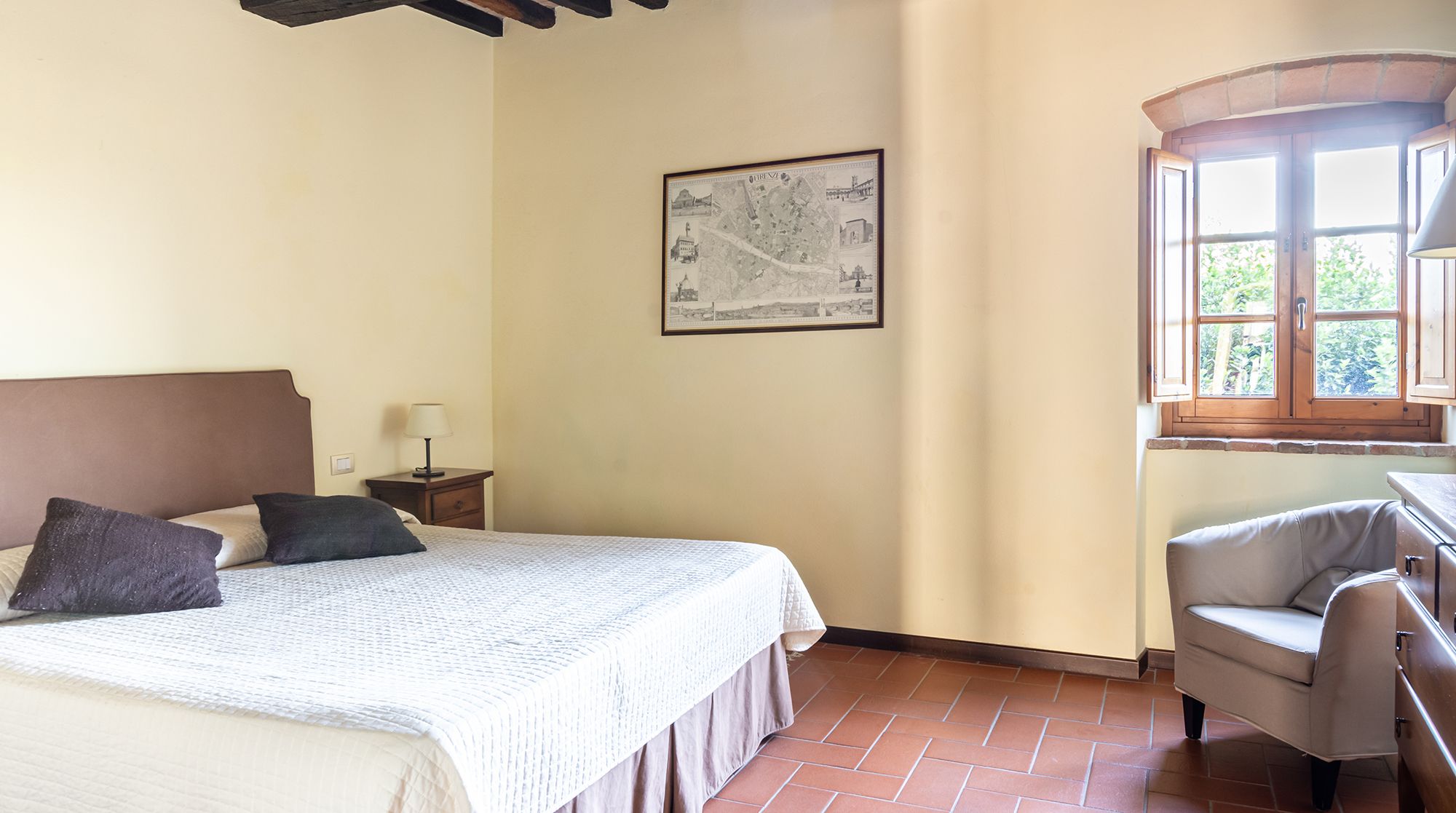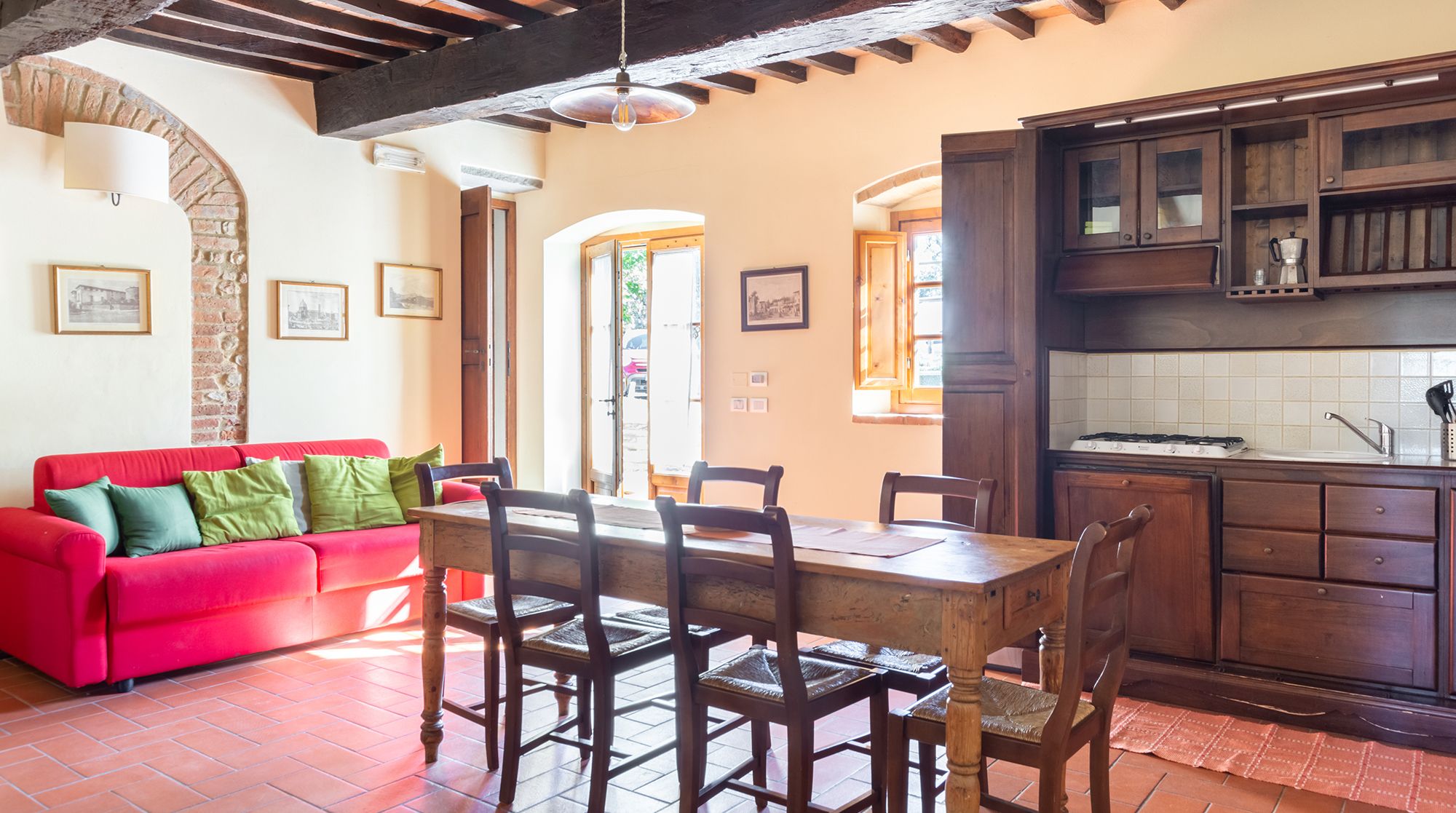 With a spacious interior, plenty of period features and an inviting outdoor area – there's a lot to love about this recently renovated apartment, which is set within a traditional Tuscan farmhouse and purposely tucked out of the way in the gently rolling hills.