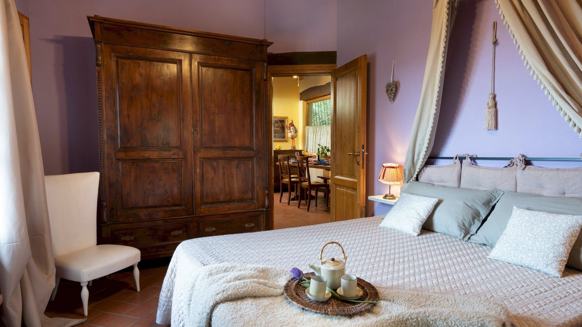 On the border between Valdarno and Chianti, this hilltop villa in the heart of Tuscany is just a short drive from the town of Montevarchi and within an hour of Arezzo. The rustic interior may feel dated to some, though we think it’s part of the charm. Outside, the well-kept garden offers views of the surrounding valley, a furnished portico, and a private swimming pool, open from the last Saturday of April until the first Saturday of October.