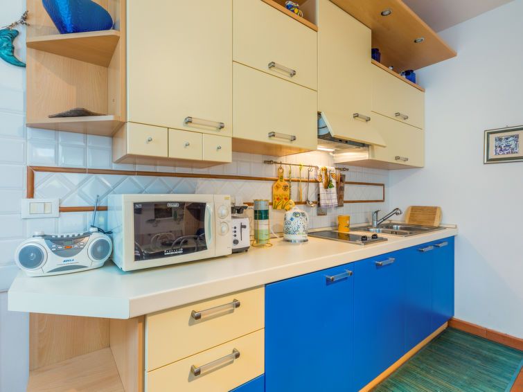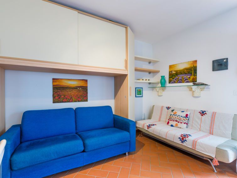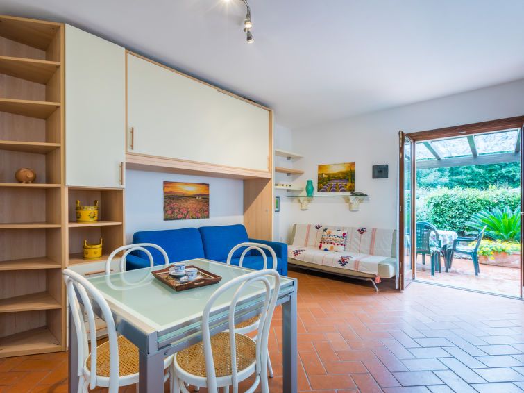 "Corbezzolo", 1-room apartment 40 m2, on the ground floor. Practical furnishings: living/sleeping room with 1 sofabed (140 cm), 1 double sofabed, dining table and TV. Exit to the patio. Open kitchen (2 induction hot plates, toaster, kettle, microwave, electric coffee machine). Bath/bidet/WC.